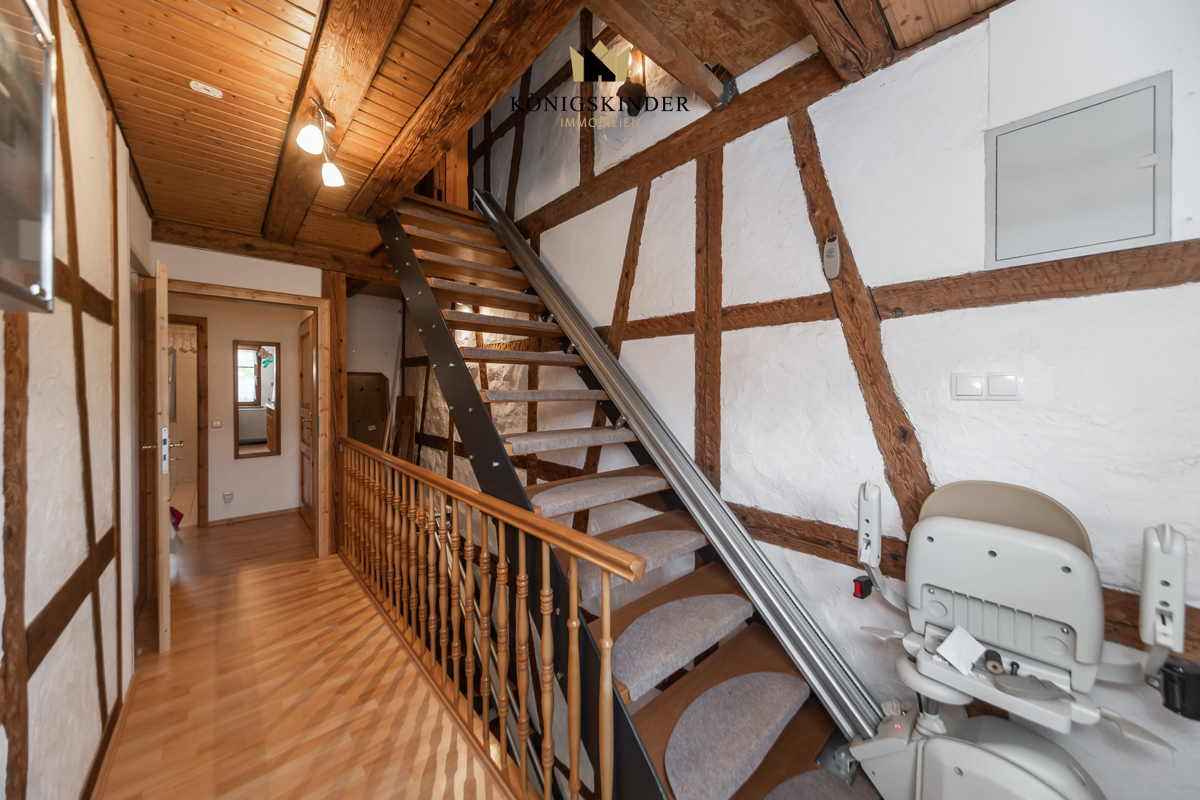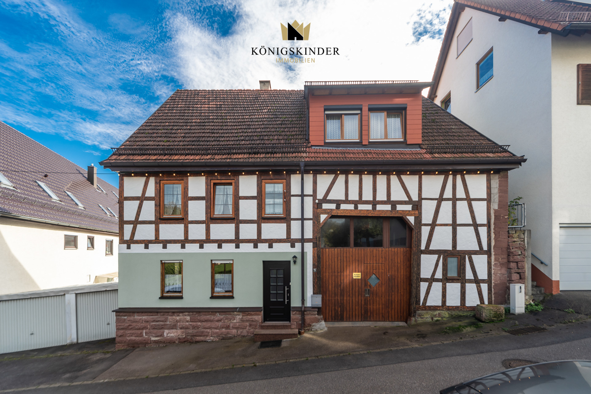 Dieses charmante, freistehende Fachwerkhaus befindet sich im Herzen von Münklingen und bietet eine ideale Kombination aus Wohnen und Arbeiten.