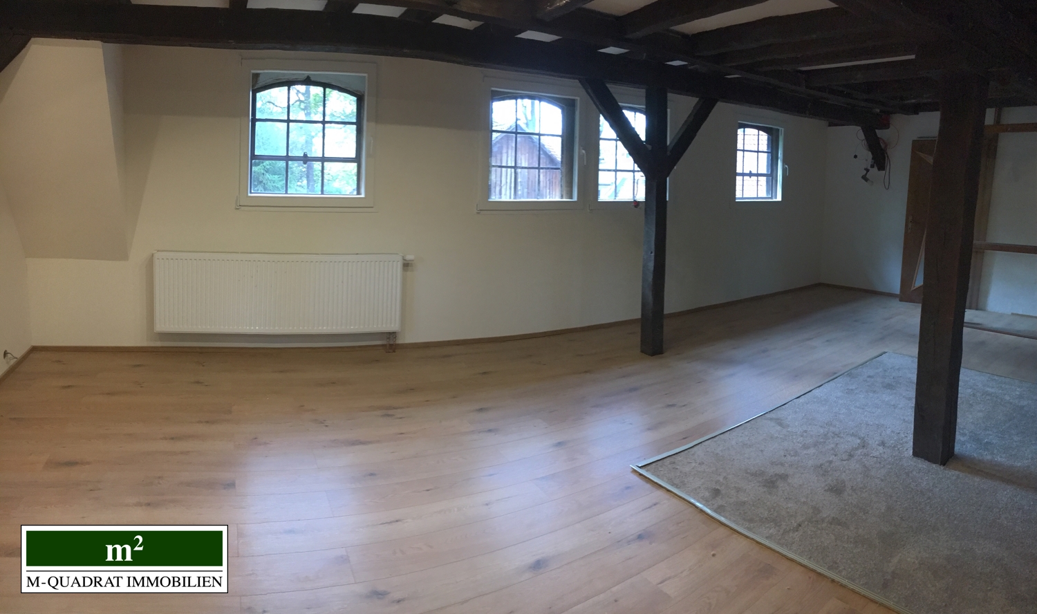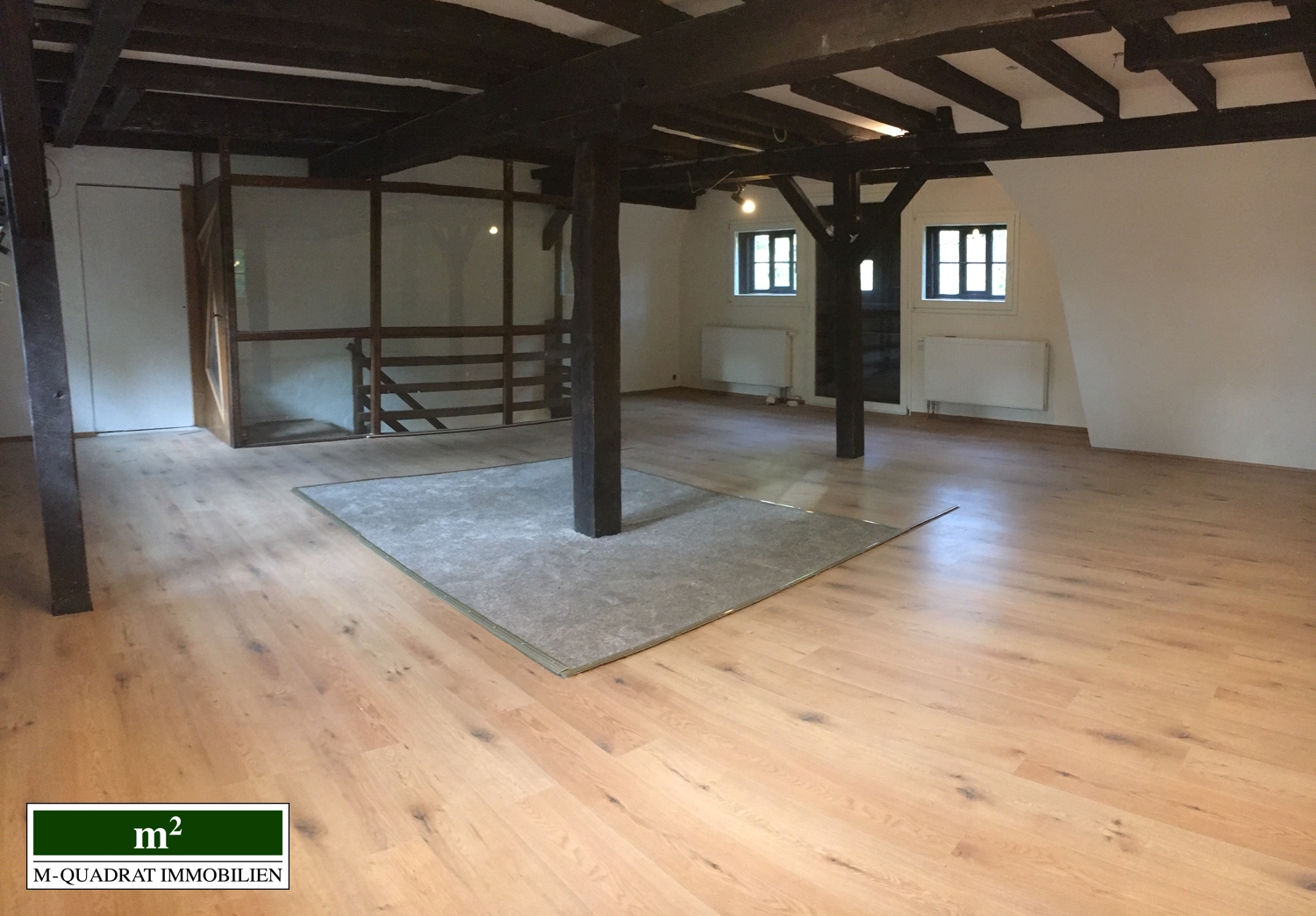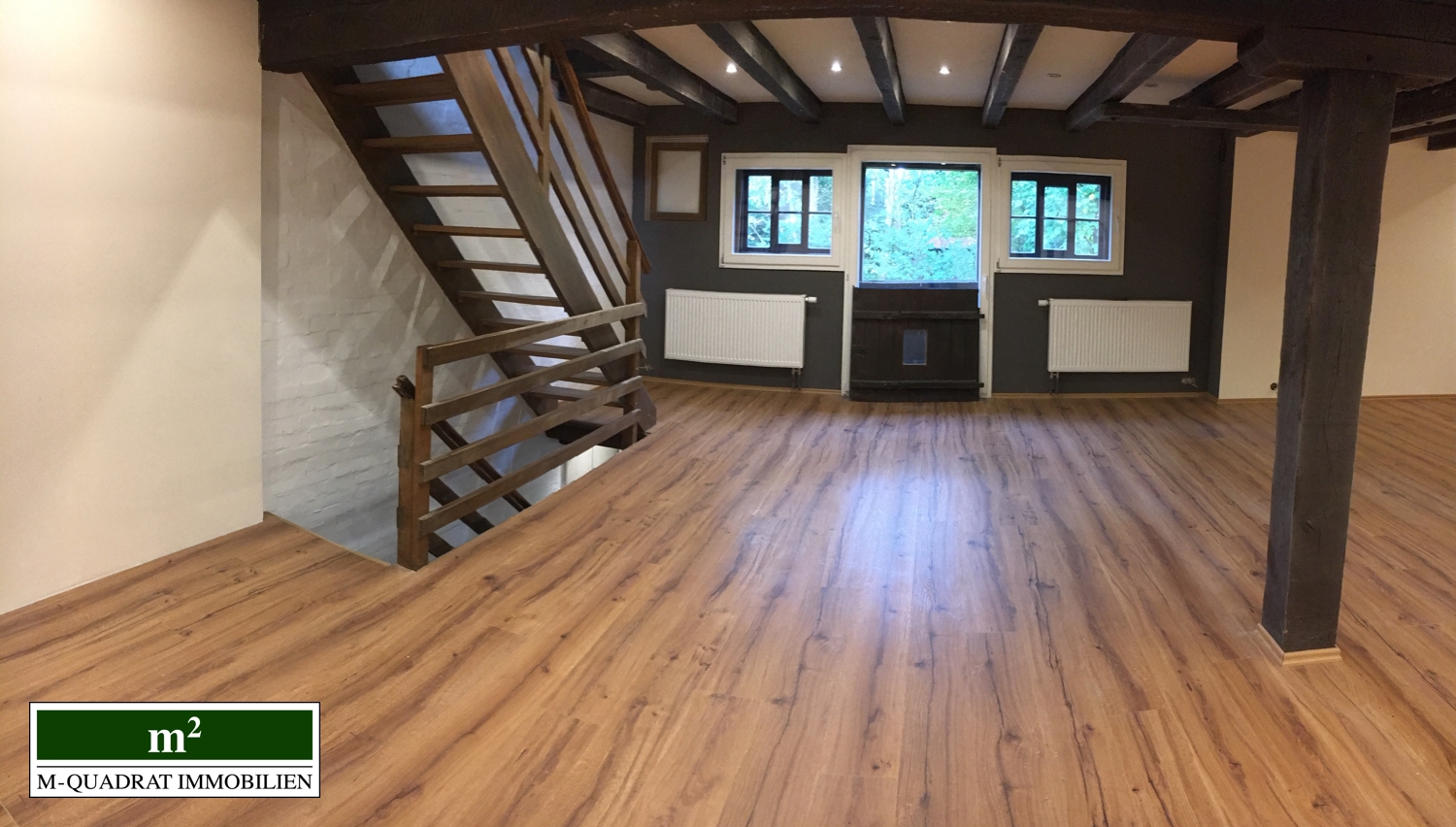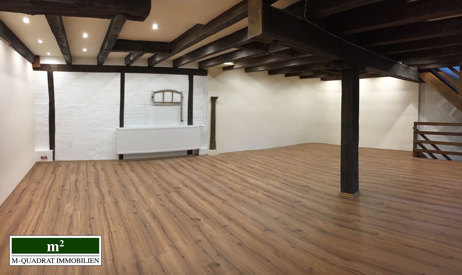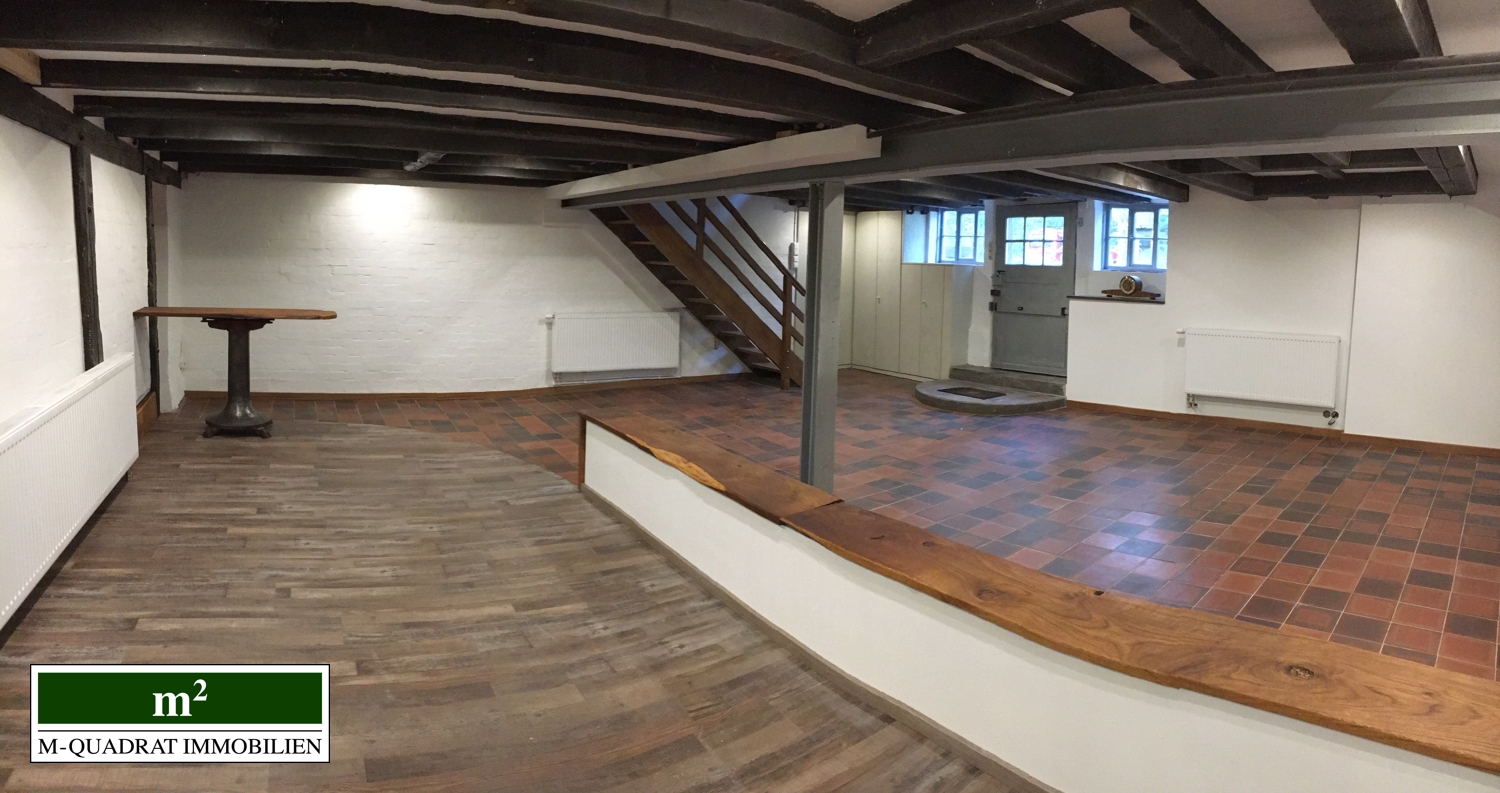 Die links im Gebäude vorhandenen Räumlichkeiten in denen historisch der Mühlenbetrieb stattfand, versprühen Fachwerkcharme und bieten zugleich Platz für moderne Arbeitsplätze oder Ladenflächen bei flexibler Raumaufteilung.