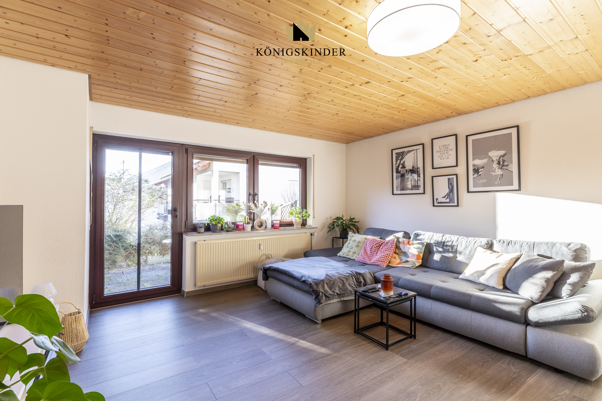 Der großzügige Wohn- und Essbereich bildet das Herzstück der Wohnung. Große Fensterflächen sorgen für viel Tageslicht und schaffen eine freundliche und einladende Atmosphäre. Von hier aus gelangen Sie direkt auf die Terrasse, die zusätzlichen Raum im Freien bietet und sich ideal zum Entspannen oder für eine kleine Auszeit im Alltag eignet.