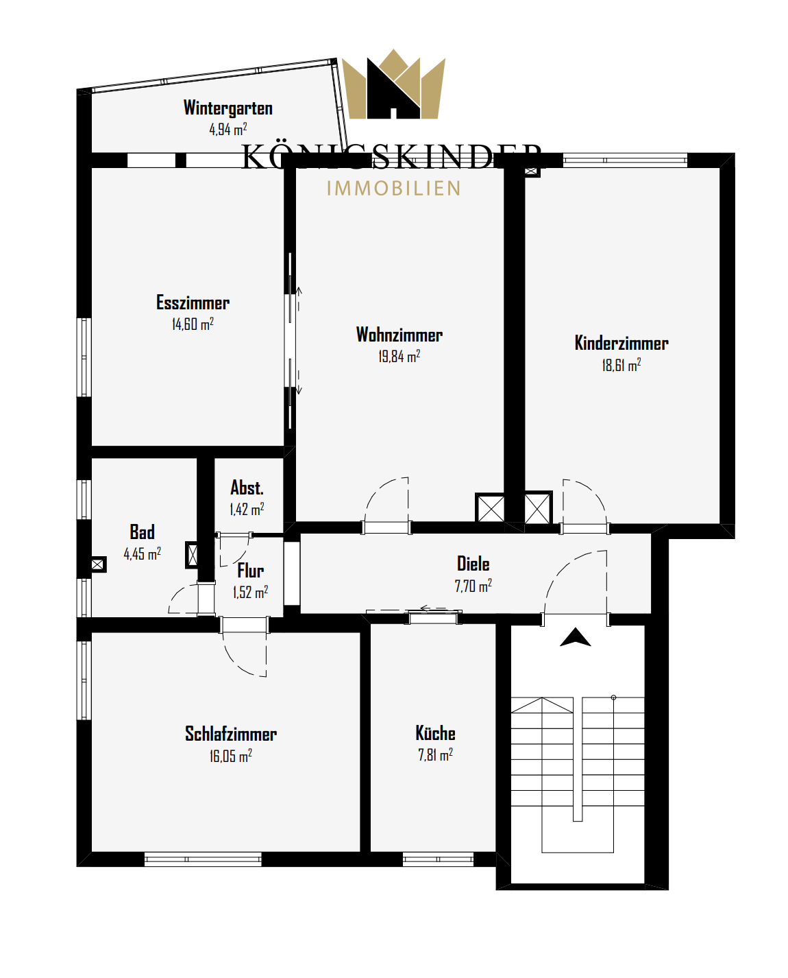 Diese charmante 4-Zimmer-Wohnung mit ca. 96,9 m² Wohnfläche befindet sich im 3. Obergeschoss eines gepflegten Mehrfamilienhauses aus dem Jahr 1958. Besonders hervorzuheben ist das großzügige Wohnzimmer mit offenem Essbereich, an das sich ein heller Wintergarten anschließt und für ein angenehmes Wohnambiente sorgt. Zwei gut geschnittene Schlafzimmer sowie ein großzügiges Tageslichtbad runden das Raumangebot ab.