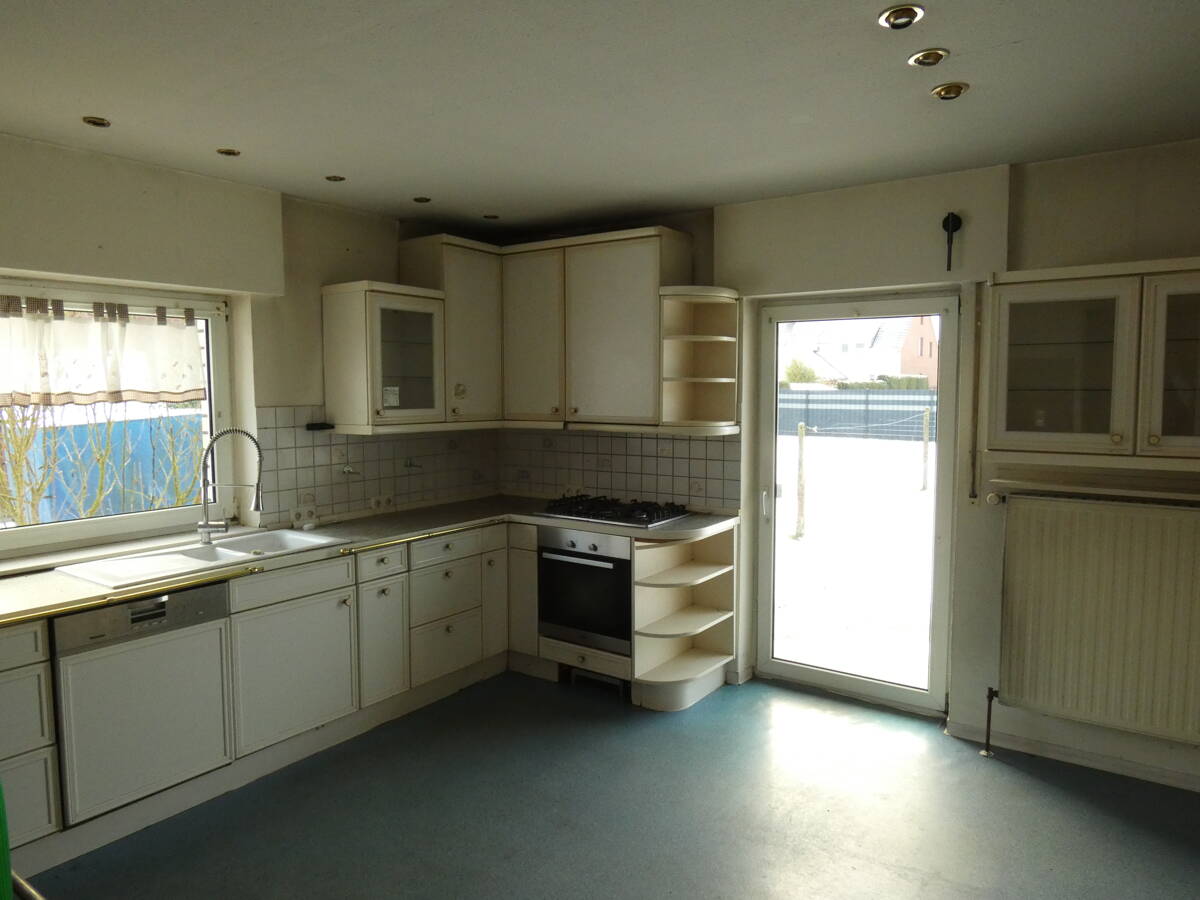 Die Küche ist ebenfalls mit einem Ofen ausgestattet, der zusätzlich eine Wärmequelle durch Holzbeheizung darstellt. Die vorhandene Küche inkl. E-Geräte ist Teil des Angebotes.