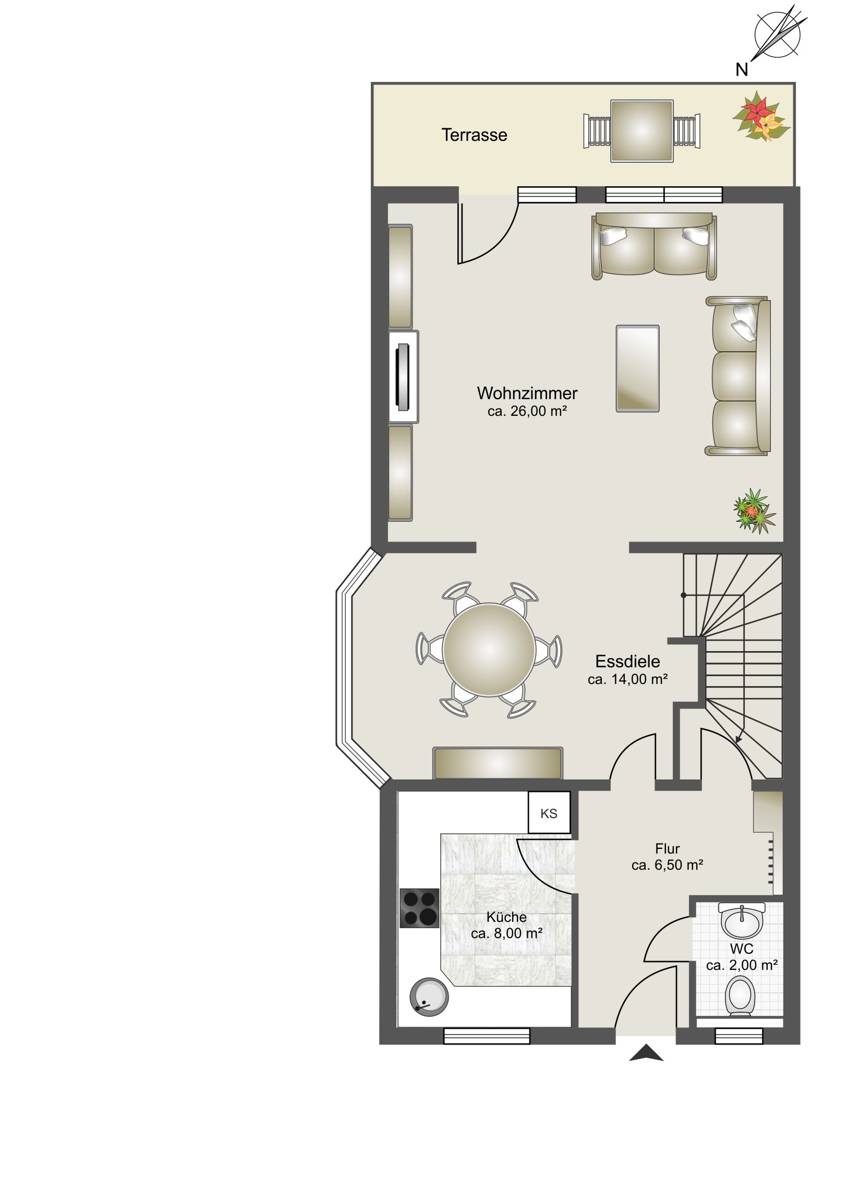 •Offener Wohn- und Essbereich mit hochwertigem Eiche-Parkettboden (2012)
