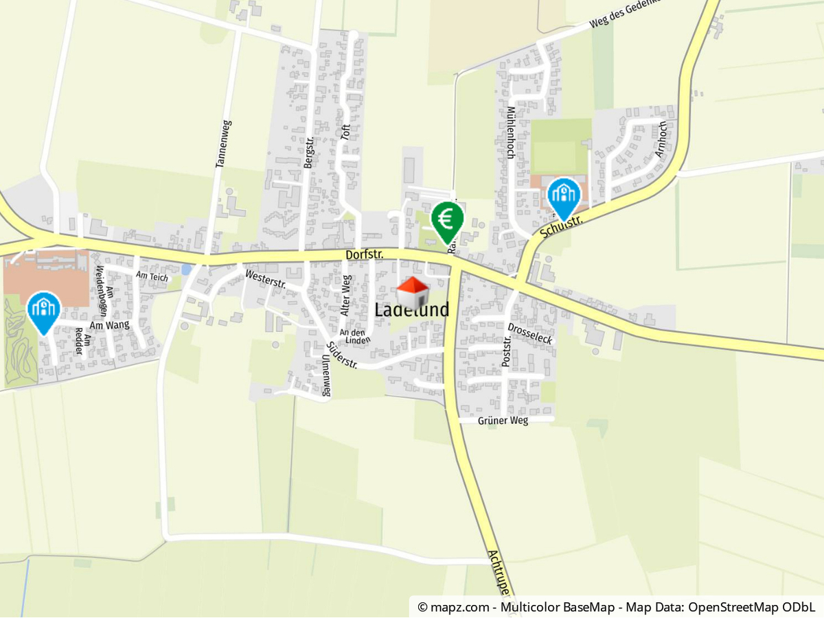 Ladelund (PLZ 25926) ist eine grenznahe, ländliche Gemeinde in Nordfriesland (Schleswig-Holstein) mit dörflicher Infrastruktur (Schulen, Edeka, Bank) und hohem Freizeitwert (Naturbad, Wald), guter Anbindung nach Leck, Niebüll und Flensburg sowie zur A7.