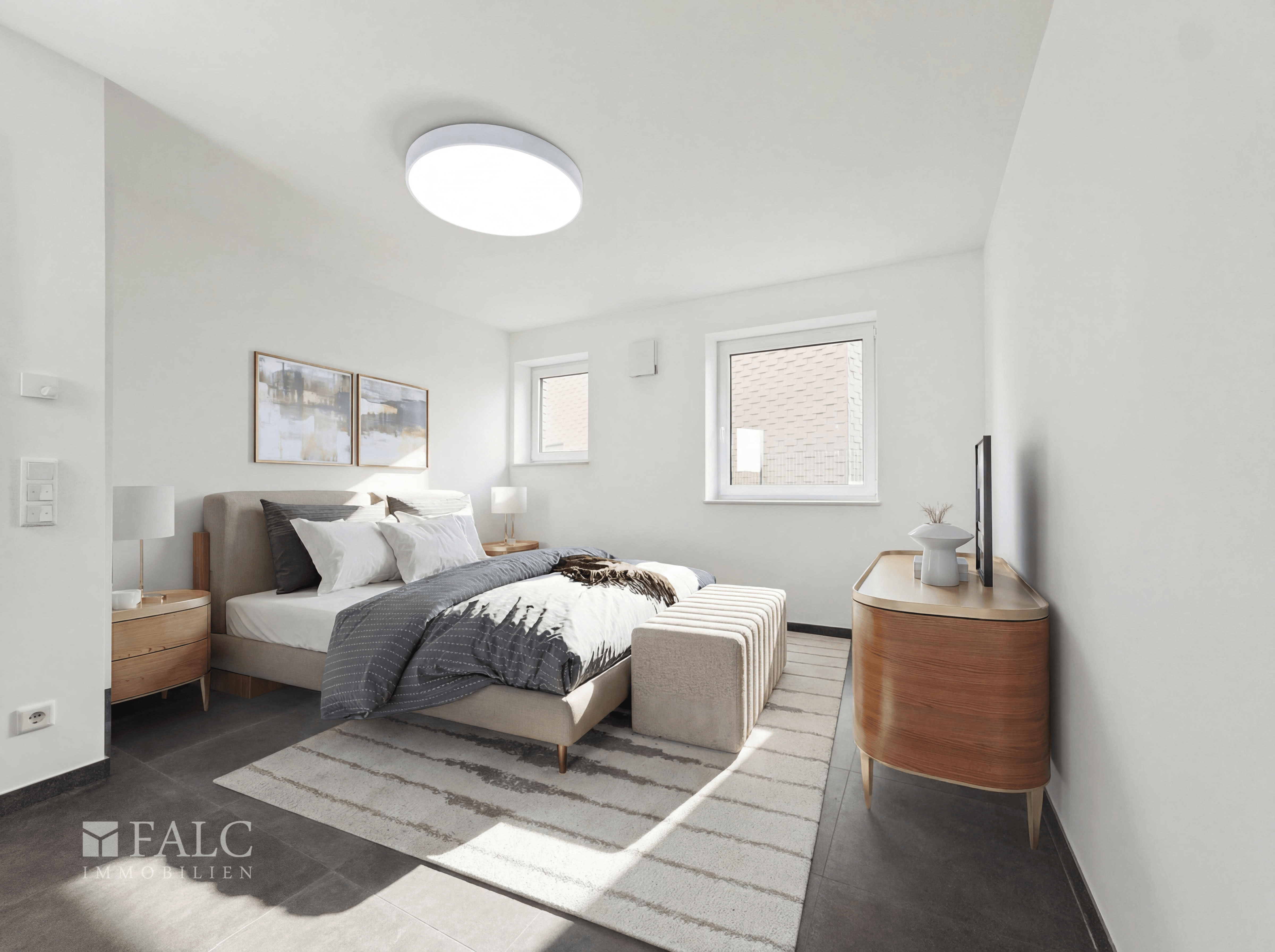 Wohnkomfort & Design: ✔ Fußbodenheizung in allen Wohnungen ✔ Dezentrale Lüftungsanlage ✔ Hochwertige Fliesen aus robustem Feinsteinzeug (60x60 cm, anthrazit) ✔ Lichtdurchflutete Räume dank bodentiefer Fenster ✔ Elektrische Rollläden aus Aluminium für optimalen Komfort ✔ Hochwertige weiße Innentüren