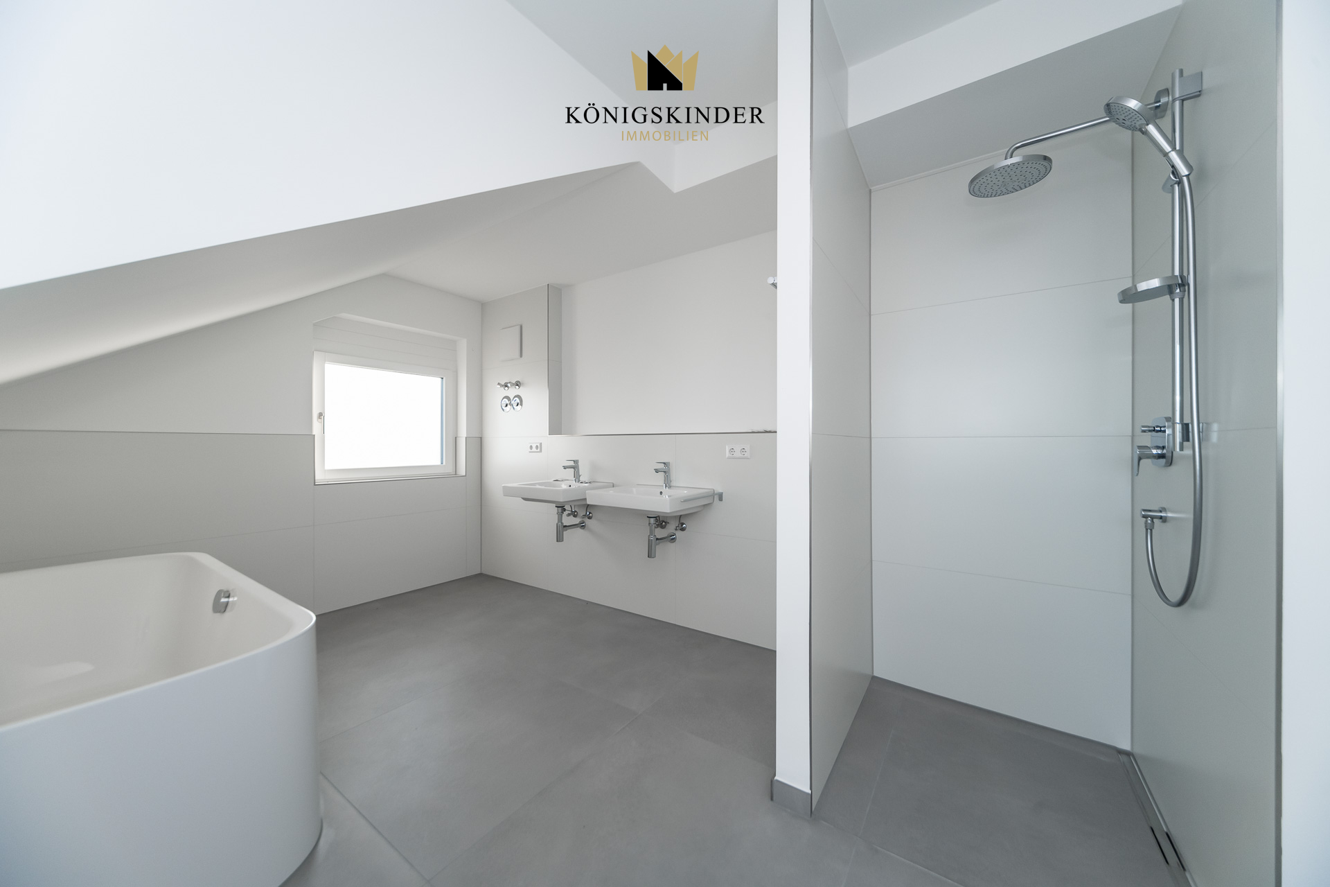 Das Interieur besticht durch eine durchdachte Raumaufteilung: Das geräumige Badezimmer als Wellness-Bereich mit einer Badewanne und moderner Regendusche, ergänzt durch ein separates Gäste-WC – funktional für Besucher. Die 3,5 Zimmer bieten Flexibilität: Ein repräsentatives Wohnzimmer, geräumige Schlafzimmer mit Arbeitsmöglichkeiten und ein Zimmer als Ankleidezimmer, Bibliothek oder Gästebereich.