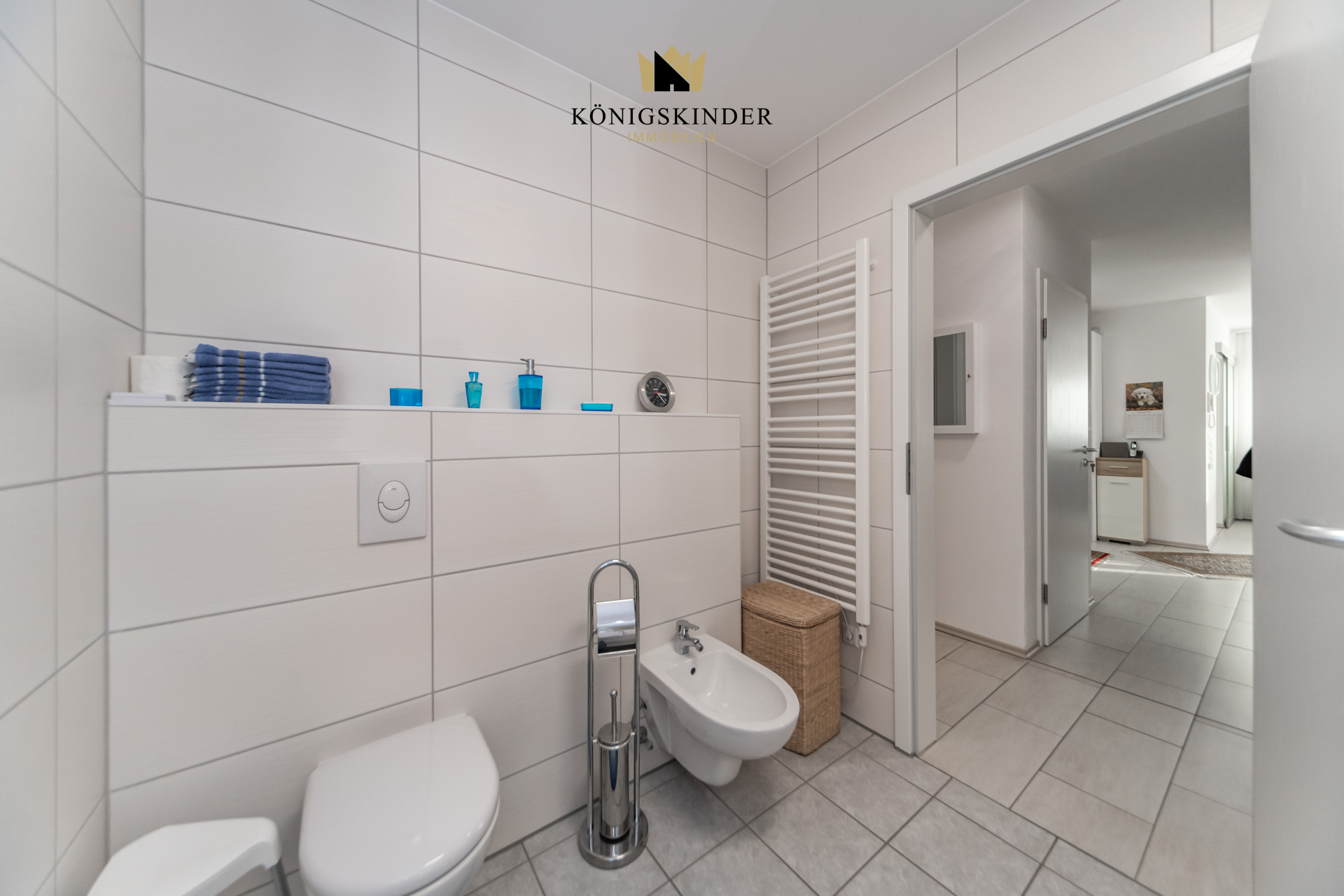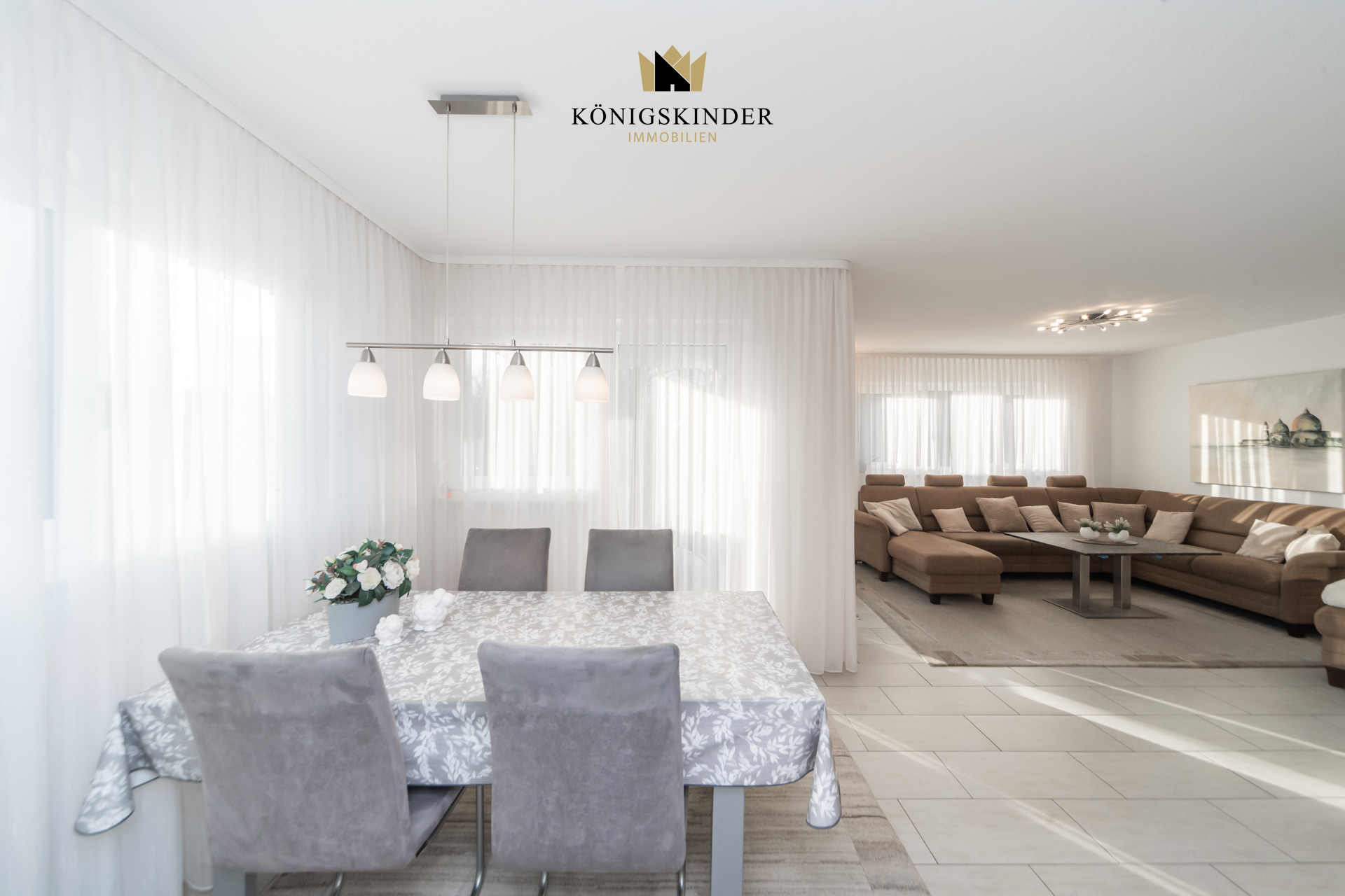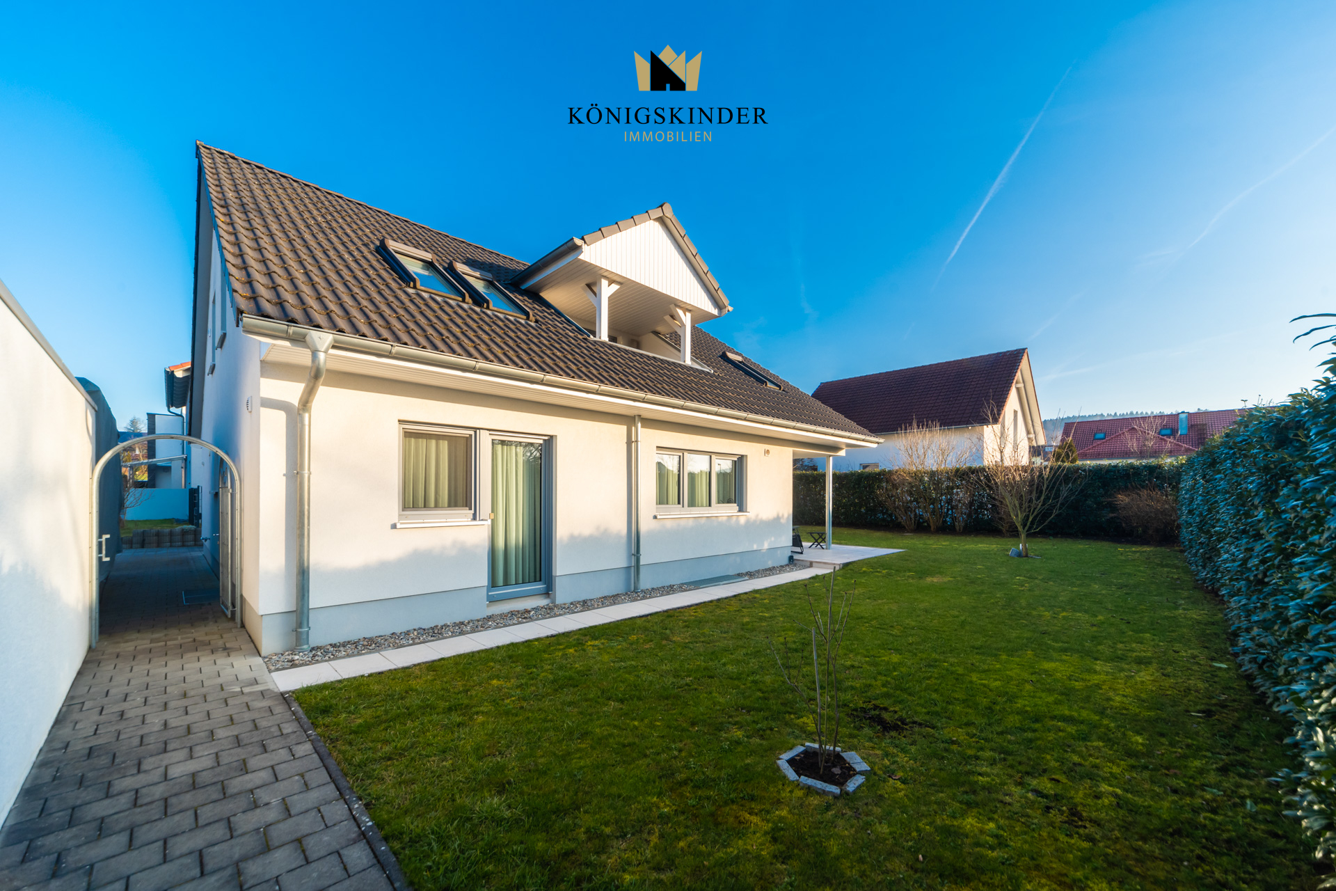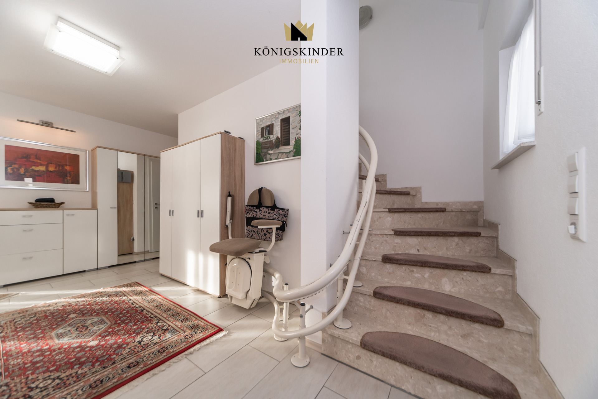 Exklusives Wohnen in vollendeter Harmonie mit der Natur – barrierefrei, modern, außergewöhnlich In privilegierter, unverbaubarer Lage am Rand des Naturschutzgebietes „Krummbach“ eröffnet sich ein Wohnensemble, das höchsten Ansprüchen gerecht wird. Dieses neuwertige, architektonisch klare Einfamilienhaus auf einem 539 m² großen Grundstück wurde in hochwertiger „Weißer-Wanne“-Bauweise errichtet und vereint zeitlose Eleganz, nachhaltige Technik und komfortables, nahezu barrierefreies Wohnen auf höchstem Niveau. Der großzügige Garten wirkt wie eine private Parklandschaft – fließend eingebettet in das angrenzende Naturschutzgebiet. Weitläufige Grünflächen, absolute Ruhe und ein unverbaubarer Blick schaffen ein Lebensgefühl, das jeden Tag an einen exklusiven Rückzugsort erinnert. Großzügigkeit & Barrierefreiheit – Wohnen ohne Kompromisse Das Erdgeschoss bietet mit über 90 m² ein außergewöhnlich komfortables Wohnkonzept und ermöglicht barrierearmes bis nahezu barrierefreies Leben auf einer Ebene. Breite Bewegungsflächen, ebenerdige Zugänge sowie ein durchdachtes Raumlayout schaffen maximale Freiheit und Sicherheit. Der repräsentative Wohn- und Essbereich mit ca. 30 m² bildet das Herzstück des Hauses. Großzügige Fensterfronten lassen Licht und Natur in jeden Winkel strömen und öffnen sich direkt zur sonnigen Terrasse und in den traumhaften Garten – ein fließender Übergang zwischen Innen- und Außenraum. Zwei weitläufige Zimmer auf dieser Ebene eignen sich ideal als Schlaf-, Gäste- oder Arbeitszimmer. Ergänzt wird das Raumangebot durch ein stilvolles Gäste-WC mit Waschmaschinenanschluss sowie ein luxuriös ausgestattetes Duschbad mit ebenerdiger Dusche, Bidet, WC, hochwertigem Waschtisch und Handtuchwärmer – Komfort, der keine Wünsche offenlässt. Die exklusive Einbauküche aus dem renommierten Küchenstudio „Meine Küche“ verbindet Design und Funktionalität auf höchstem Niveau und wird zum Mittelpunkt anspruchsvoller Koch- und Genussmomente. Über einen komfortablen Treppenlift gelangen Sie ins Obergeschoss, das ebenfalls durch Großzügigkeit und Licht überzeugt. Die elegante Empore mit elektrischem Kaminofen lädt zu ruhigen Lesestunden und entspannten Auszeiten ein. Hier befinden sich das Elternschlafzimmer, ein Kinder- oder Gästezimmer, ein separater Ankleideraum sowie ein außergewöhnlich großzügiges Tageslichtbad mit Badewanne, ebenerdiger Dusche, WC, Waschtisch und Handtuchwärmer – ein privater Wellnessbereich mit viel Licht und Raum. Ein besonderes Juwel ist die Loggia mit unverbaubarem Blick ins Grün – ein Ort der Ruhe, der täglich Urlaubsgefühle weckt. Modernste Haustechnik unterstreicht den gehobenen Anspruch dieser Immobilie: 3-fach verglaste Fenster (innen weiß, außen lichtgrau), überwiegend elektrische Rollläden im Erdgeschoss sowie eine effiziente Luft-Wasser-Wärmepumpe sorgen für Nachhaltigkeit, Wohnkomfort und niedrige Betriebskosten. Kabel- und Telefonanschlüsse in sämtlichen Räumen ermöglichen zeitgemäßes Arbeiten und Leben. Im Untergeschoss stehen Ihnen ca. 95 m² hochwertig nutzbare Fläche zur Verfügung – aufgeteilt in drei großzügige Räume und einen Vorraum. Ob privater Fitnessbereich, Hobbyatelier oder stilvolles Home-Spa: Ihrer Individualität sind keine Grenzen gesetzt. Zwei geräumige Garagen – eine davon mit direktem Gartenzugang – sowie vier weitere Stellplätze im Hof runden dieses exklusive Angebot ab. Ein Zuhause für Menschen mit Anspruch. Barrierefrei gedacht. Luxuriös gelebt. In vollkommener Verbindung mit der Natur!