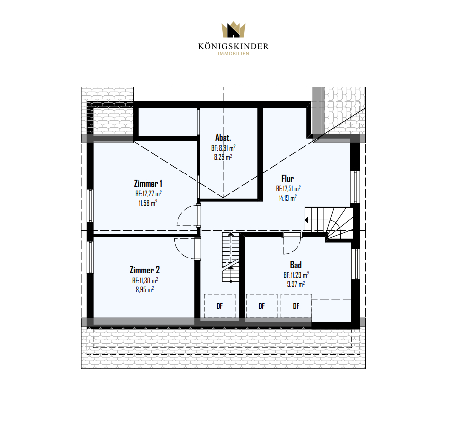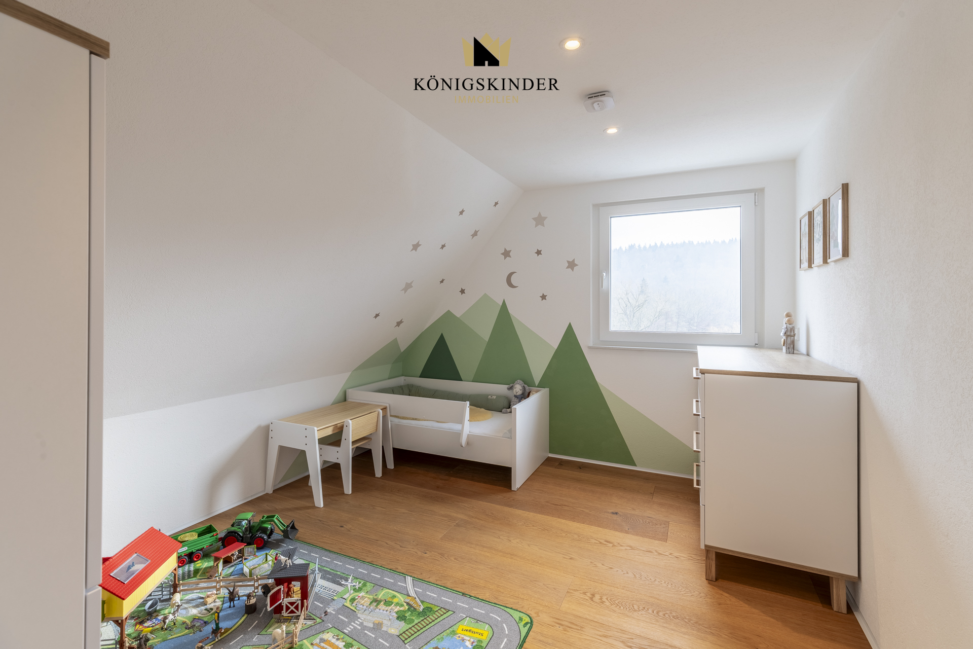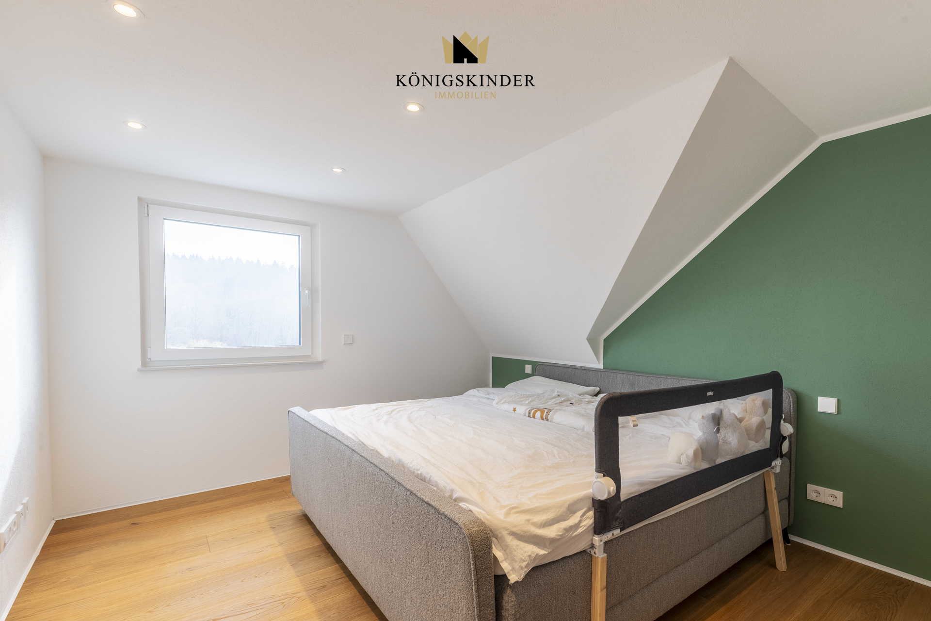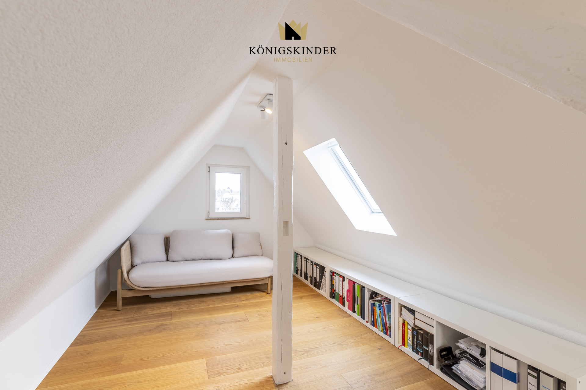 Von hier führt eine kleine Treppe in den ausgebauten Dachspitz, der sich ideal als Hobby-, Spiel- oder Rückzugsraum anbietet und der Wohnung einen besonderen Charme verleiht.
