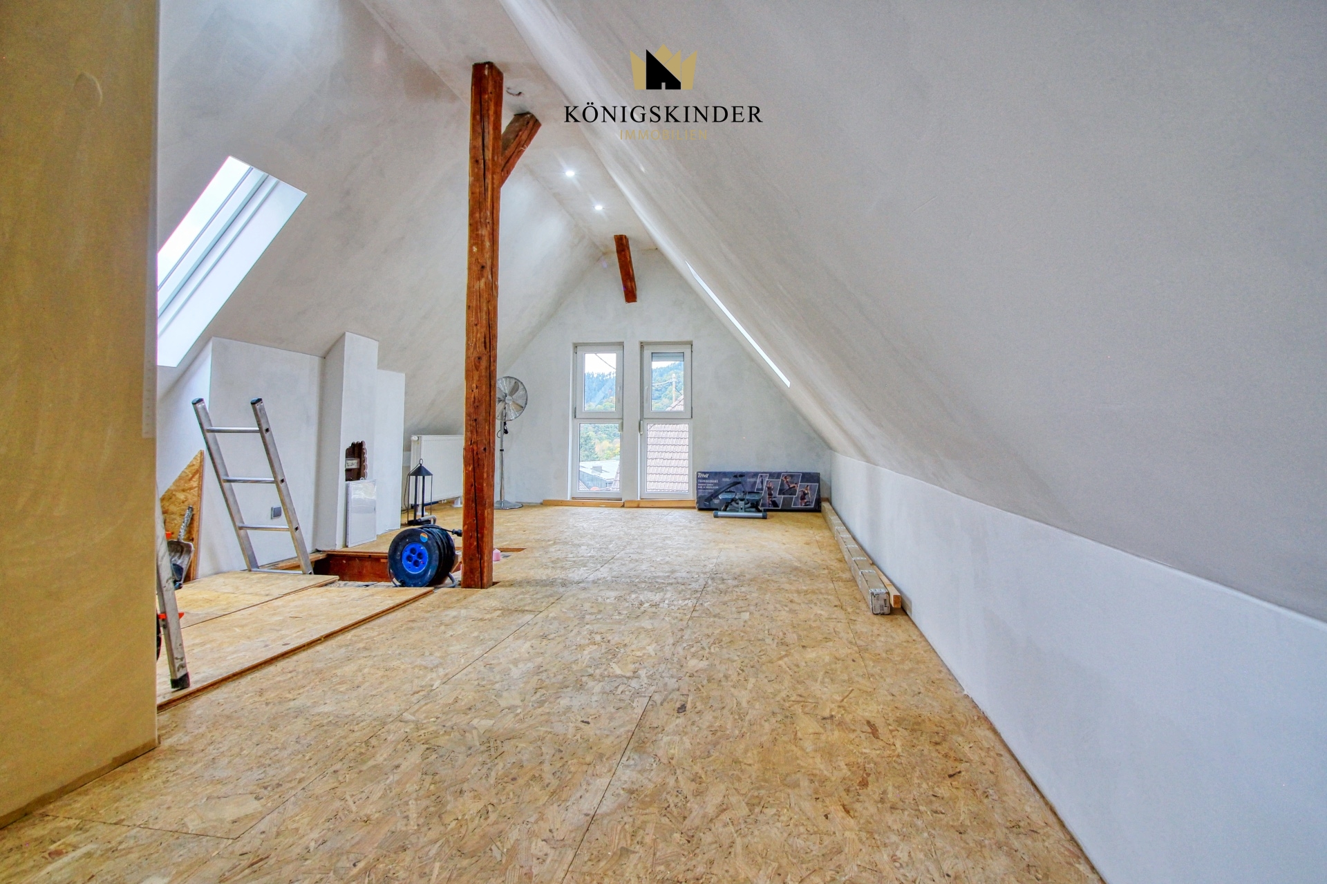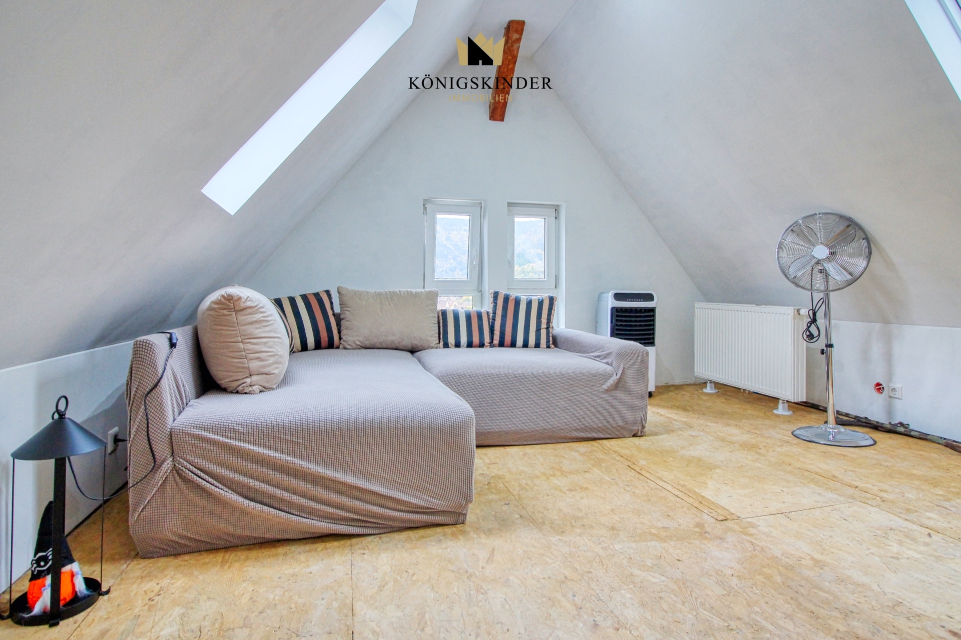 Als besonderes Highlight präsentiert sich der lichtdurchflutete, behutsam renovierte Dachboden. Mit seiner offenen Struktur und den sichtbaren Holzelementen des Altbestands ist er weit mehr als ein zusätzlicher Raum – er ist ein Rückzugsort, ein Atelier, ein Ort der Inspiration.