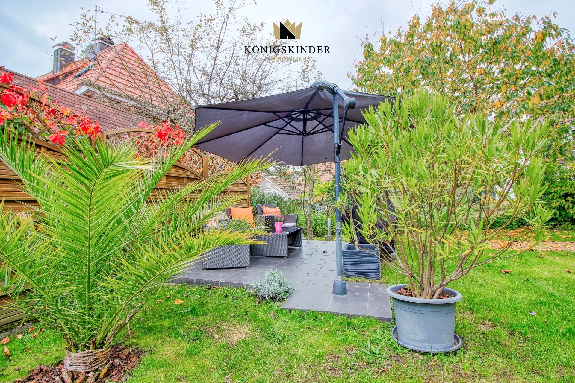 Der Garten spiegelt die Liebe zum Detail auch im Außenbereich wider: gepflegt, eingefasst und mit lieblicher Sitzinsel, die zum Verweilen einladen. Eine Garage und ein großer Keller runden das Angebot ab und unterstreichen die durchdachte Gesamtkonzeption dieses außergewöhnlichen Anwesens.