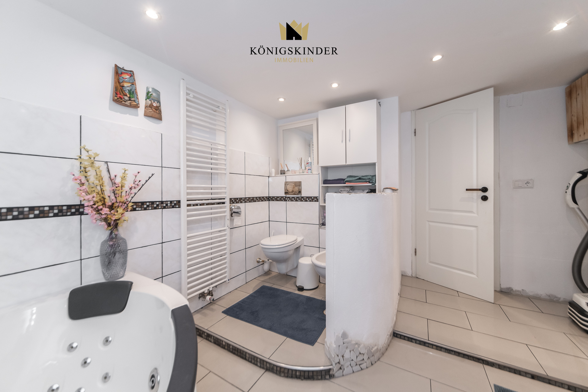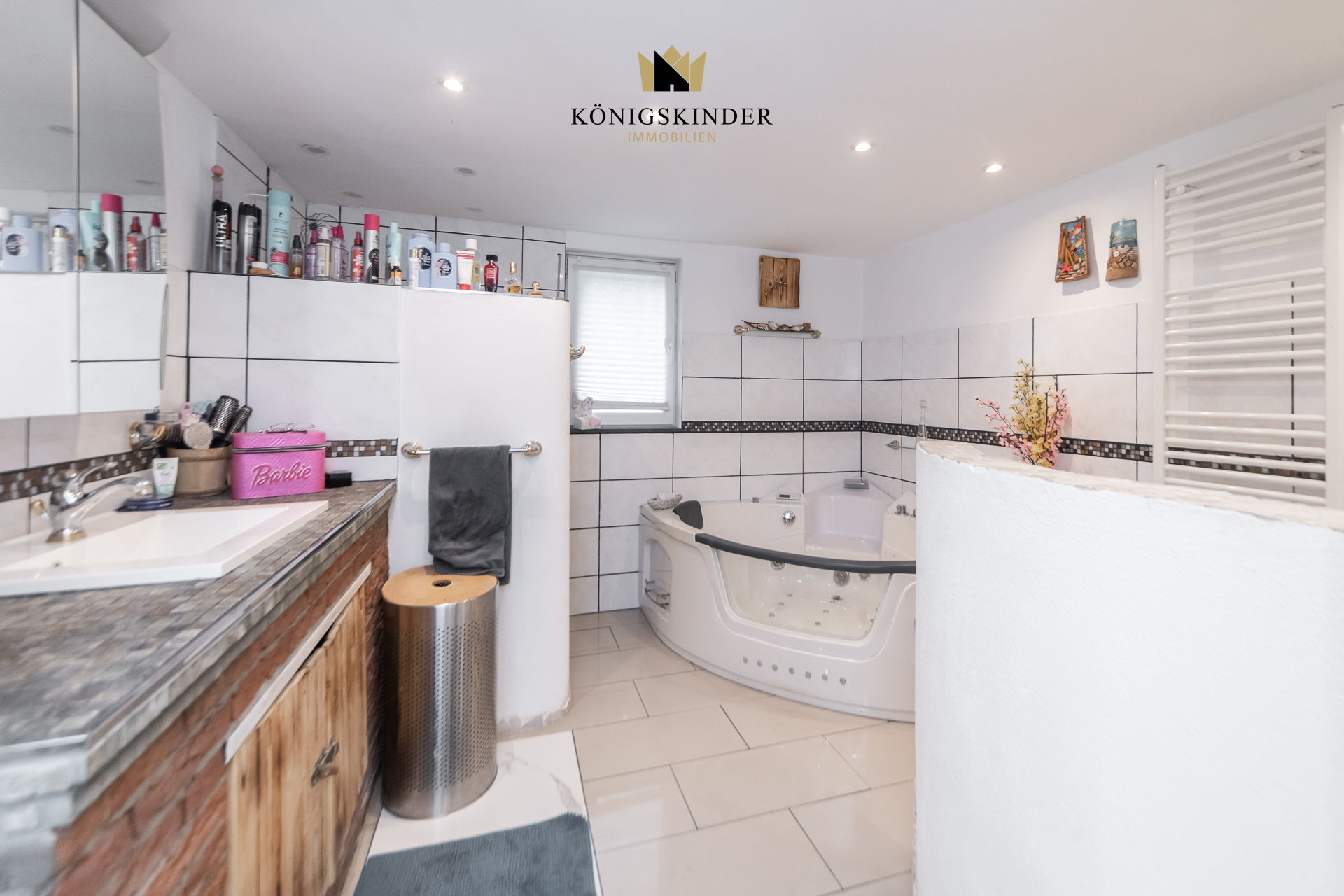 - 2 Tageslichtbäder – Bad im 1. Obergeschoss 2022 vollständig saniert mit Whirlpool, ebenerdiger Dusche, Eckbadewanne, WC und Bidet - weiteres Bad im Dachgeschoss mit Badewanne und Fenster - zusätzliches Gäste-WC im Erdgeschoss - Hobbyraum mit Barbereich und eigenem Gäste-WC – ideal für Feiern oder Home-Wellness - 3-fach-verglaste Kunststofffenster, erneuert ca. 2020 - Gas-Brennwertheizung Junkers, 2018 gekauft, 2021 eingebaut (nach Erneuerung der Leitungen) - teilweise erneuerte Elektro- und Wasserleitungen - hochwertige Bodenbeläge: Laminat und Fliesen im 1. OG, Laminat im DG (darunter originaler Echtholzparkett – aufbereitbar) - offene Holztreppen und sichtbare Fachwerkelemente – wohnlich & charakterstark - helle, gut geschnittene Räume mit gemütlichem Wohncharakter - vier Schlafzimmer im Dachgeschoss (3 Kinderzimmer + 1 Schlafzimmer)