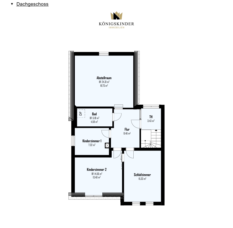 Das Dachgeschoss beherbergt vier Schlafzimmer (drei Kinderzimmer und ein Elternschlafzimmer) und bietet damit viel Platz für Familie, Gäste oder Homeoffice.