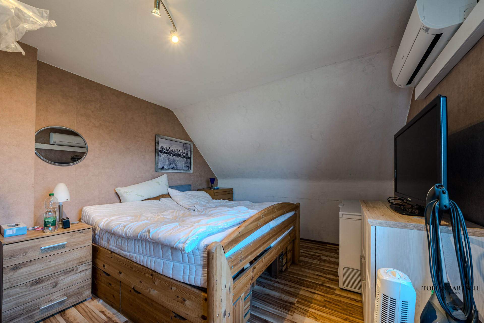 Ein weiteres besonderes Merkmal ist die Teilung der Immobilie in zwei abgeschlossene Einheiten mit Teilungserklärung. Dadurch ist sowohl eine Teilvermietung der oberen Einheit als auch eine vollständige Nutzung des Hauses durch Eigennutzer möglich – eine attraktive Option für Mehrgenerationenwohnen, Wohnen und Arbeiten unter einem Dach oder zur teilweisen Refinanzierung.