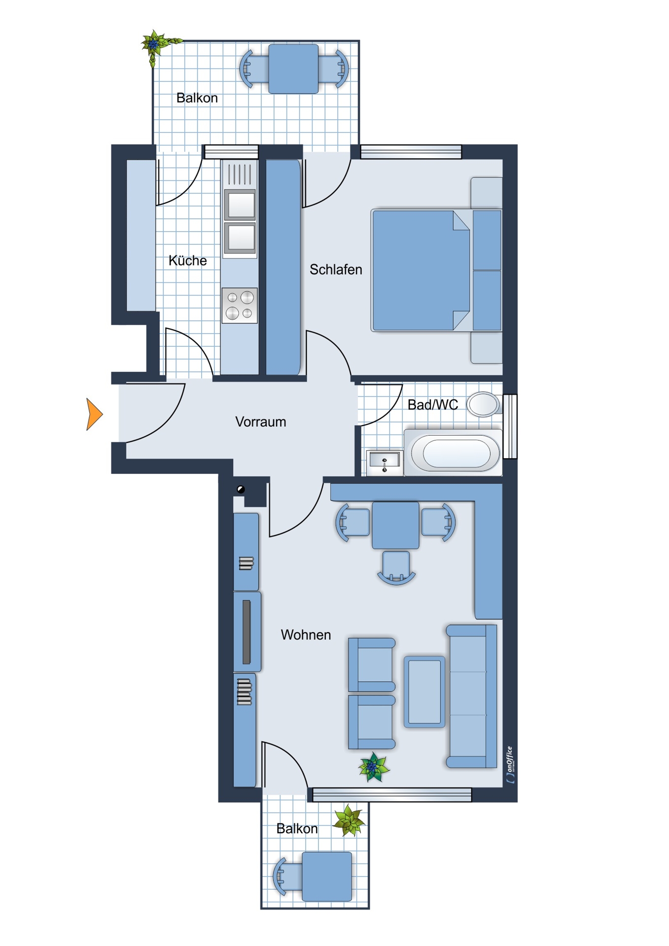 Solide gebaut, praktisch geschnitten und mit ehrlichem 60er-Jahre-Flair – diese Wohnung ist ein authentisches Cannstatter Original im besten Alter. Der klassische Grundriss überzeugt: Vom zentralen Flur aus gelangt man in Küche, Bad, Wohn- und Schlafzimmer. Ein Einbauschrank macht den Verbindungsflur zum Raumwunder. Zwei Balkone (einer zum ruhigen Innenhof, einer mit Blick zur Schmidener Straße) laden zum Durchatmen ein.