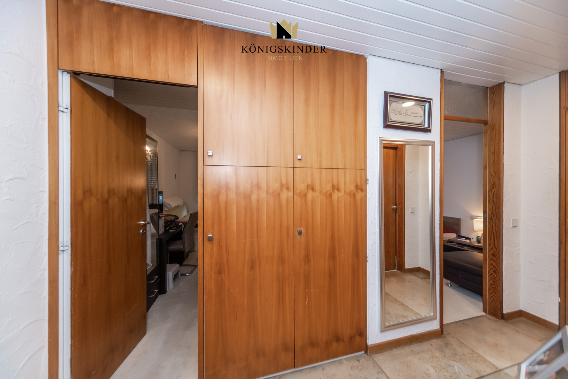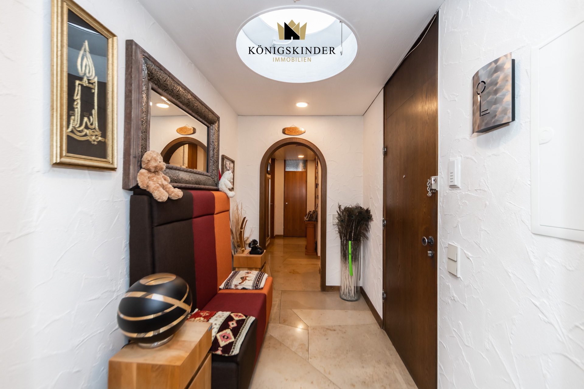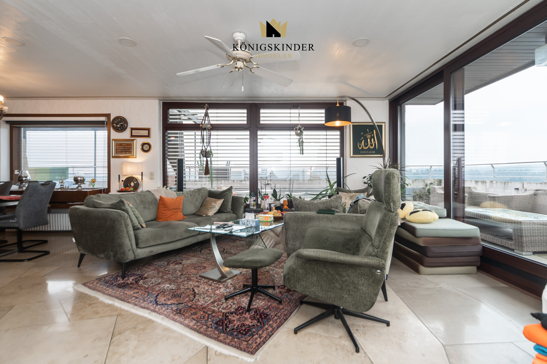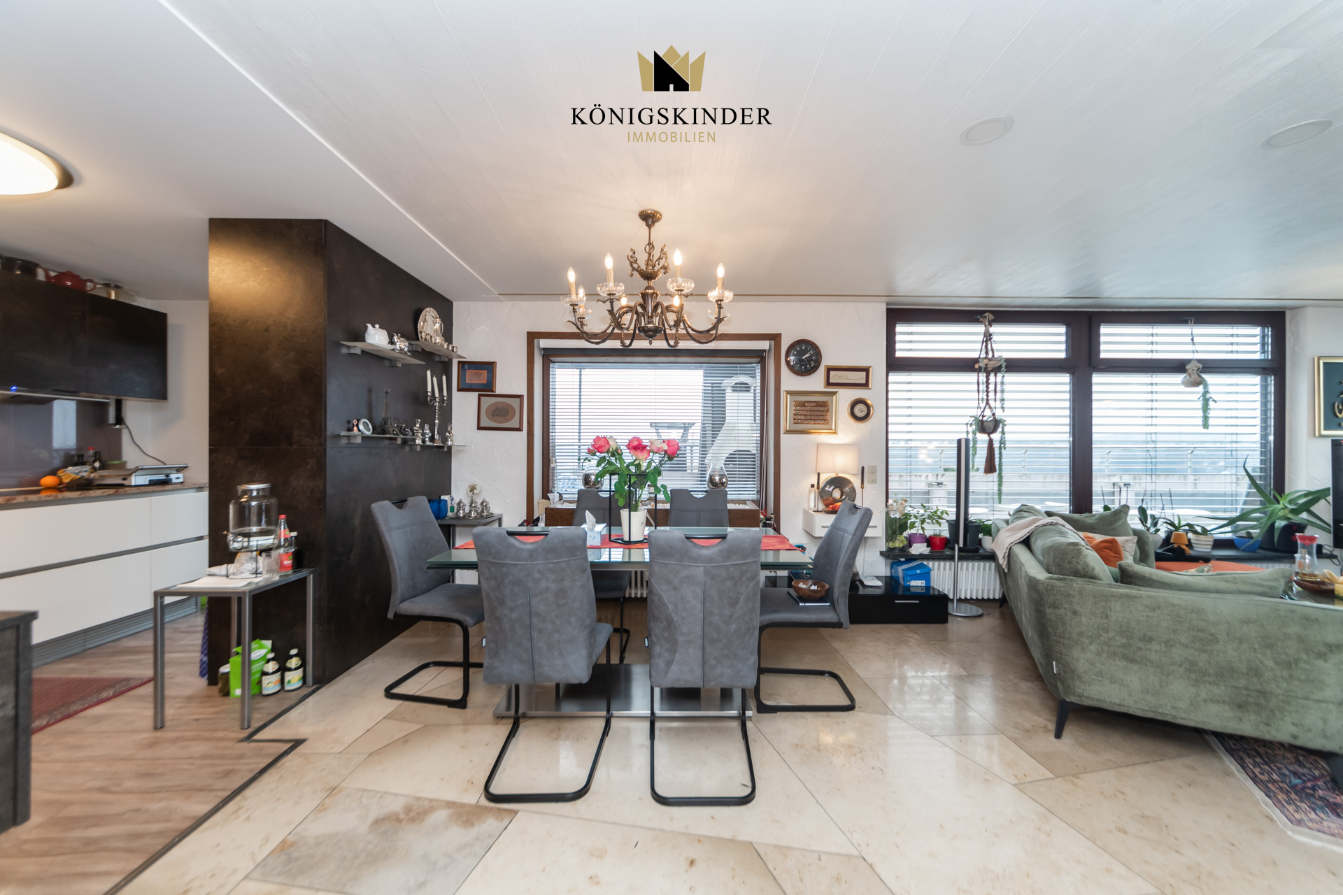 Die Wohnung liegt im 5. Stock eines gepflegten Mehrfamilienhauses aus dem Baujahr 1972 und wirkt durch die vielen Fenster wunderbar hell und offen. Herzstück ist der große Wohn- und Essbereich mit offener Küche – ein Raum, der sofort einlädt: zum Kochen, Zusammensitzen, Ankommen. Hier passt eine große Tafel genauso gut wie eine gemütliche Sofalandschaft, und durch die Nähe zur Terrasse wird Wohnen drinnen und draußen ganz selbstverständlich. Auch der restliche Grundriss ist angenehm durchdacht: großzügige Zimmer, die sich flexibel gestalten lassen – etwa mit einem Schlafzimmer und zwei Kinderzimmern oder alternativ mit Schlafzimmer, Kinderzimmer und einem ruhigen Homeoffice. Über den Flur sind alle Räume bequem erreichbar, was den Alltag einfach macht und die Wohnung sehr stimmig wirken lässt.