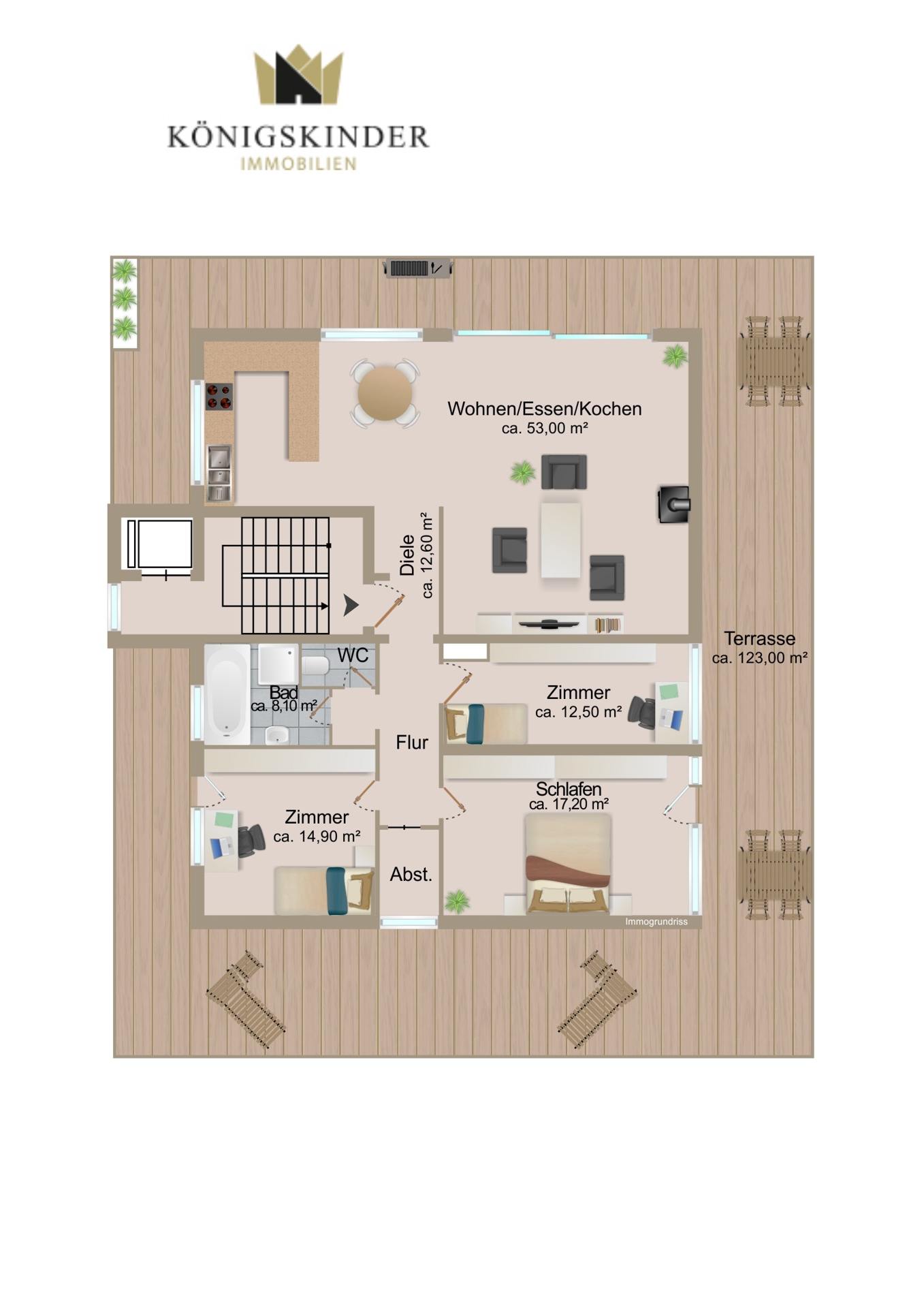 Treppenhaus mit Aufzug Eingang zum Penthouse Flur / EingangWohn /-Essbereich Wohn /-Essbereich Wohn /-Essbereich KücheKücheWohn / Essbereich Wohnbereich Wohnbereich Flur Kinderzimmer Flur mit Garderobe Tageslichtbad Badezimmer Gäste WCZugang zum Kinderzimmer und Schlafzimmer Schlafzimmer weitläufige Terrasse Terrasse Ausblick Terrasse Aussicht von der Terrasse GrundrissSauna (gemeinschaftlich)Außenansicht Zufahrt zur Garage Garage Ansicht von hinten Außenansicht vorne Wohnbereich