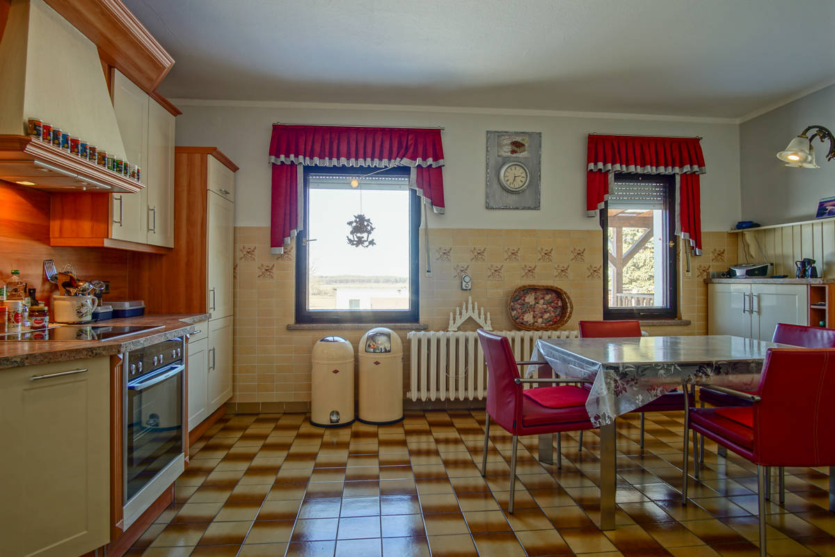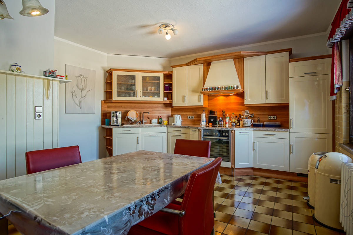 Erleben Sie in diesem Haus das angenehme Wohngefühl einer durchdachten Raumaufteilung . Die große Wohnküche bietet viel Platz zum Kochen und sitzen . Die Einbauküche aus 2011 ist im Kaufpreis enthalten und modern ausgestattet. Besonders großzügig ist das Wohn- und Esszimmer des Hauses welches wie auch der Flur über einen schönen Parkettboden verfügt. Im Dachgeschoss befinden sich, zwei weitere Zimmer und eine zusätzliches kleines Bad mit Waschbecken und WC. Also zusätzlicher Komfort und Platz ist hier auch im Obergeschoss gegeben. Dieses Haus ist außerdem vollständig unterkellert und bietet dadurch zusätzlichen Stauraum und Platz für ein kreatives Hobby. Im Keller befinden sich zwei Zimmer sowie der Wasch- und Trockenraum und der Heizraum. Für angenehme Wärme in der kalten Jahreszeit sorgt die effiziente Zentralheizung, die mit Öl befeuert wird, sowie ein zusätzlicher Kaminofen im offenen Flurbereich des Kellers.
