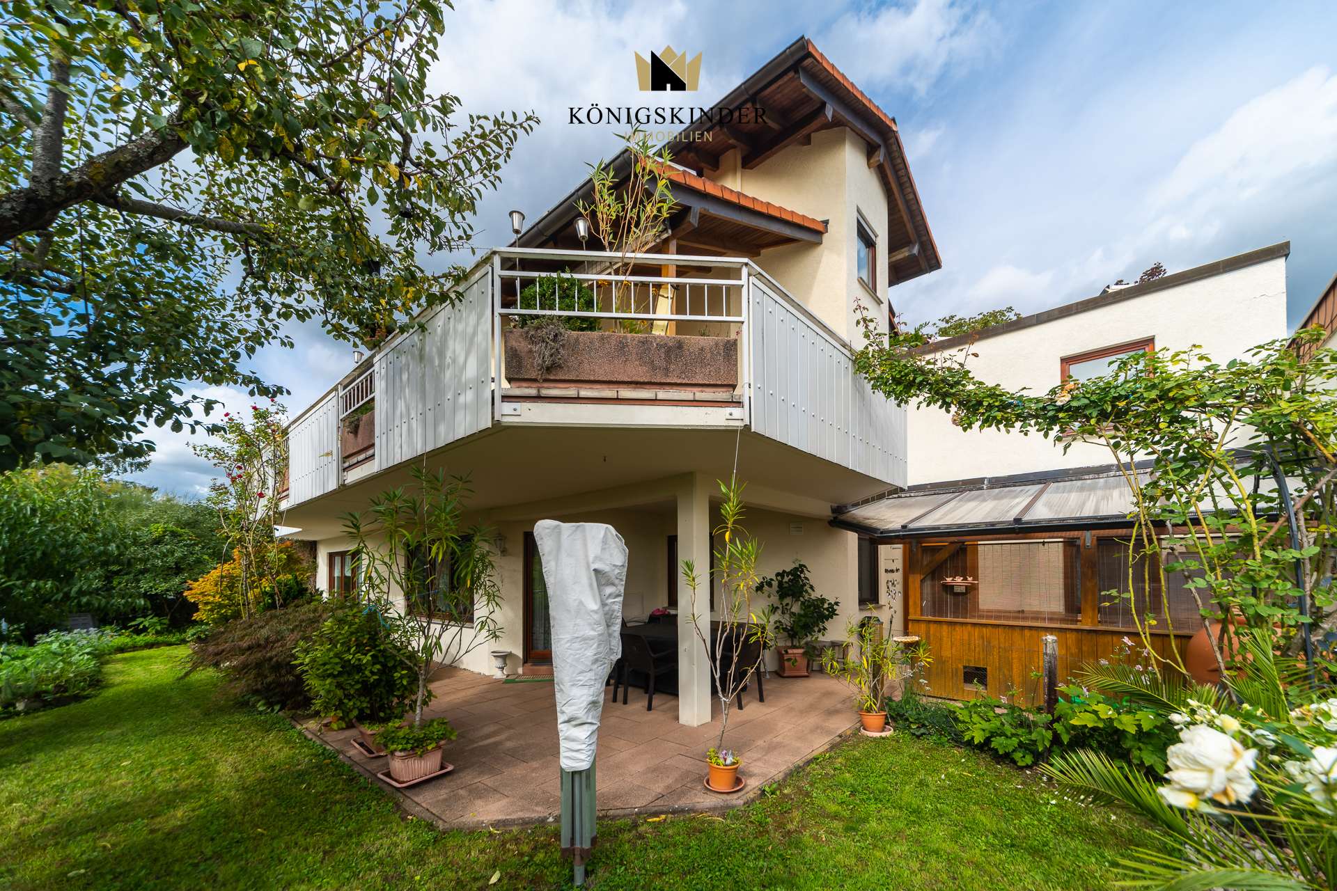 Ein Haus mit vielen Nutzungsmöglichkeiten: Baujahr 1992, auf einem Grundstück von ca. 452 m² mit insgesamt rund 325 m² Wohnfläche. Das Haus wirkt in sich stimmig, großzügig und sehr gepflegt. Der Garten ist liebevoll angelegt, rund ums Haus wachsen Blauregen, Clematis und Kletterrosen und geben der Immobilie eine freundliche, einladende Atmosphäre.