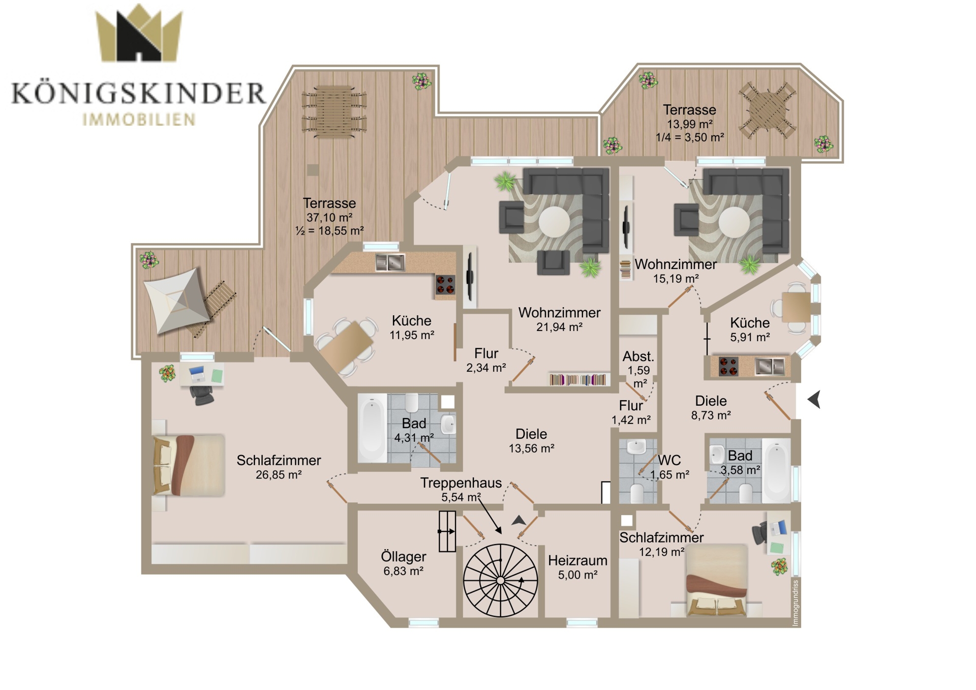 Beide Einheiten verfügen über eigene Terrassen mit direktem Zugang in den Garten. Sie können auf Wunsch kurzfristig möbliert vermietet werden – dies hat in der Vergangenheit bereits sehr gut funktioniert – oder als Mehrgenerationenlösung bzw. für heranwachsende Kinder mit eigenem Bereich genutzt werden. Bei einer der Wohnungen im Untergeschoss ist im vorgelagerten Terrassenbereich zudem die Integration einer Outdoorküche möglich; entsprechende Vorbereitungen sind bereits teilweise vorhanden.