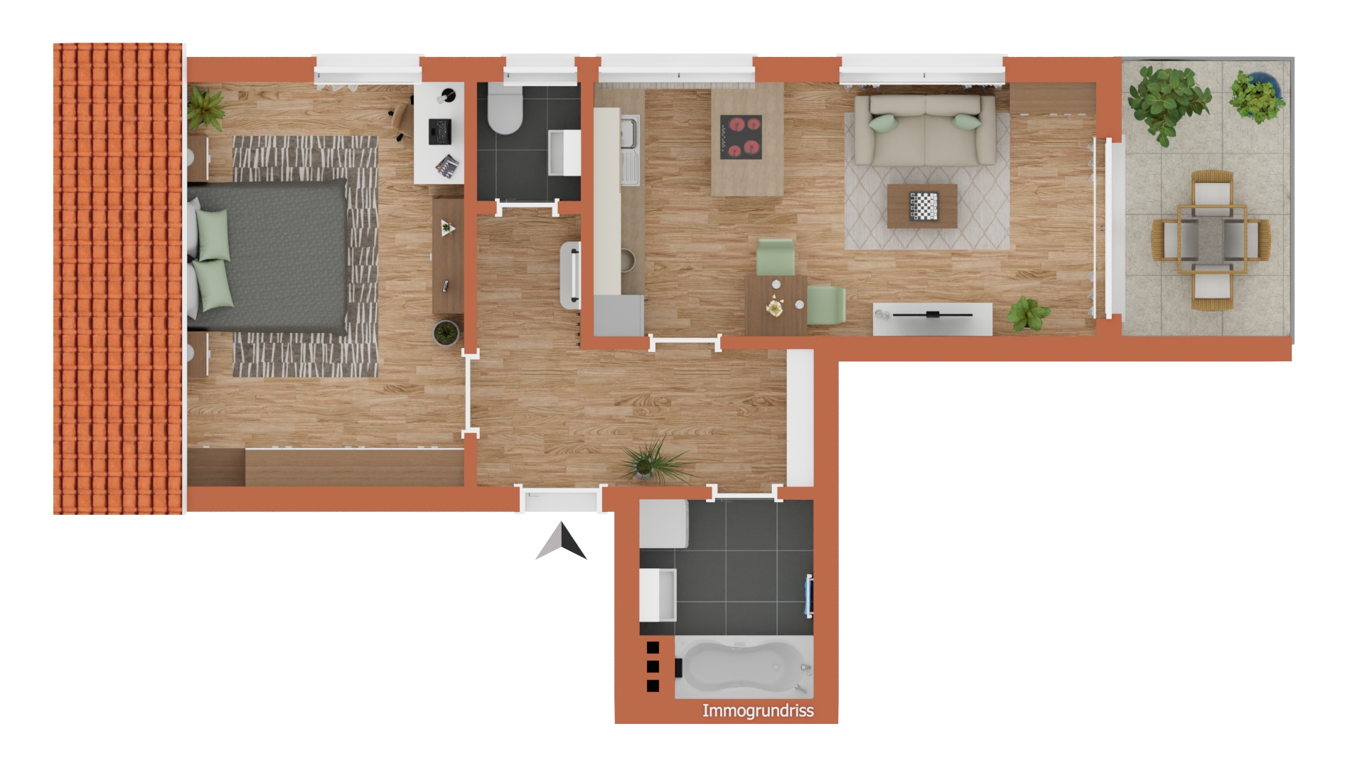 In allen Wohnbereichen ist ein hochwertiger Laminatboden verlegt, der für ein harmonisches Wohnambiente sorgt. Das lichtdurchflutete Wohnzimmer bietet direkten Zugang zum Balkon, der zum Entspannen einlädt. Ergänzt wird das Raumangebot durch ein separates WC sowie ein Badezimmer mit praktischer Duschbadewanne.