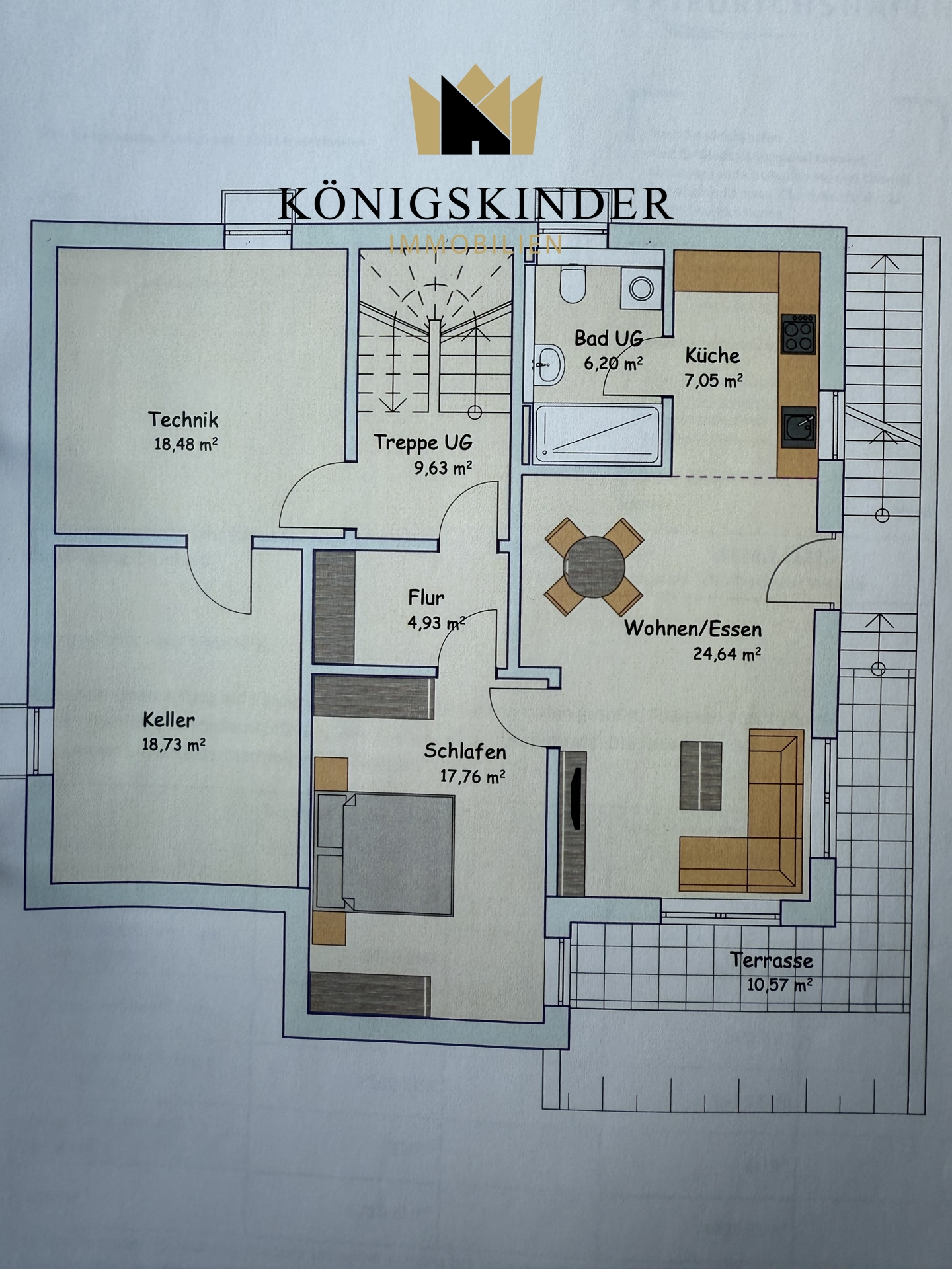 Im Untergeschoss gelangt man zu der ELW mit Küche und Bad sowie die Nutzräume und Technik.