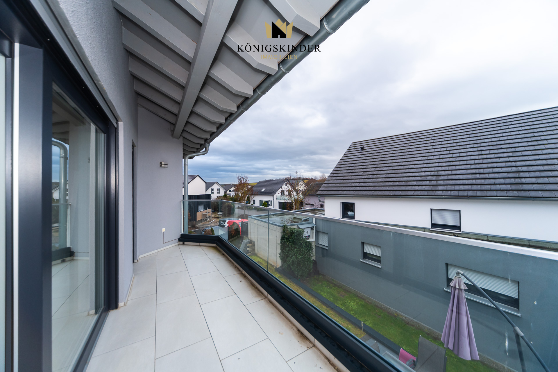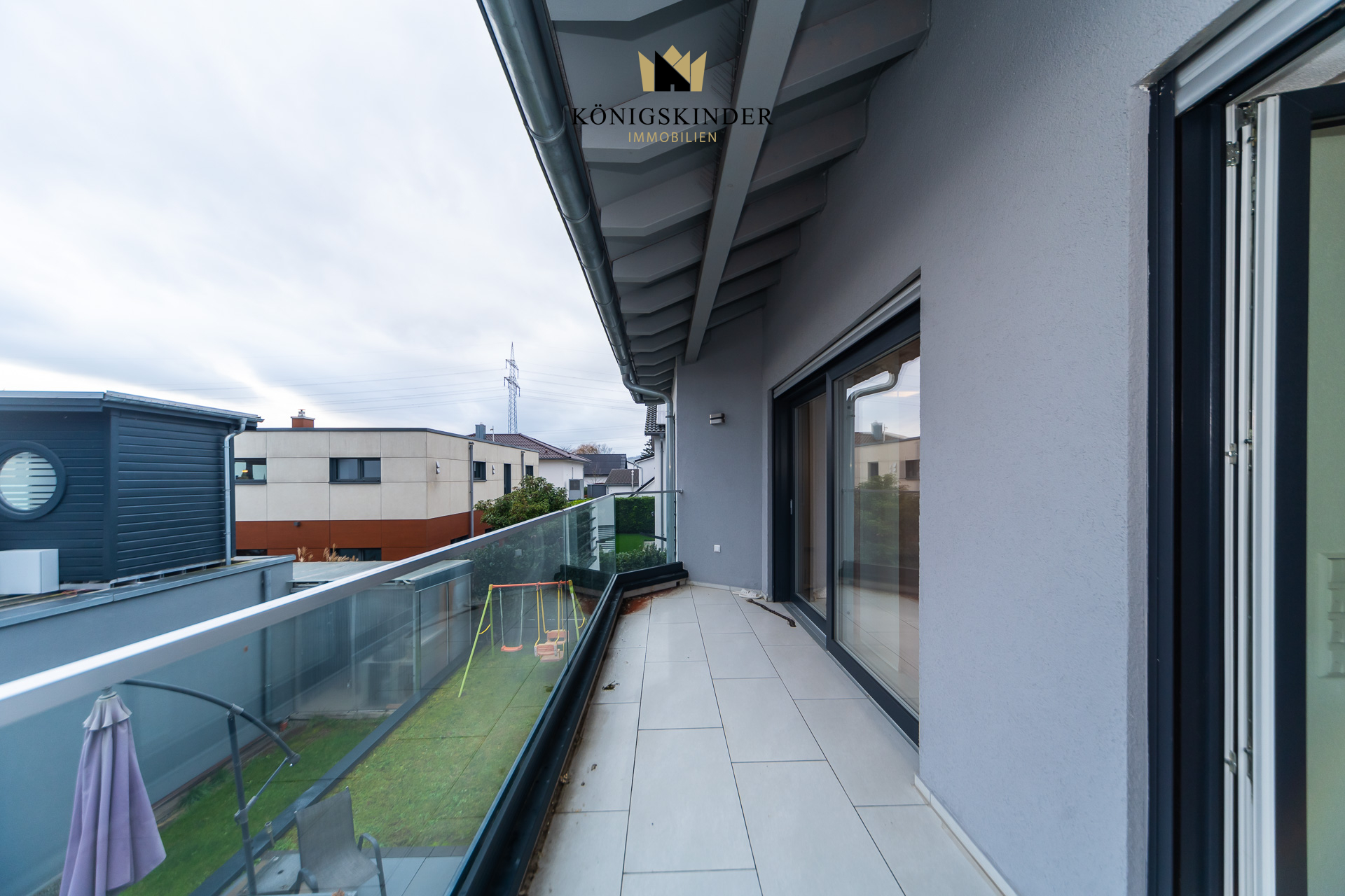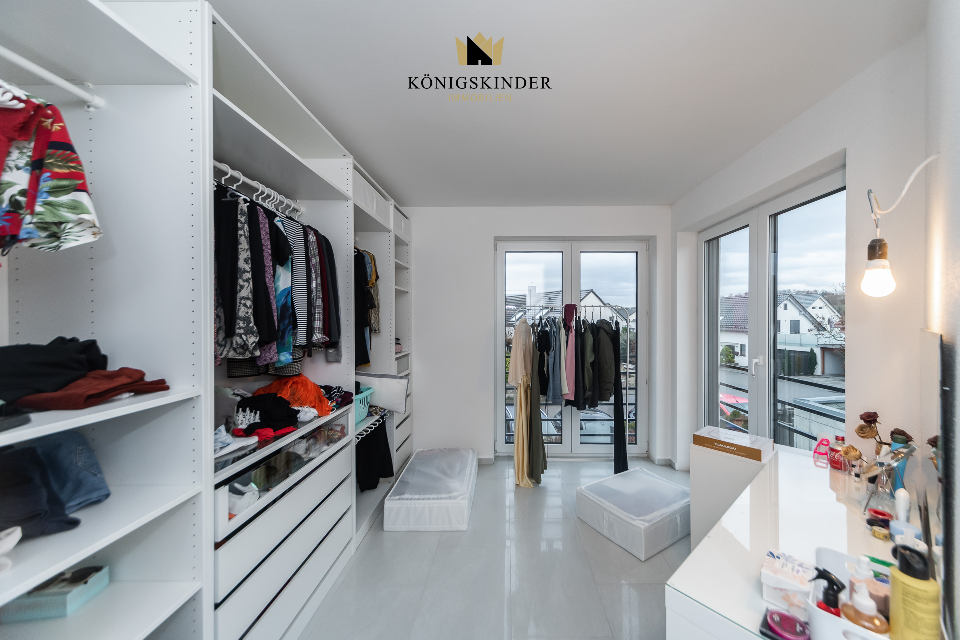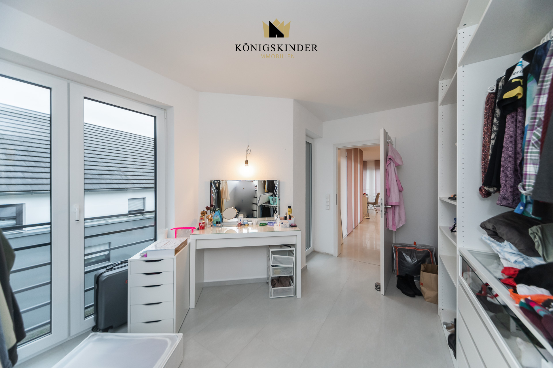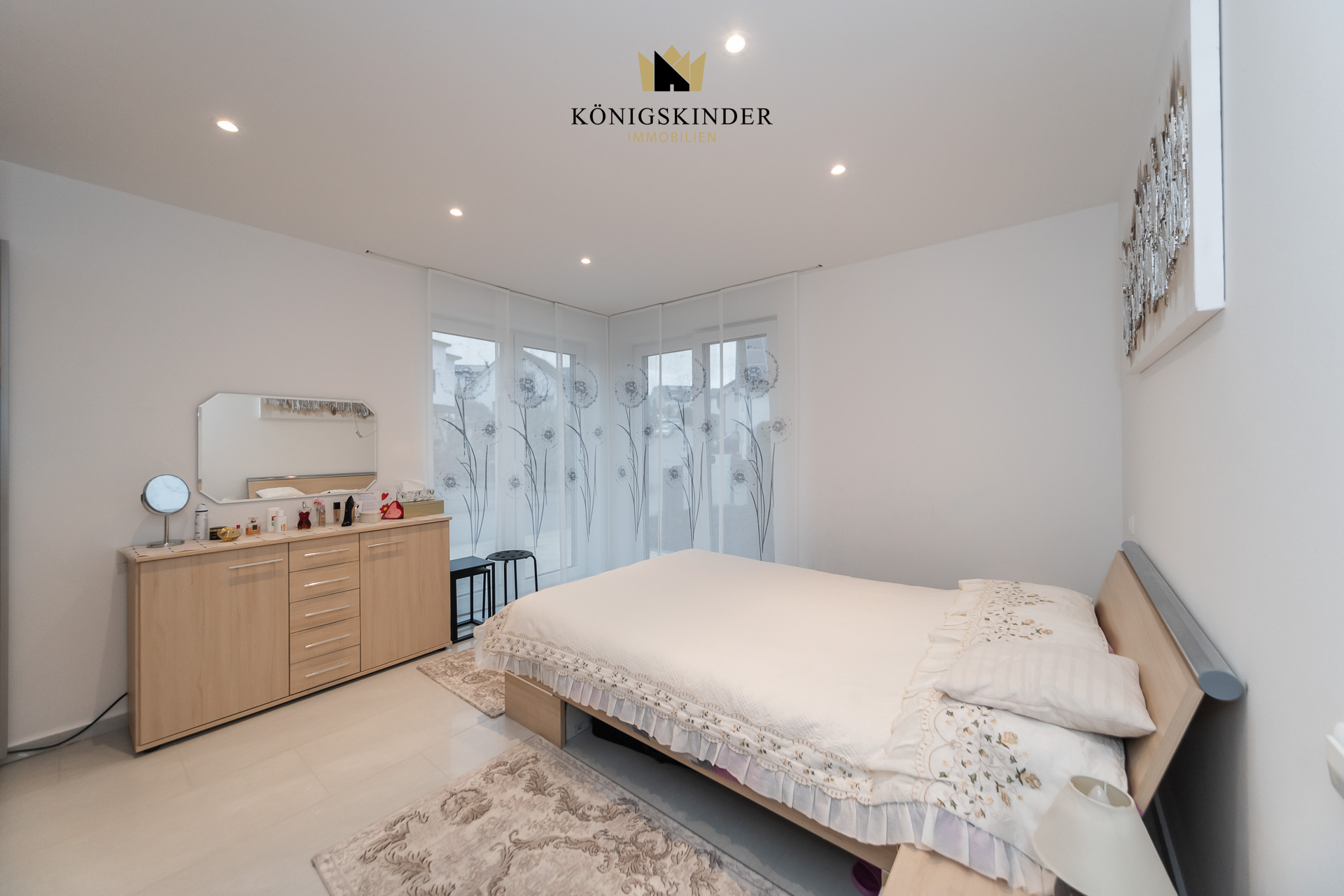 Das Obergeschoss begeistert mit drei weiteren Zimmern, darunter ein Schlafzimmer mit separatem Ankleideraum, einem Balkon sowie einem weiteren komfortablen Badezimmer. Große, überwiegend bodentiefe Fenster mit dreifacher Verglasung sorgen in allen Räumen für ein lichtdurchflutetes Wohnambiente.