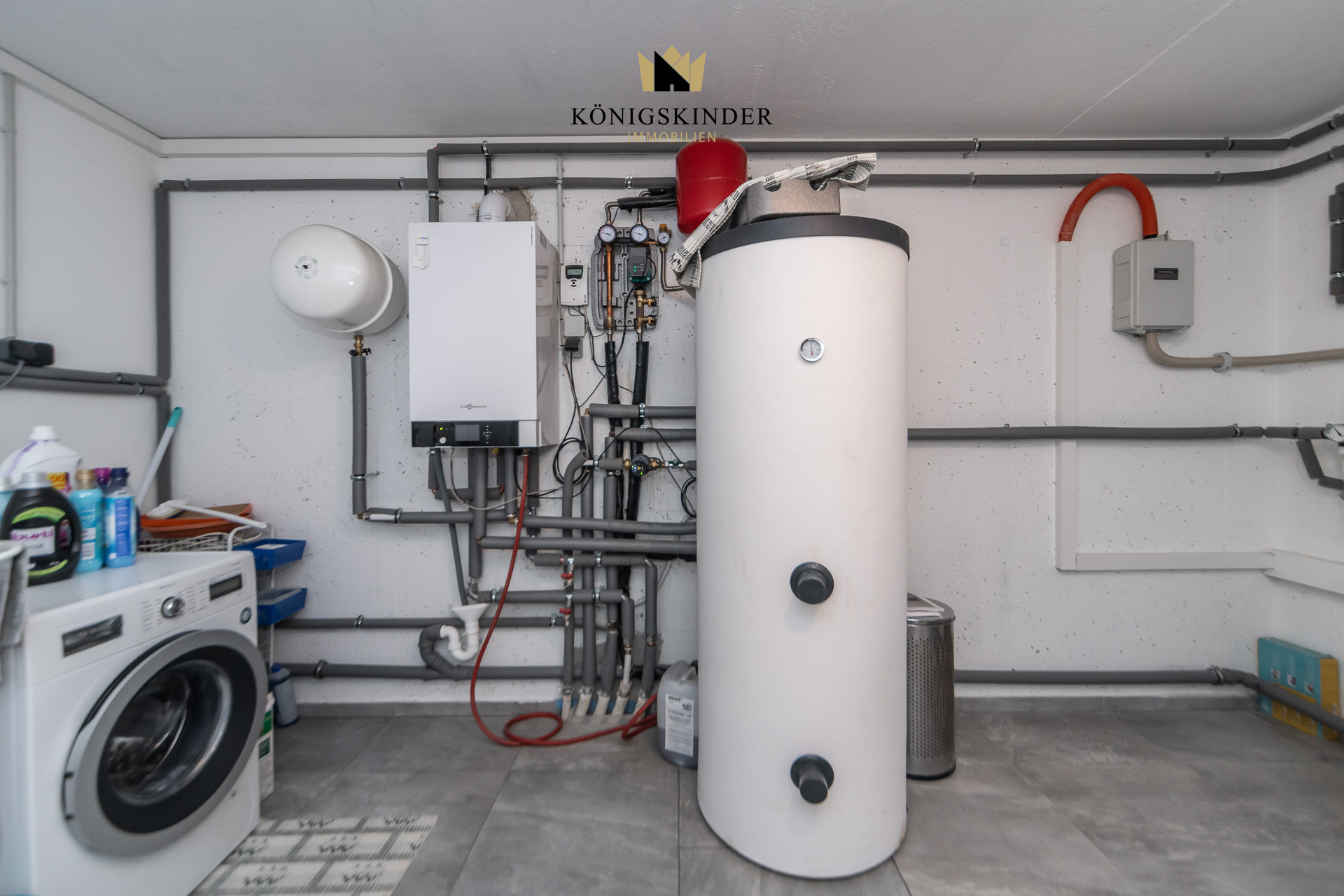 Die Ausstattung lässt keine Wünsche offen: Elektrische Aluminium-Rollläden, eine in allen Räumen individuell steuerbare Fußbodenheizung sowie eine effiziente Gasheizung in Kombination mit Solarthermie und 400-Liter-Speicher sorgen für zeitgemäßen Wohnkomfort und Energieeffizienz.