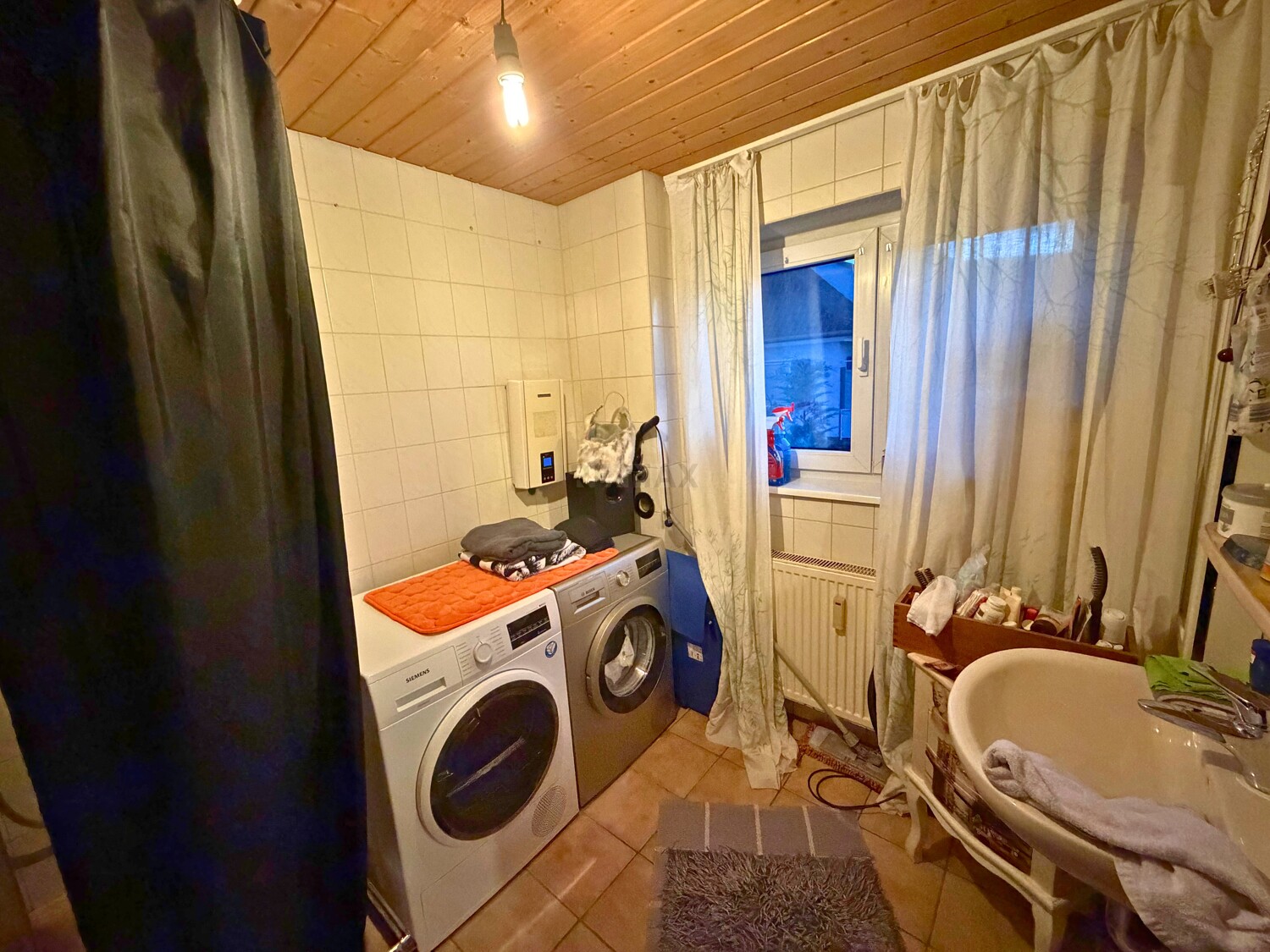 Die Wohnung verfügt über eine Einbauküche, die sämtliche notwendigen Geräte umfasst und funktional in den Wohnalltag integriert ist. Besonders praktisch: Es gibt ein separates WC sowie ein Badezimmer, das Platz für Waschmaschine und Trockner bietet – ein echtes Plus an Komfort.