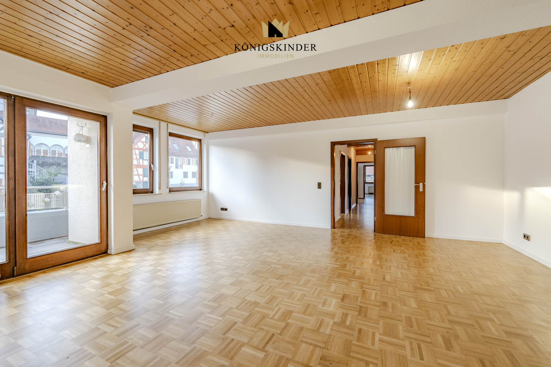 Der straßenseitige Vorderbau aus dem Jahr 1900 ist ein charmanter Blickfang im historischen Ortsbild. Repräsentative Gewerbeflächen im Erdgeschoss und ein etabliertes Atelier im Obergeschoss unterstreichen die Qualität der Lage. Die Dachgeschosswohnung mit Zugang zur Dachterrasse liegt ungestört und bietet Ausblicke auf den hübschen Ortskern.