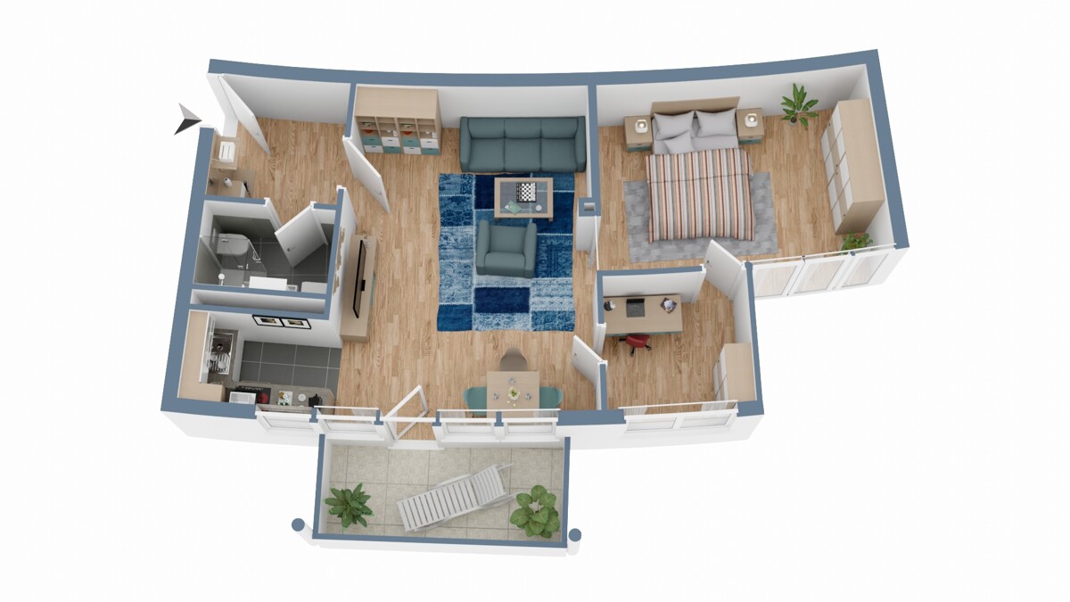 Ideal für Paare oder kleine Familien, die Wert auf einen zentralen, offenen Wohnbereich legen der doch auch Rückzugsmöglichkeiten bietet. Mieteinnahmen im Jahr: € 6.960,00