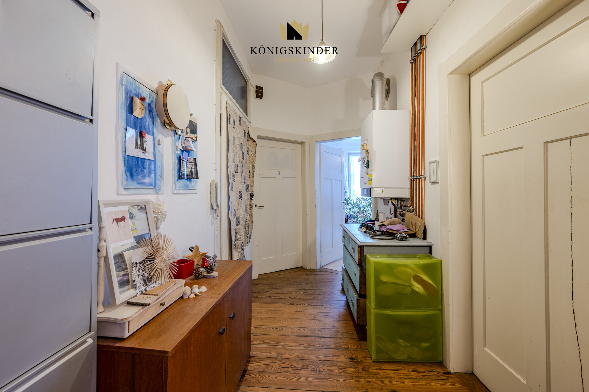 Die drei Zimmer sind optimal geschnitten und bieten ein großzügiges, luftiges Wohngefühl. Teilweise sind noch originale Holzböden erhalten, die den historischen Charme der Wohnung unterstreichen. Die ca. 3 Meter hohen Decken, teils mit originalem Stuck, verleihen den Räumen eine besondere Eleganz und Großzügigkeit. Ergänzend dazu ist in weiteren Bereichen Laminat verlegt. Die hohen Altbaudecken verleihen den Räumen ein großzügiges und angenehmes Wohngefühl. In den Wohnräumen ist ein gepflegter Laminatboden verlegt.