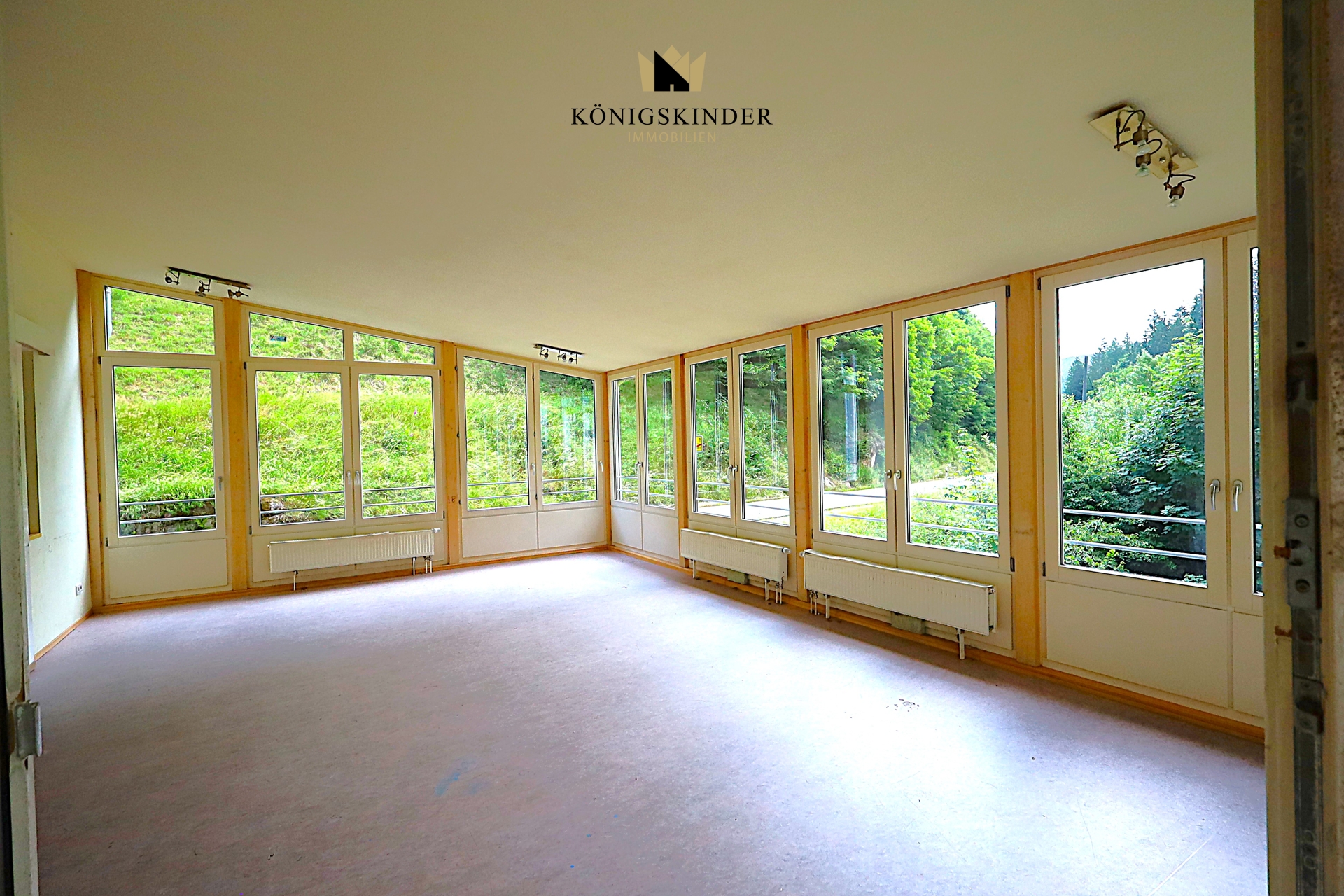 Blickfang vor dem Klostergeschützt eingebettet im Tal......umgeben vom herrlichen GrünDas könnte Ihr zukünftiges...Restaurant sein......mit lichthellem Wintergarten......in allen Iahreszeiten...Der Ort für wunderbares ZusammenseinDie Küche müsste noch eingebaut werdenBeispielhaft eines der Zimmer......das war mal ein Büroraumbeispielhaft ein Bad...hier geht's zum......mittealterlichen KellerVon der Terrasse im 1. Obergeschoss...hat man einen freien Blick ins Tal...und zur Südterrasse vor dem Wintergarten... der Dachraum für viele MöglichkeitenFreizeitzimmer, Versammlungsraum, Spielezimmer...Darüber der ausbaufähige......Spitzboden - alles schon vorbereitetDas klösterliche Schmuckstückbarrierefreier Zugang zur Straße