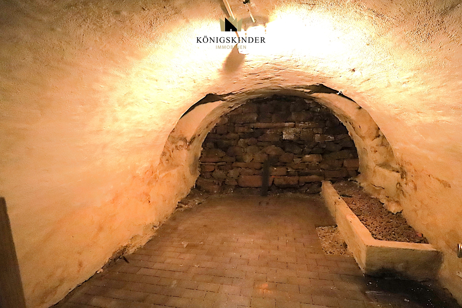 Wie schon erwähnt besteht der Keller aus über einem m starken Sandstein-Mauerwerk mit einem neueren Anbau.