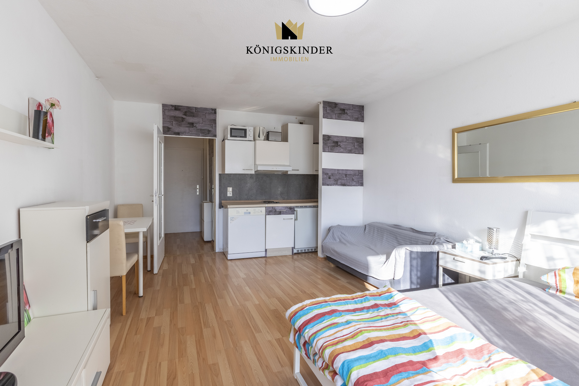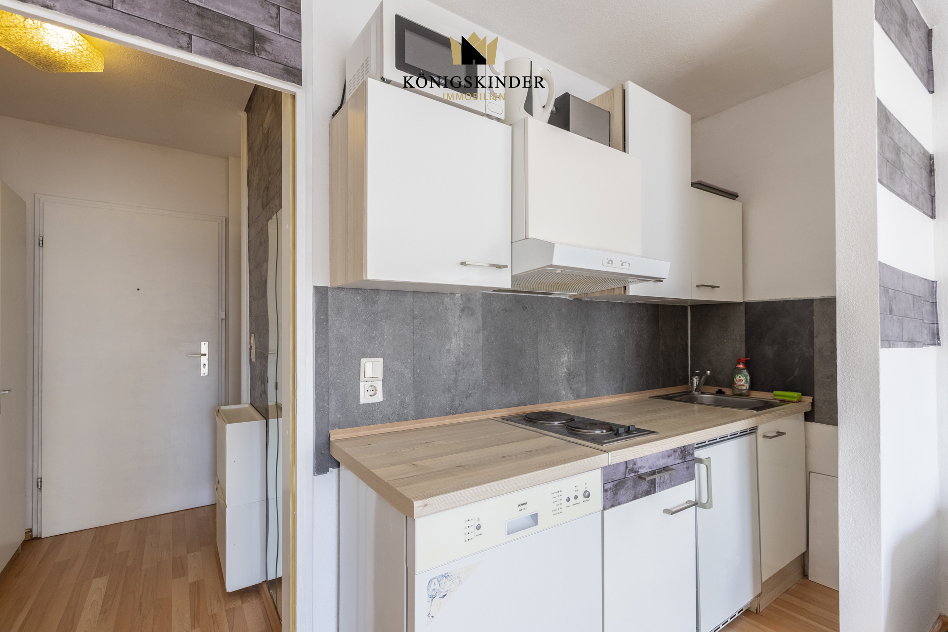 Der helle Wohn- und Schlafbereich lädt zum Wohlfühlen ein und lässt sich flexibel einrichten – hier können Sie Ihre eigenen Wohnideen verwirklichen. Die Küchenzeile ist funktional gestaltet und bietet Platz für alles, was man für den täglichen Gebrauch benötigt. Das gepflegte Badezimmer ist mit einer praktischen Duschbadewanne ausgestattet und sorgt für Komfort im Alltag.