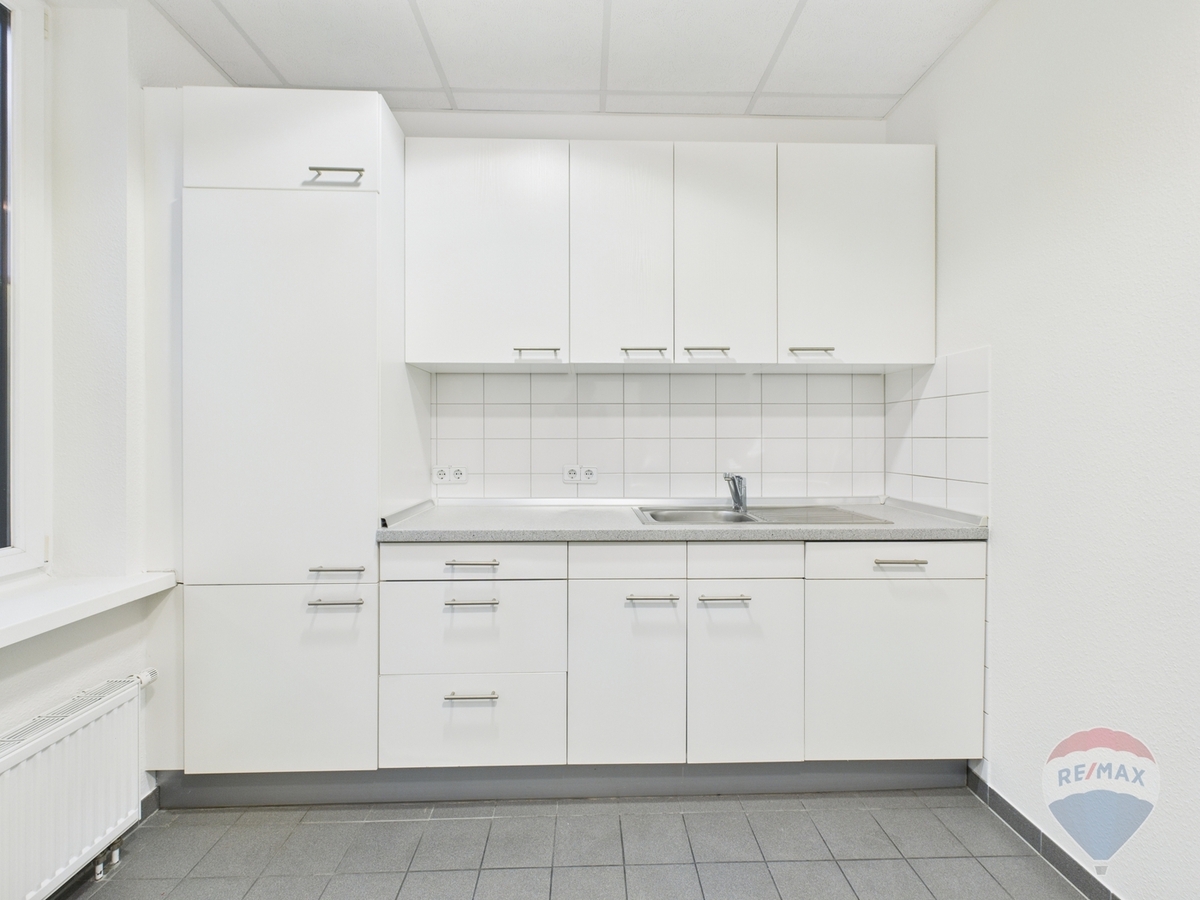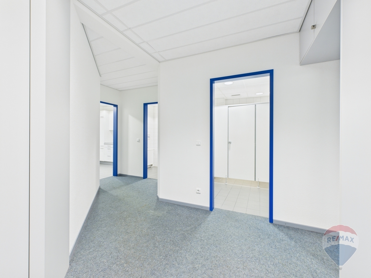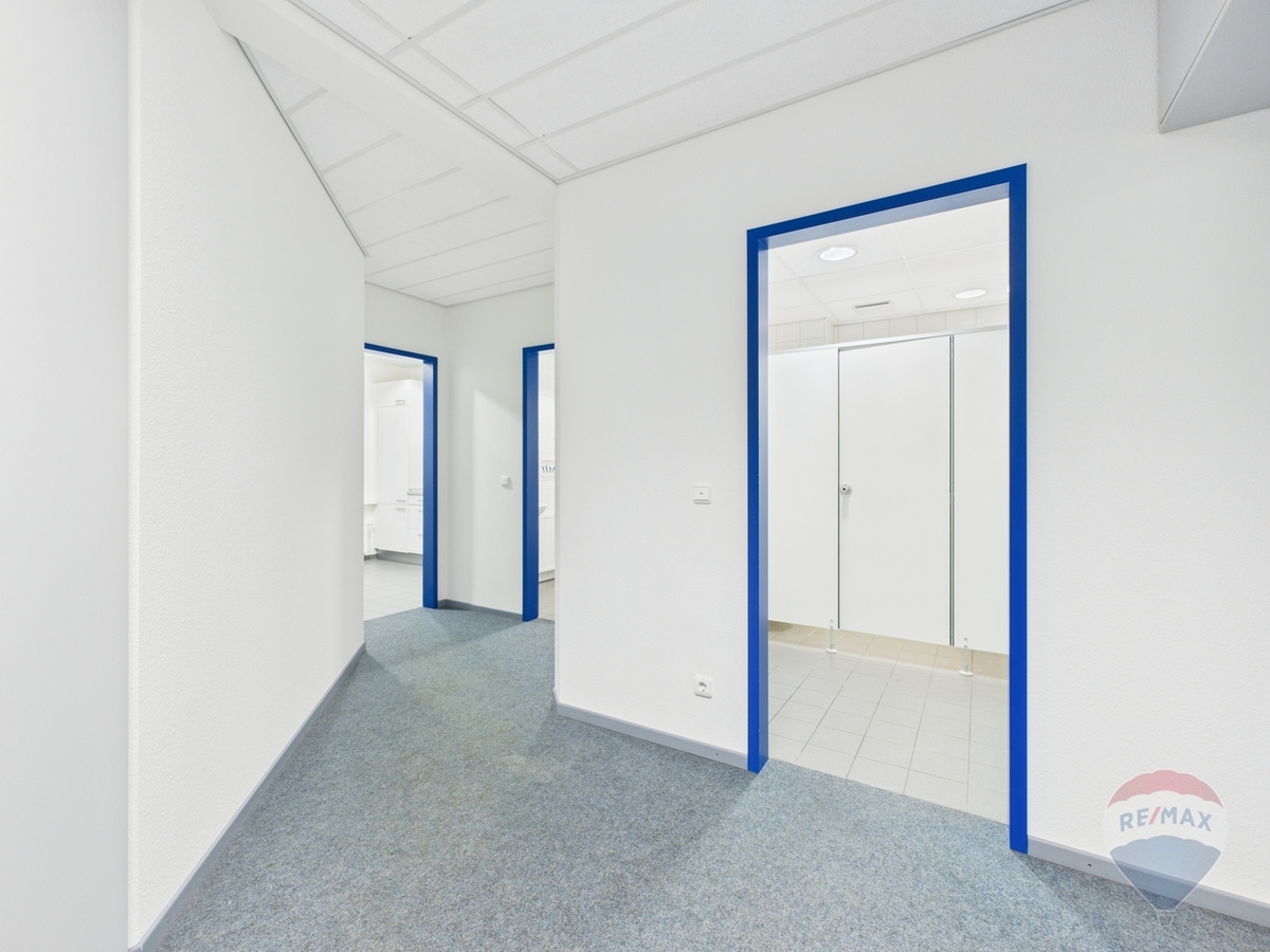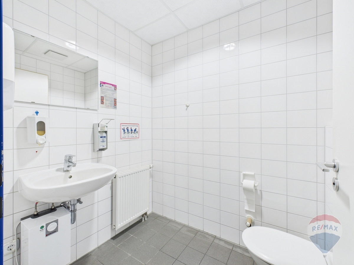 Eine Teeküche sorgt für komfortable Pausen, während getrennte Damen- und Herren-WCs den Arbeitsalltag abrunden. Beheizt wird die Fläche über Fernwärme, die Warmwasserbereitung erfolgt über Durchlauferhitzer.