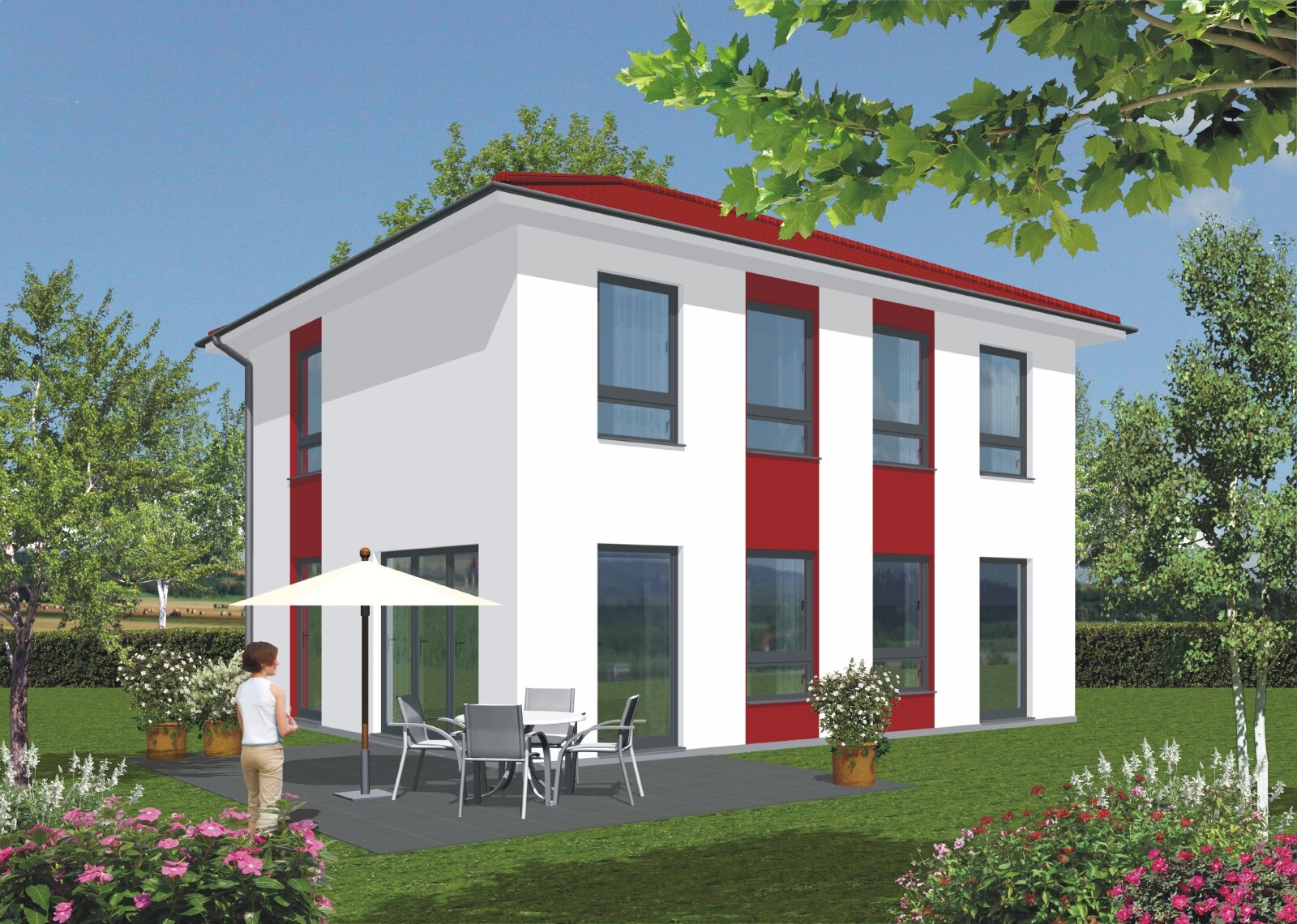 Der genannte Preis bezieht sich auf eine massive Bauweise auf einer Grundplatte. Das Haus erhält eine Wärmedämmfassade mit mineralischem Putzauftrag.