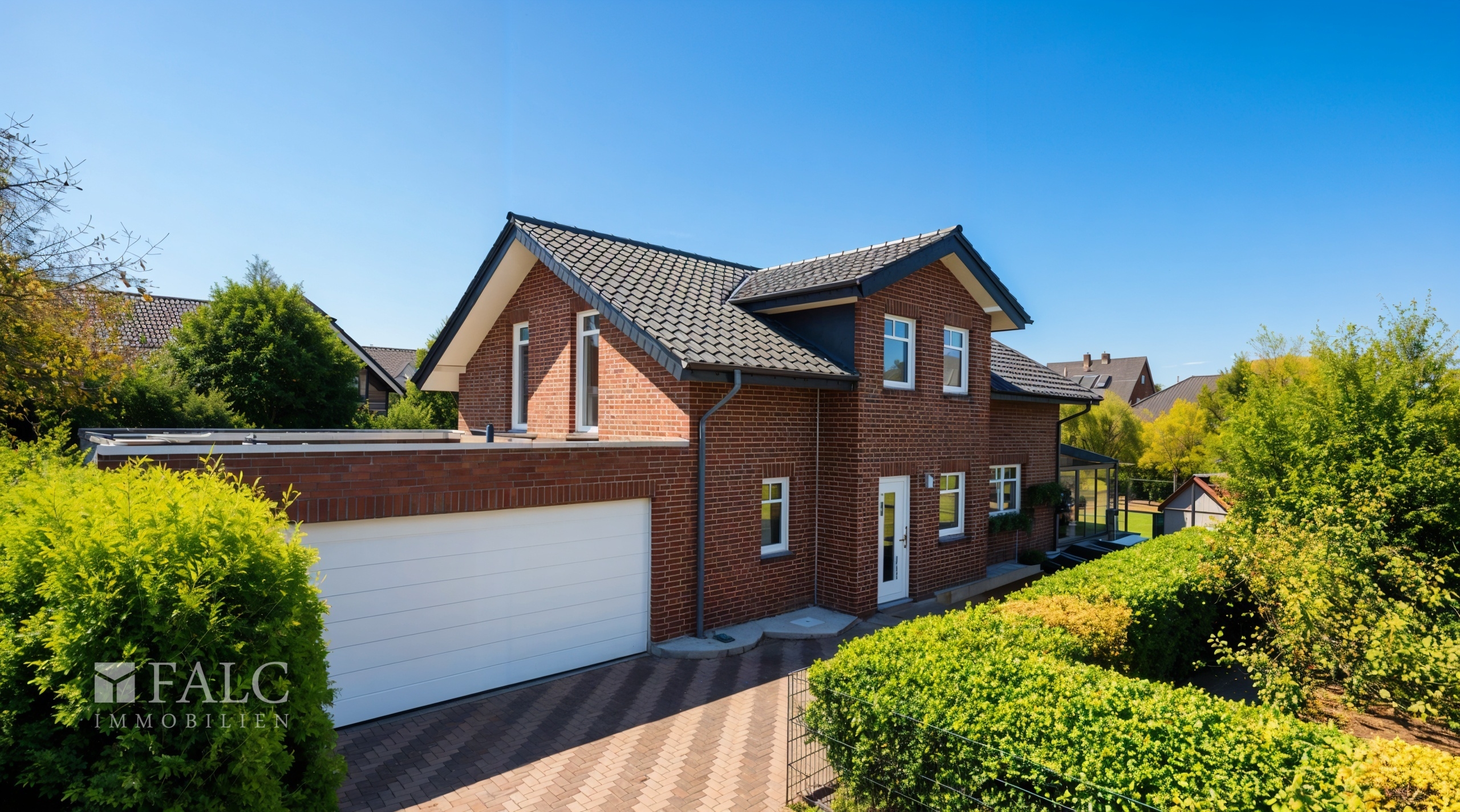 Außenanlage & Garage • Direkt ans Haus angeschlossene Doppelgarage (33,19 m²) • Große Einfahrt mit mehreren möglichen Außenstellplätzen • Pflegeleichter, großer Garten hinter dem Wintergarten – viel Privatsphäre • Hochwertiges Erscheinungsbild durch granitgeprägte Bauweise