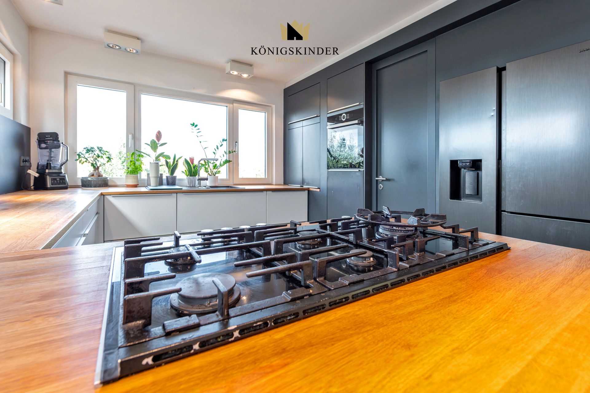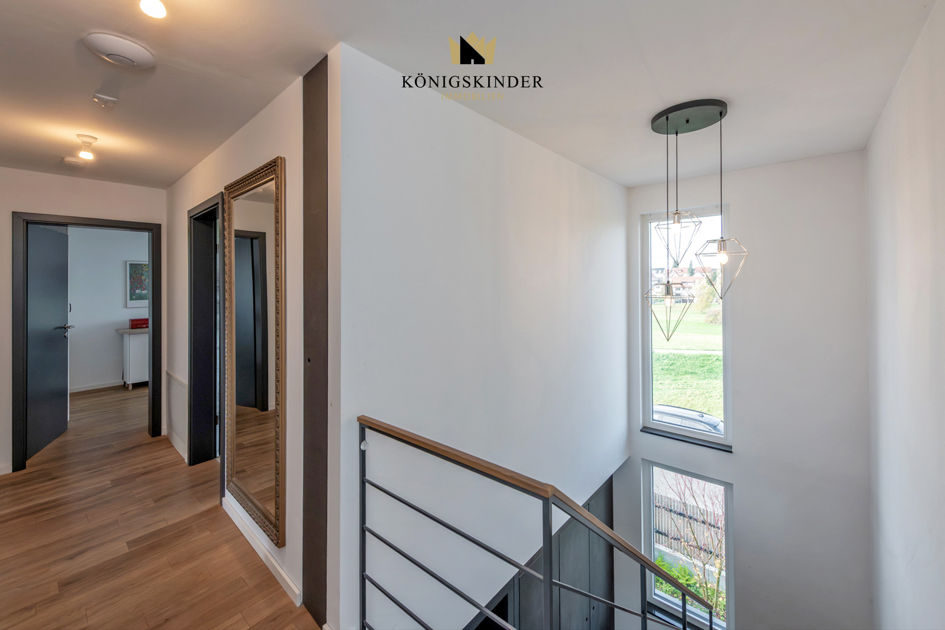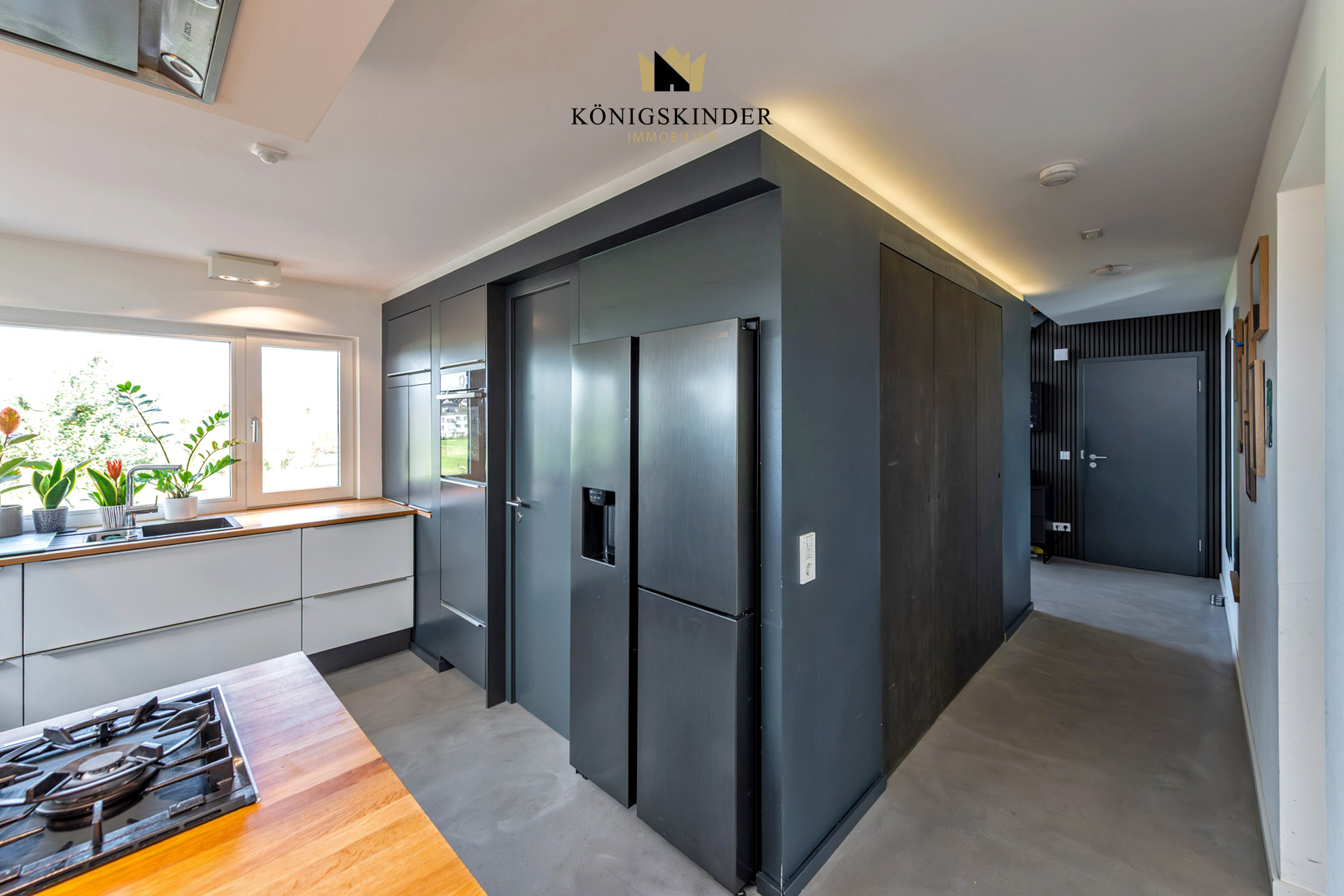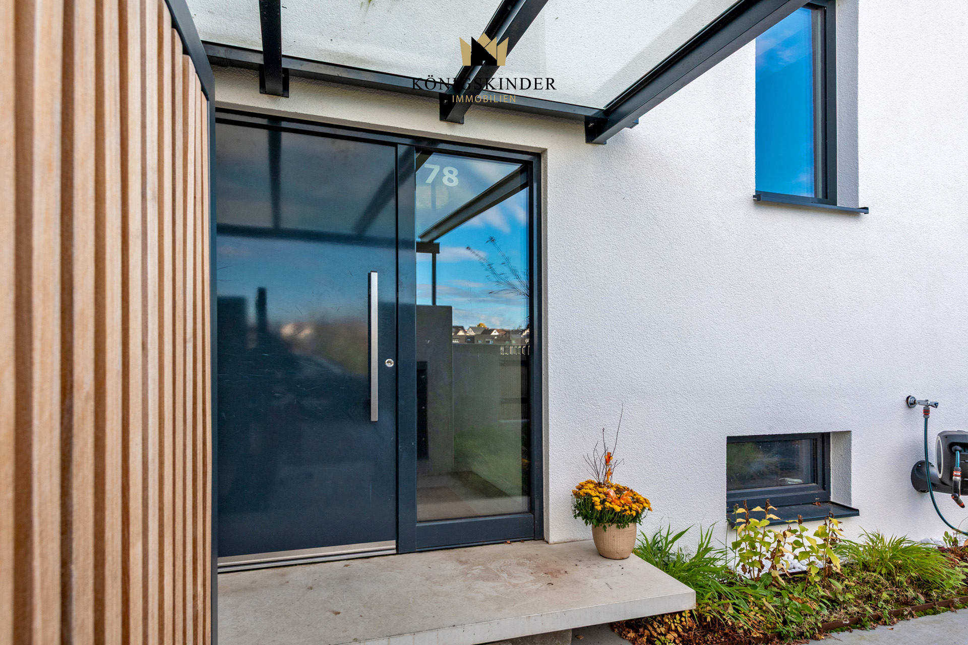 Hochwertige Materialien, smarte Haustechnik und eine Fußbodenheizung sorgen für Komfort auf höchstem Niveau. Draußen wartet die Gartenoase mit Südwestterrasse, Pergola und unverbaubarem Blick – ein Rückzugsort, der Entspannung und Naturverbundenheit perfekt vereint. Die Garage, zwei Stellplätze und eine E-Auto-Wallbox runden das Angebot ab.
