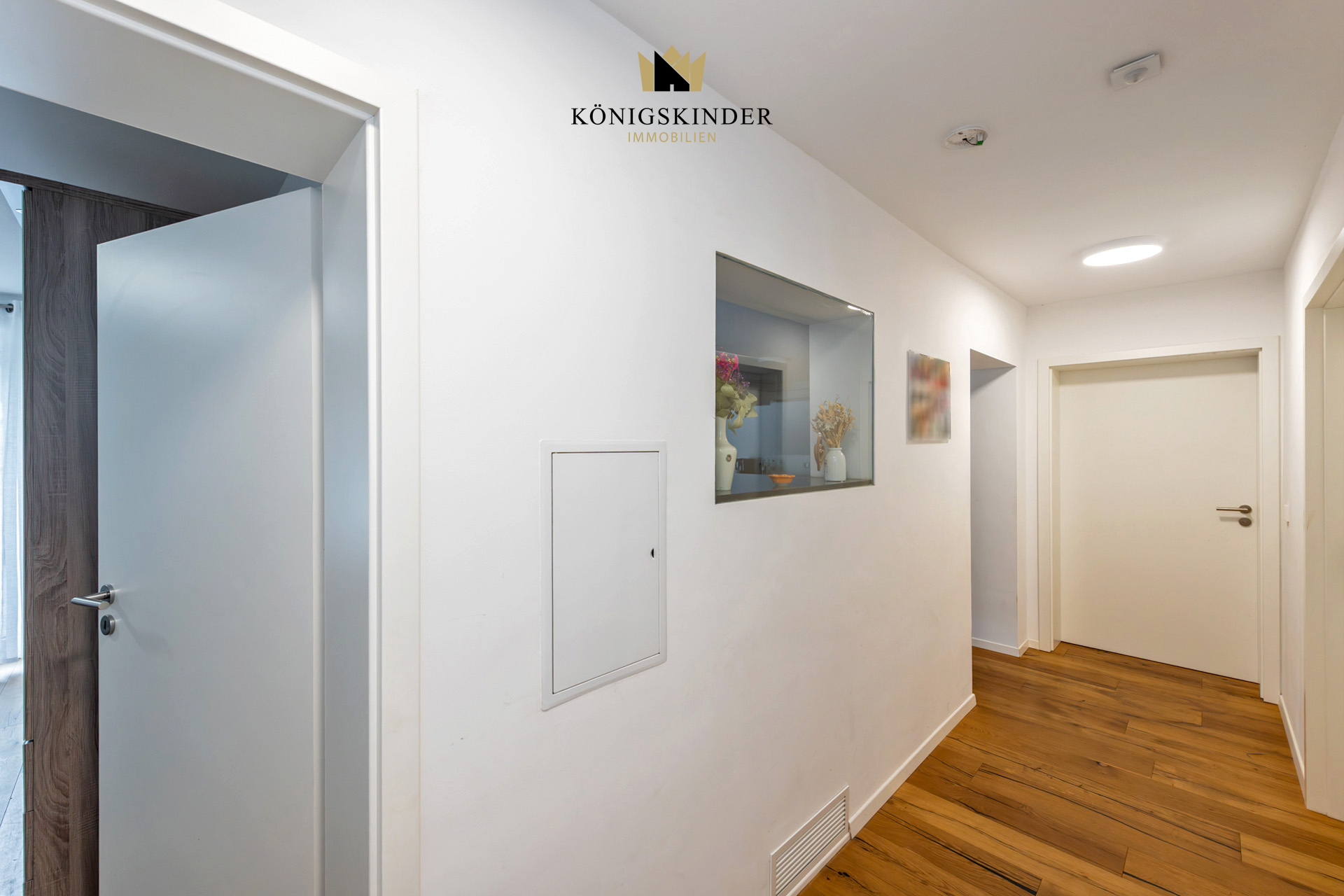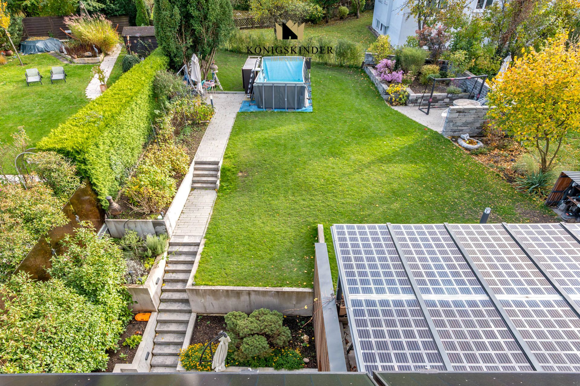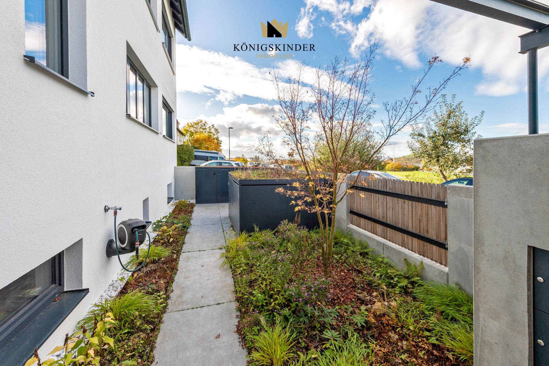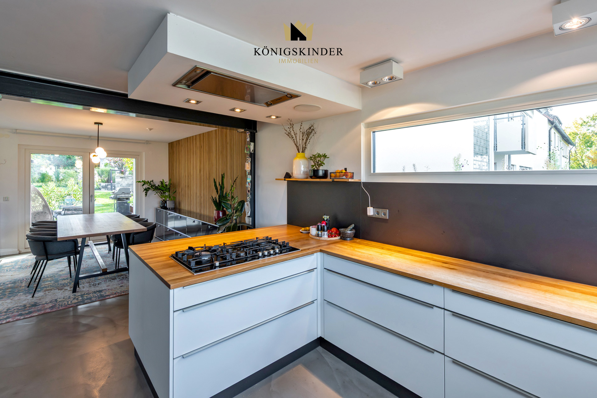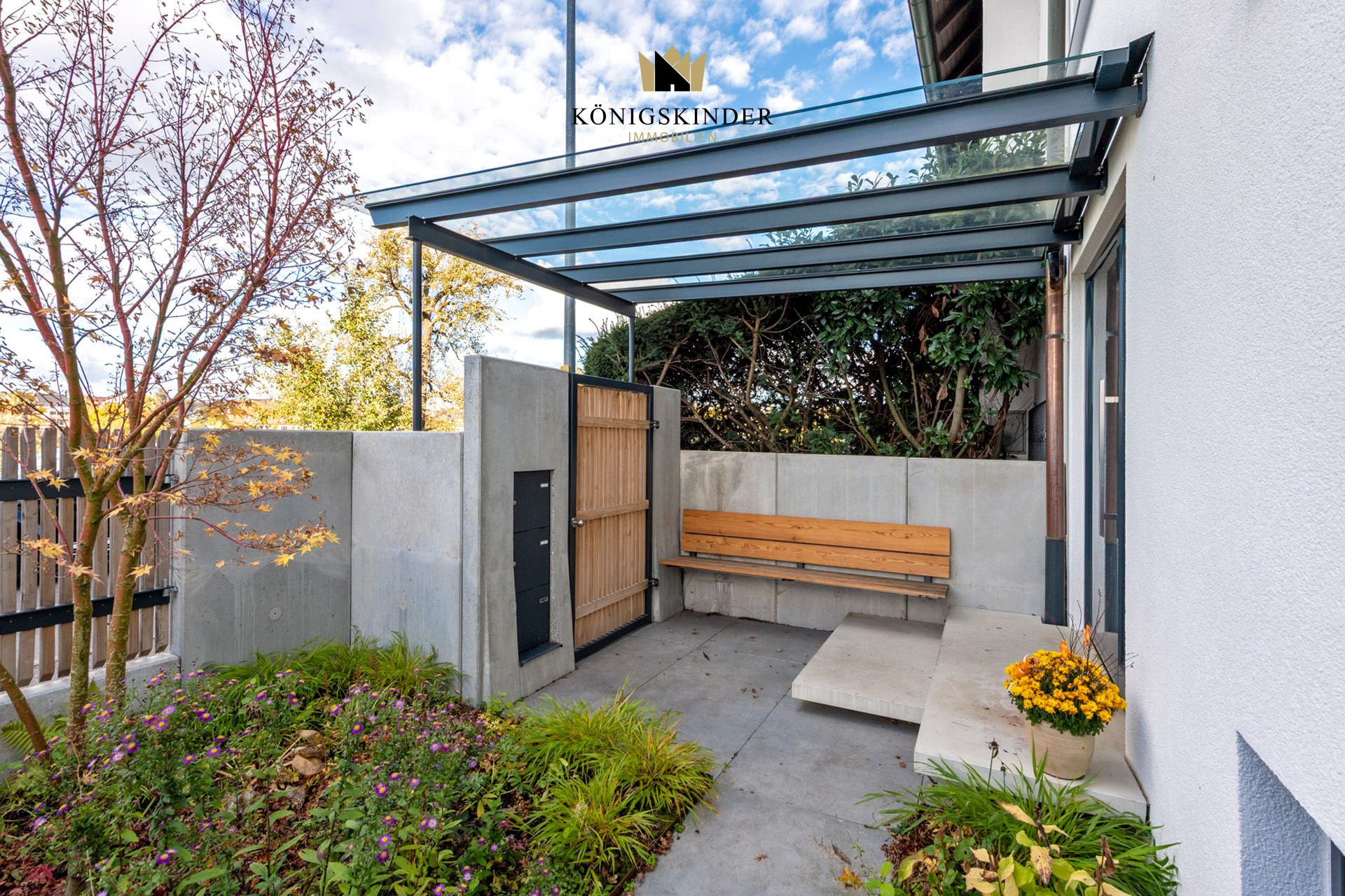 Hochwertige Materialien, smarte Haustechnik und eine Fußbodenheizung sorgen für Komfort auf höchstem Niveau. Draußen wartet die Gartenoase mit Südwestterrasse, Pergola und unverbaubarem Blick – ein Rückzugsort, der Entspannung und Naturverbundenheit perfekt vereint. Die Garage, zwei Stellplätze und eine E-Auto-Wallbox runden das Angebot ab.