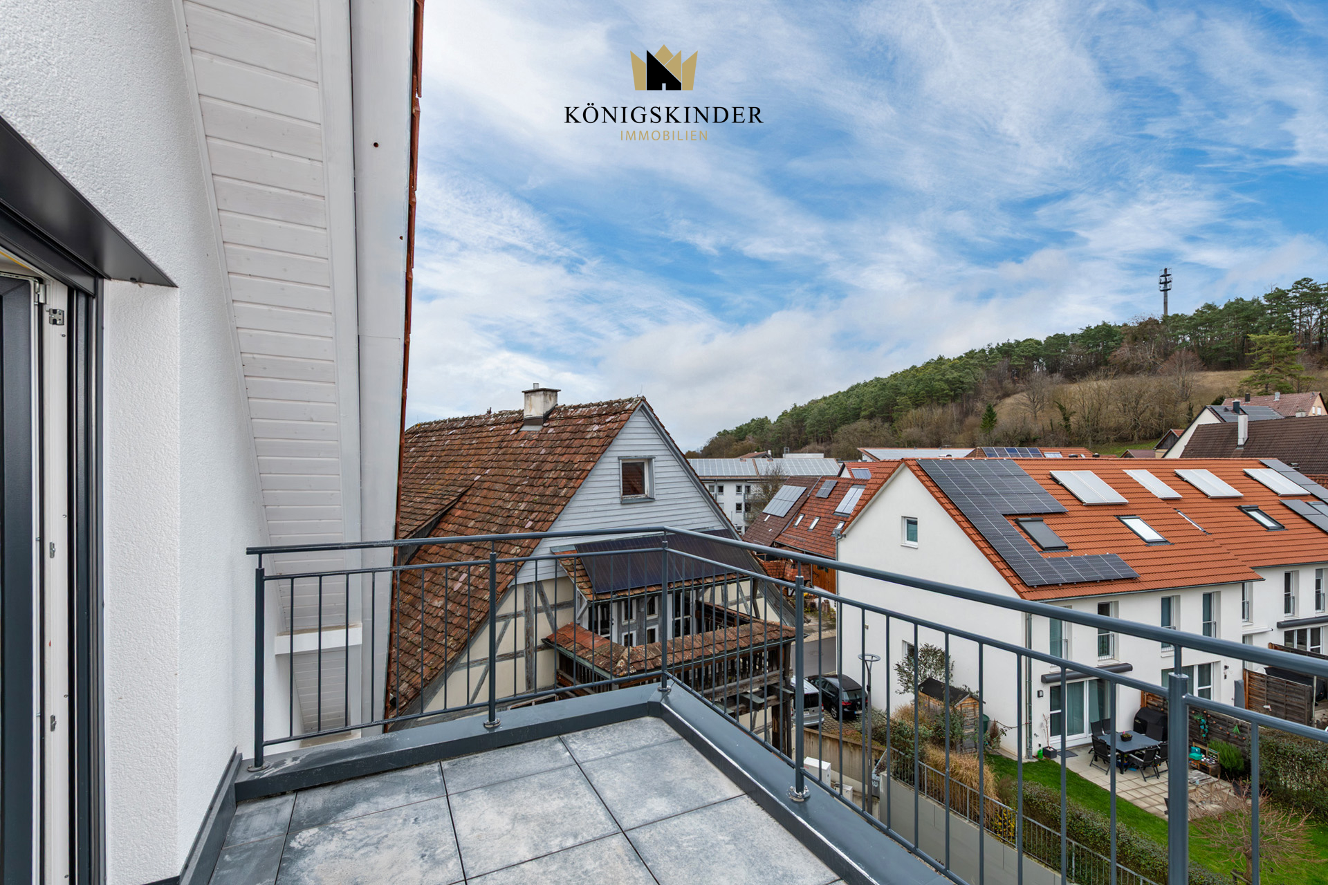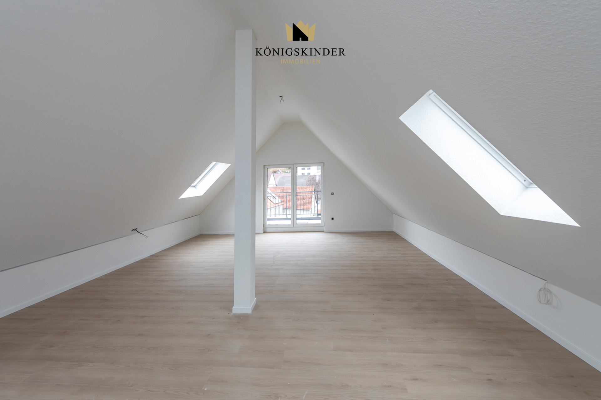 Wohnung W7 – Dachgeschoss: 559.000.- EUR zzgl. 25.000.- EUR Stellplatz Die Dachgeschosswohnung W7 bietet mit ca. 96 m² Wohnfläche ein großzügiges und zugleich besonderes Raumgefühl. Sie verfügt über einen offenen Wohn-, Koch- und Essbereich mit integriertem Schlafbereich, ein weiteres Schlafzimmer, einen Arbeitsraum, 2x Duschbad mit WC, Abstellfläche sowie eine Kombination aus Balkon und Loggia, die anteilig in die Wohnfläche einfließen. Ergänzt wird die Wohnung durch einen Abstellraum im Untergeschoss mit ca. 5,7 m².