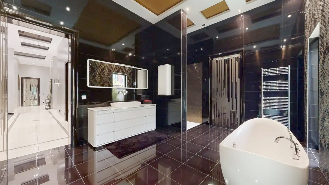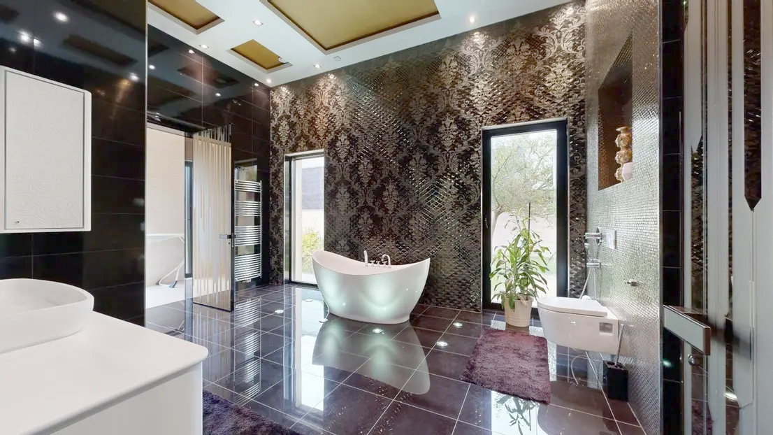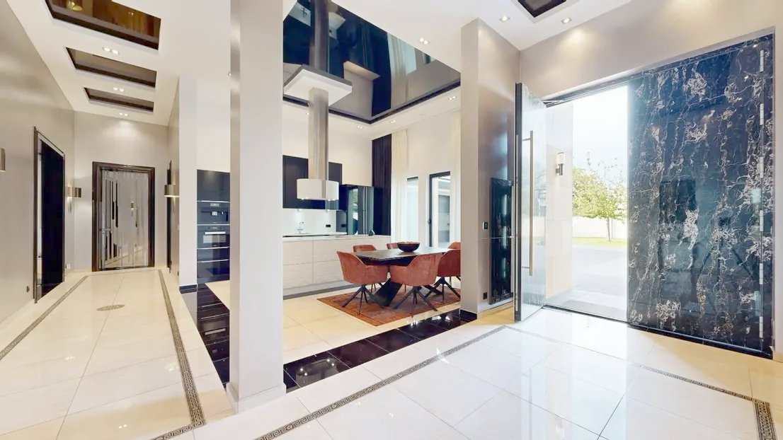 ++ Italienische Designertüren des renommierten Herstellers Longhi verleihen dem Haus eine besondere Note. ++ Die Böden und Wandflächen sind mit exklusiven spanischen Fliesen des Herstellers Peronda ausgestattet, die durch ihre außergewöhnliche Qualität und ihr stilvolles Design überzeugen. ++ Das Haus verfügt über 3 vollwertige Badezimmer, ausgestattet mit hochwertigen Duschen und WCs. Das Master-Bad offeriert zusätzlich eine freistehende, luxuriöse Badewanne für besonderen Komfort. ++ Die maßgefertigte Eingangstür aus edlem Marmor (Nero Portoro) setzt bereits beim Betreten der Villa ein eindrucksvolles Statement.