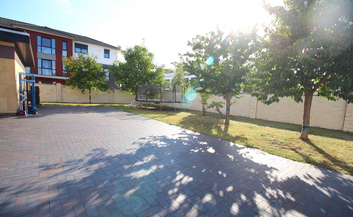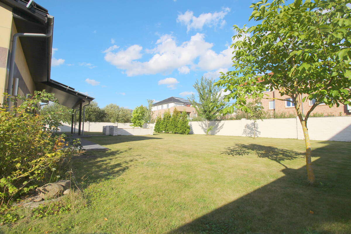 Auf dem großzügigen 2.000 m² großen Eigentumsgrundstück gibt es neben reichlich Platz für Entspannung und Spieloptionen für die Kleinen, auch ausreichend Spielraum für zusätzliche Bauvorhaben, da die Grundflächenzahl (GRZ) noch nicht ausgeschöpft ist. Die Immobilie ist durch eine massive Galabaumauer vollständig umzäunt und hochwertig gestaltet mit keramischem Klinkerpflaster. Ein gepflegter Kräutergarten, zwei große Kirschbäume, ein Pflaumenbaum sowie verschiedene Beerensträucher laden zum Genießen und Verweilen ein. Die Bewässerung erfolgt bequem über eine Grundwasserpumpe mit einem automatischen Bewässerungssystem.