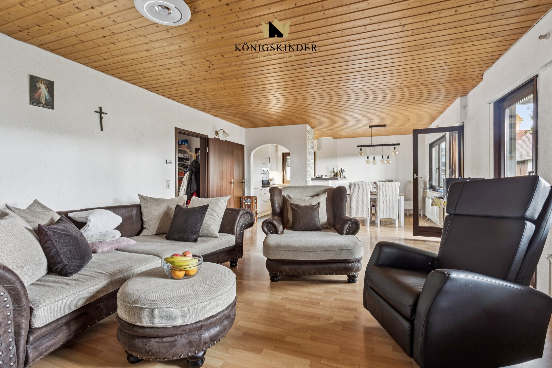 Im Erdgeschoss ist die Inhaberwohnung eingerichtet mit Küche, Wohn/Essbereich mit Zugang zur Terrasse und Garten, Bad, Gäste-WC und 3 Schlafzimmern.