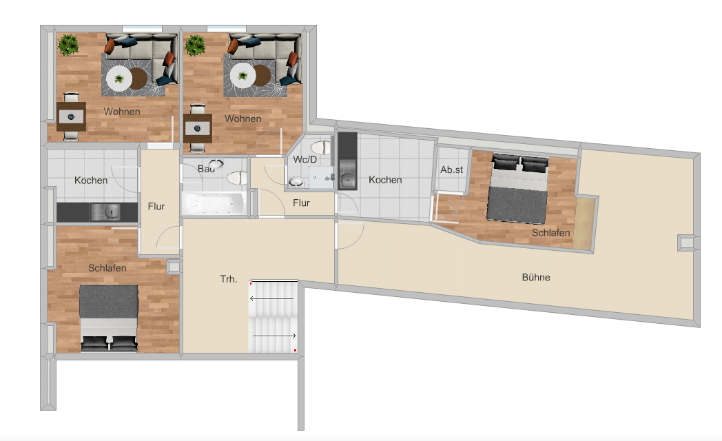 Weiterhin besteht die Möglichkeit zum Ausbau einer weiteren Wohneinheit im Dachgeschoss.