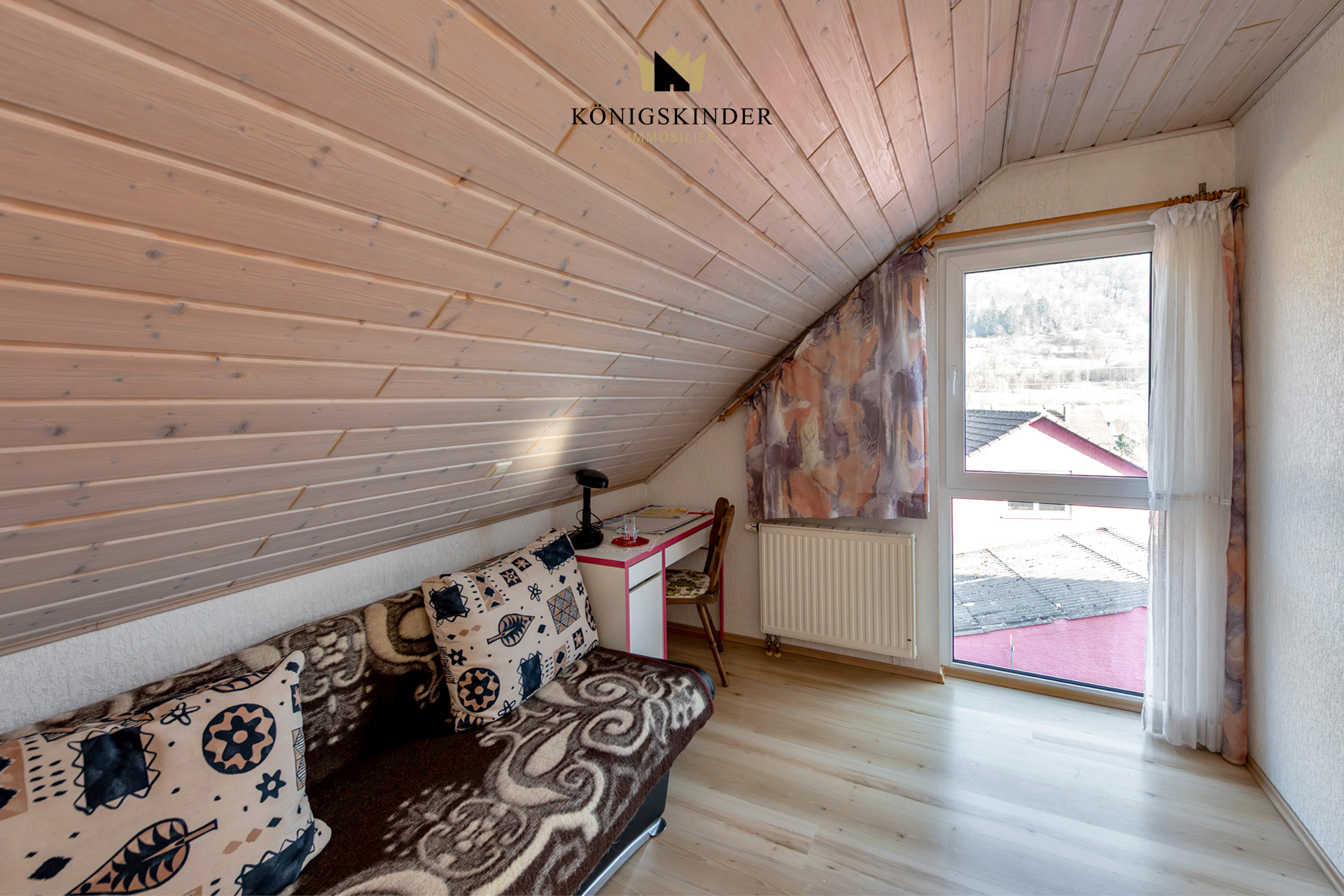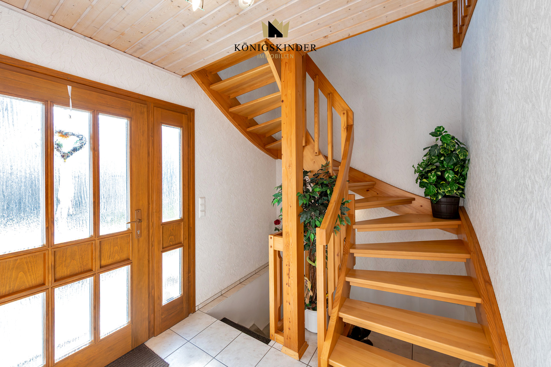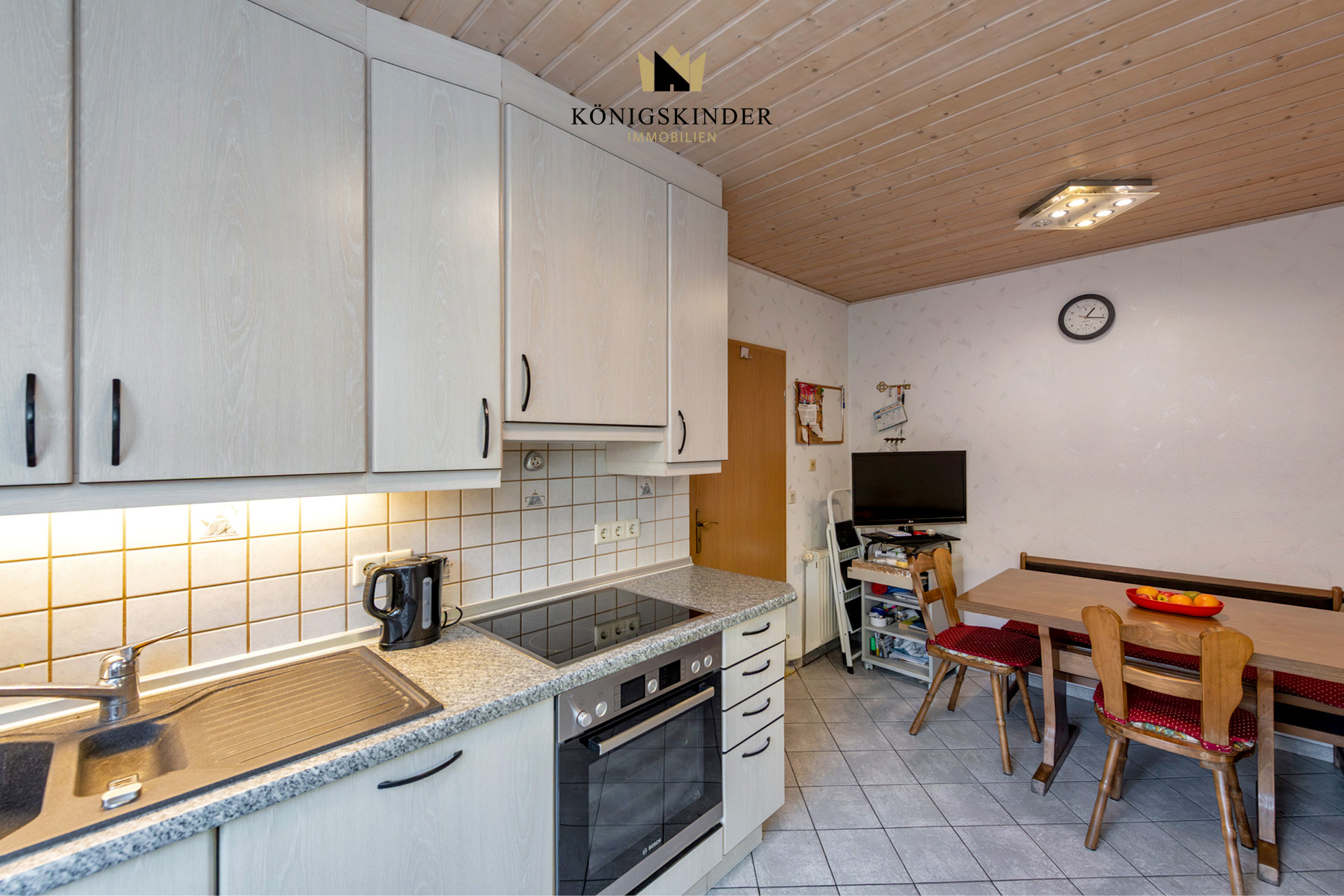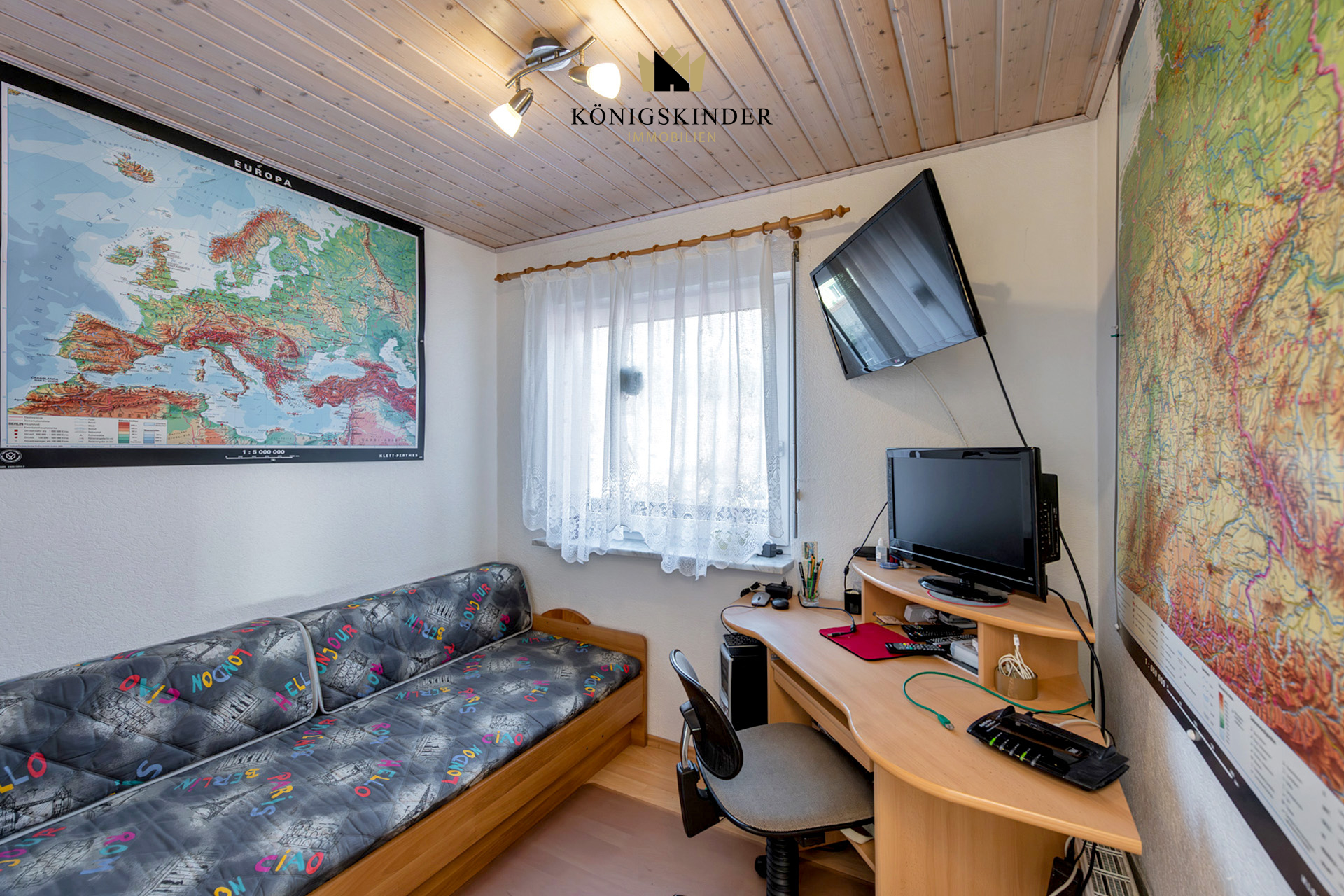 Barrierearmes Einfamilienhaus mit Einliegerwohnung, Garage & moderner Energietechnik – Wohnen mit Zukunft Willkommen in einem Zuhause, das Großzügigkeit, Flexibilität und nachhaltige Technik harmonisch vereint. Dieses attraktive Einfamilienhaus in HAAS-Fertigbauweise (Baujahr 1996) überzeugt durch seine durchdachte Raumaufteilung, barrierearme Elemente und eine separat nutzbare Einliegerwohnung – ideal für Mehrgenerationenwohnen, Homeoffice oder zusätzliche Mieteinnahmen. Bereits beim Betreten spürt man die angenehme Wohnatmosphäre. Der fantastische Wohn-Essbereich mit fast 40 m² bildet das Herzstück des Erdgeschosses. Große Fensterflächen schaffen eine helle, freundliche Umgebung und führen direkt auf die sonnige Terrasse – perfekt für entspannte Stunden im Freien. Ein echtes Highlight ist der ästhetische Kaminofen im Kachelofen-Stil mit gemütlicher Sitzbank. Der neue Einsatz sorgt für wohlige Wärme und ein stilvolles Ambiente. Die hochwertige Wohnküche der Marke NUKO bietet nicht nur viel Platz zum Kochen und Genießen, sondern auch einen direkten Zugang zum Balkon. Ergänzt wird das Erdgeschoss durch: ein modern ausgestattetes Gäste-WC mit Waschtisch, Pissoir und WC sowie ein vielseitig nutzbares Zimmer als Büro, Gäste- oder Hobbyraum Im Obergeschoss erwarten Sie zwei helle Kinderzimmer, ein großzügiges Elternschlafzimmer mit separater Ankleide und Split-Klimaanlage und eine geräumige Diele. Das 2022 erneuerte Tageslichtbad begeistert mit Eckbadewanne, Dusche, Pissoir, WC und Waschtisch – modern, stilvoll und komfortabel. Vom Obergeschoss aus gelangen Sie zudem auf den großzügigen Balkon, der zusätzliche Lebensqualität bietet. Die Einliegerwohnung mit ca. 30 m² lässt sich mit eigenem Eingang realisieren und verfügt über ein barrierearmes Bad. Ideal für Angehörige, Gäste, Pflegepersonal oder zur Vermietung. Ausstattung & Technik – nachhaltig in die Zukunft Dieses Haus überzeugt nicht nur optisch, sondern auch technisch: Echtholzparkett (8 mm Eiche) in den Wohnräumen, Fassade neu gestrichen (2017), zwei Split-Klimaanlagen für angenehmes Raumklima, Moderne 12 kW Wärmepumpe (2025) und Gaszentralheizung kombiniert mit Photovoltaikanlage (9 Module) und 500-Liter-Pufferspeicher, Wallbox (2023) mit PV-Steuerung, Regenwasserzisterne mit 16.000 Litern, Dach mit Zwischensparrendämmung, das Untergeschoss wurde mit dem innovativen ISOTON-Bausystem errichtet – eine effiziente, langlebige Alternative zu klassischem Mauerwerk. Die großzügige Garage (10,2 × 3,6 m) mit elektrischem Torantrieb und Anschlussraum bietet reichlich Platz für Ihre Fahrzeuge. Hof, Garten und Gerätehütte werden gemäß WEG-Anteil genutzt. Ein gepflegtes, vielseitiges Einfamilienhaus mit Einliegerwohnung, moderner Energietechnik und hohem Wohnkomfort. Ob Familie, Mehrgenerationenwohnen oder zukunftssichere Investition – hier finden Sie ein Zuhause, das heute begeistert und morgen überzeugt.