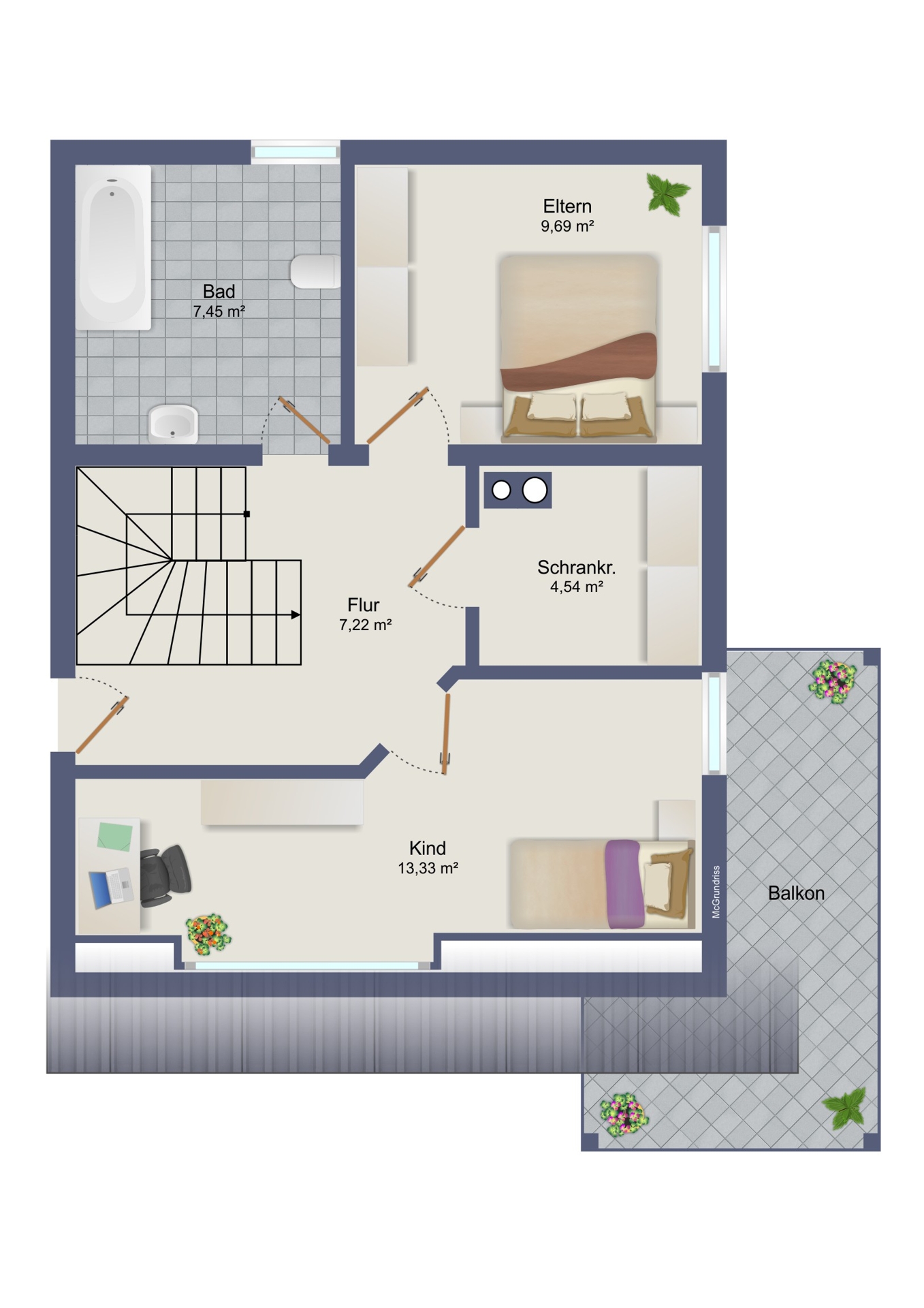 Ausgestattet mit Dusche, französischem Balkon, Waschbecken, WC , verbindet es Komfort mit zeitgemäßer Gestaltung. Ergänzt wird das Raumangebot durch einen kleinen Speicher im Dachbereich – ideal als Stauraum.