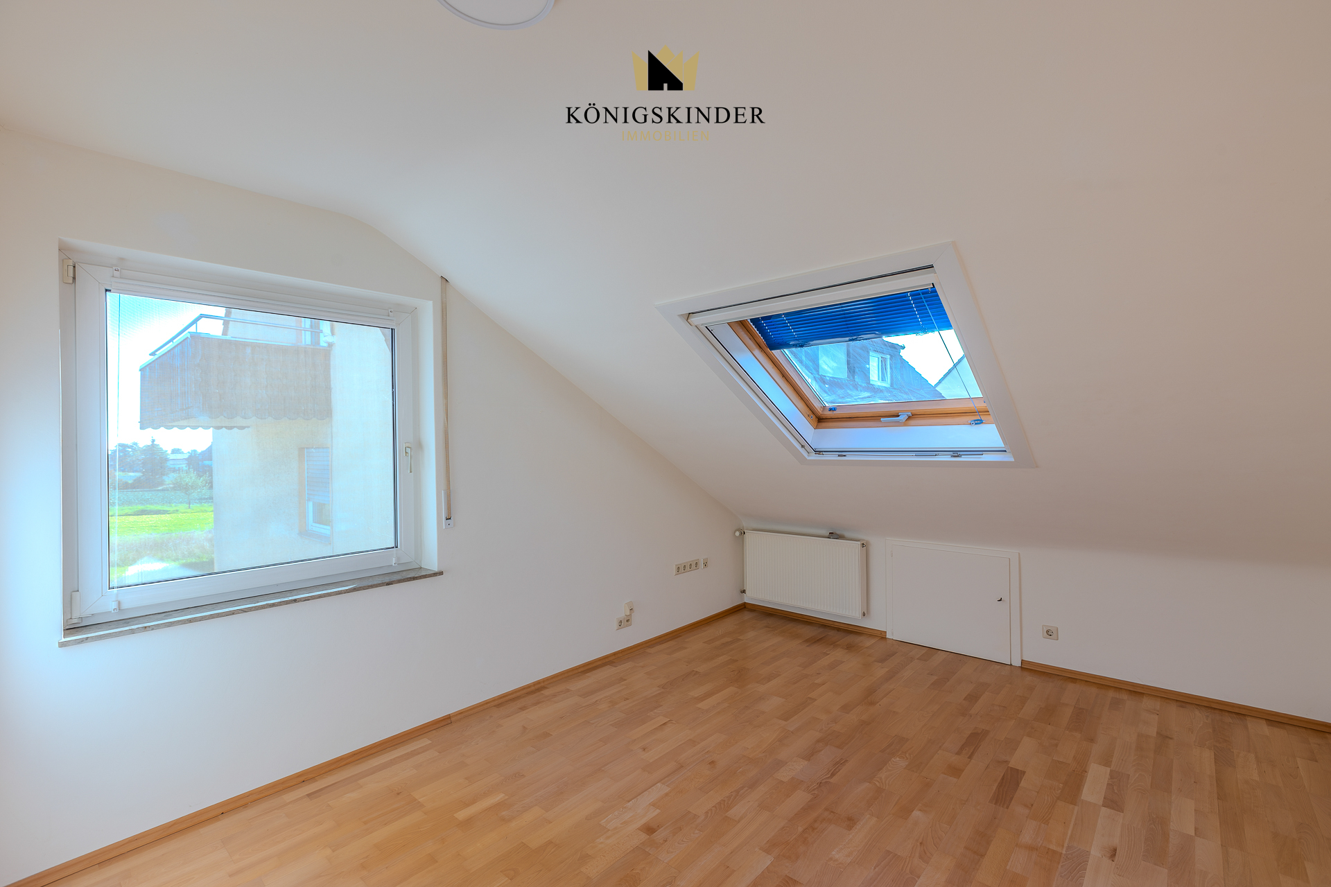 Im Obergeschoss befinden sich 2 weitere Zimmer und 1 Abstellraum, der auch als Büro genutzt werden könnte. sowie ein WC. Von hier gelangen Sie unmittelbar auf die großzügige Dachterrasse mit unverbauter Fernsicht – der ideale Ort zum Sonnen, Entspannen oder für gesellige Abende im Freien.
