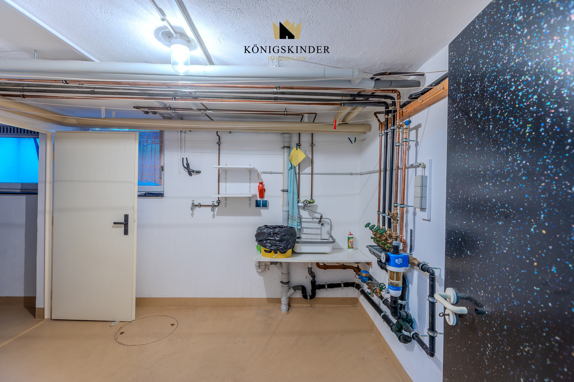 Der große Keller bietet vielfältige Nutzungsoptionen: Als Büro, Hobbyraum, Werkstatt oder Abstellraum steht dort ausreichend Platz zur Verfügung und schafft wertvollen Stauraum.