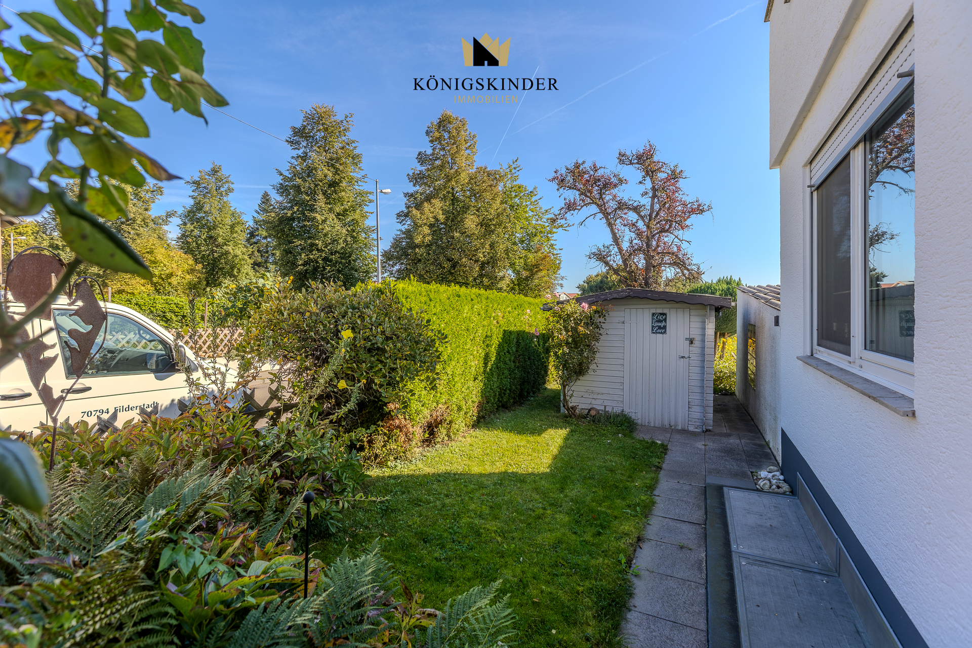 Der Außenbereich rundet das Angebot ab: Ein gepflegter Gartenbereich bietet Gestaltungsspielraum für individuelle Ideen.