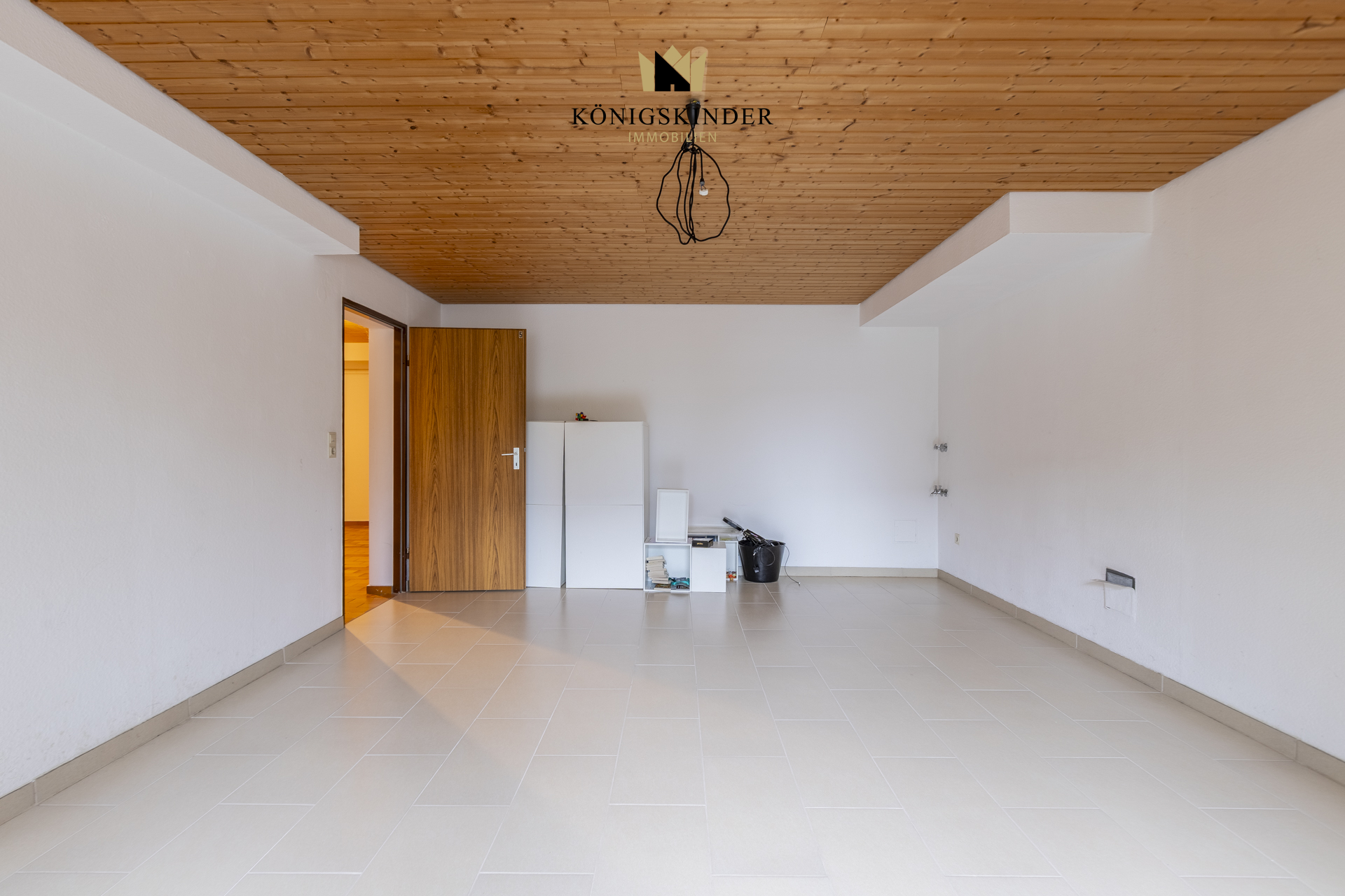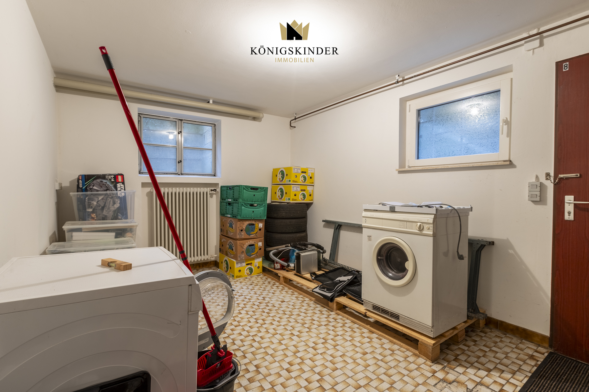 Im Untergeschoss stehen neben Abstell- und Technikräumen ein weiteres helles, gefliestes Zimmer zur Verfügung – ideal als zusätzliches Schlafzimmer, Homeoffice oder Hobbyraum.