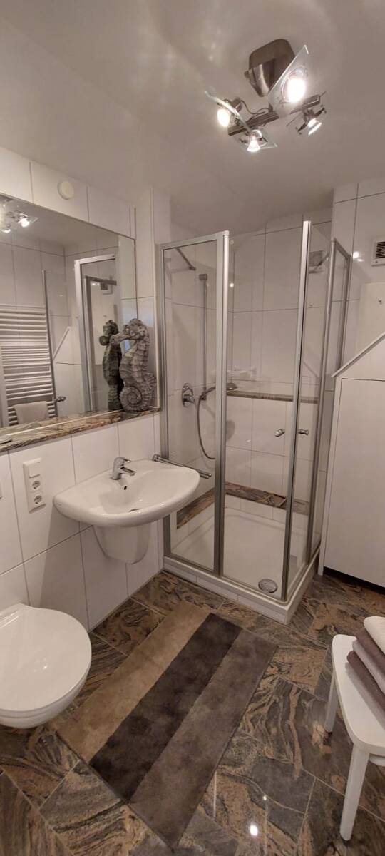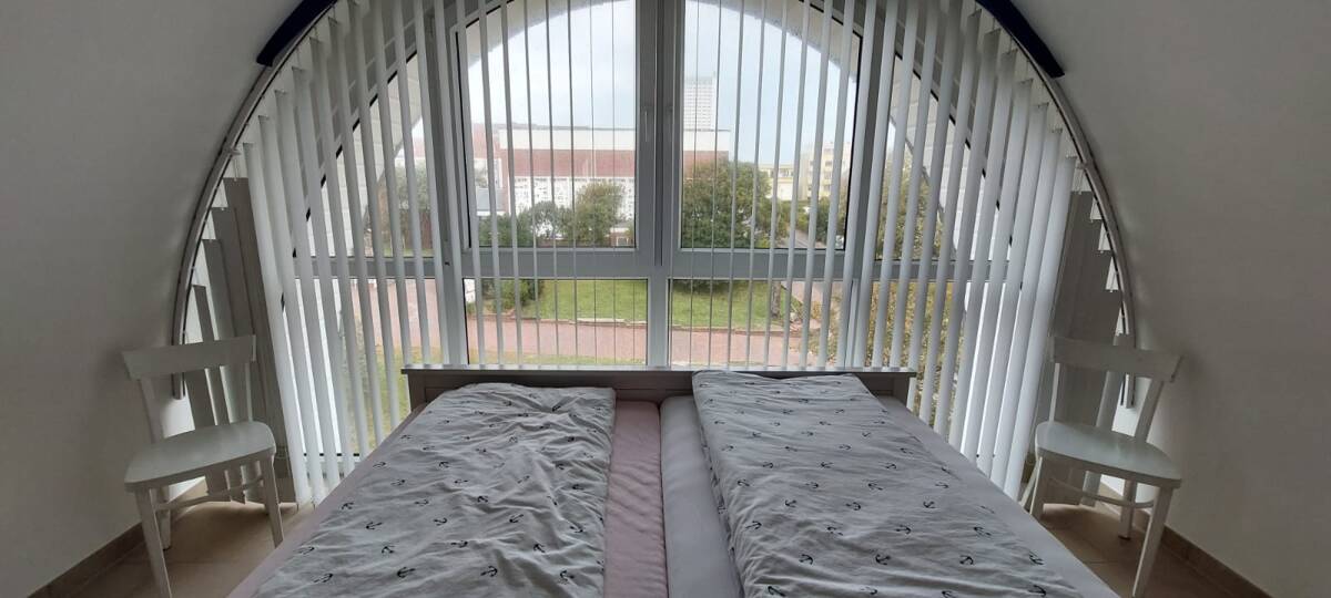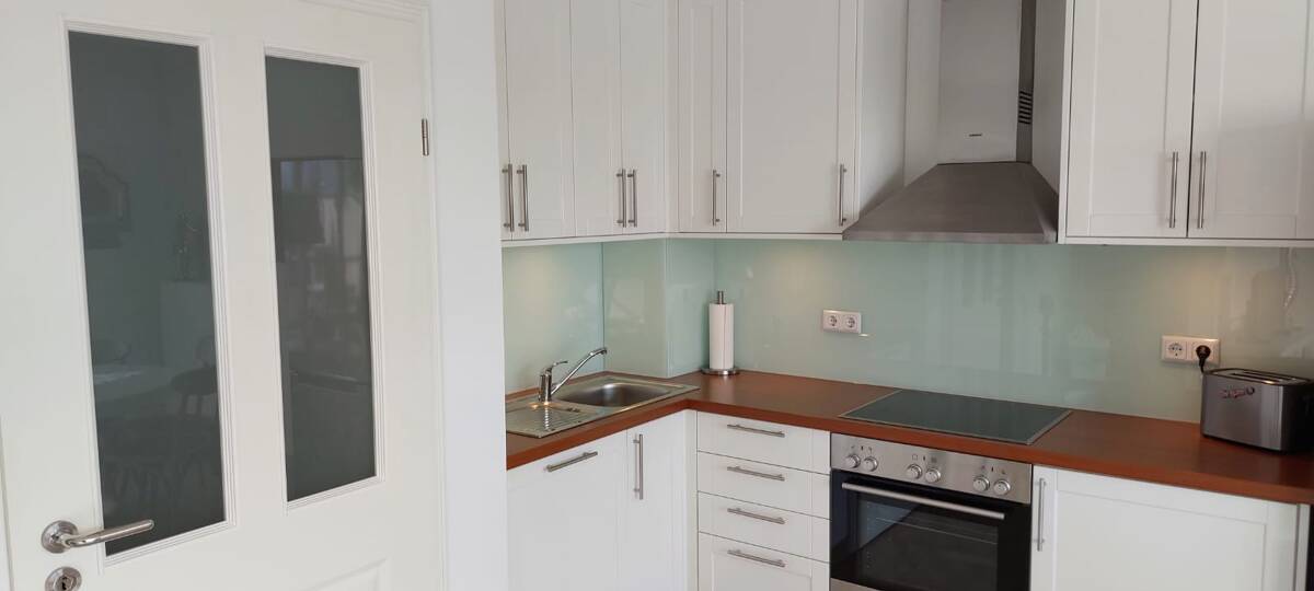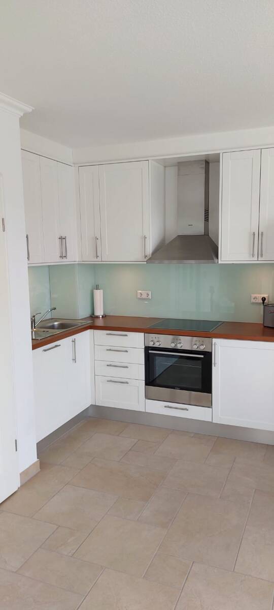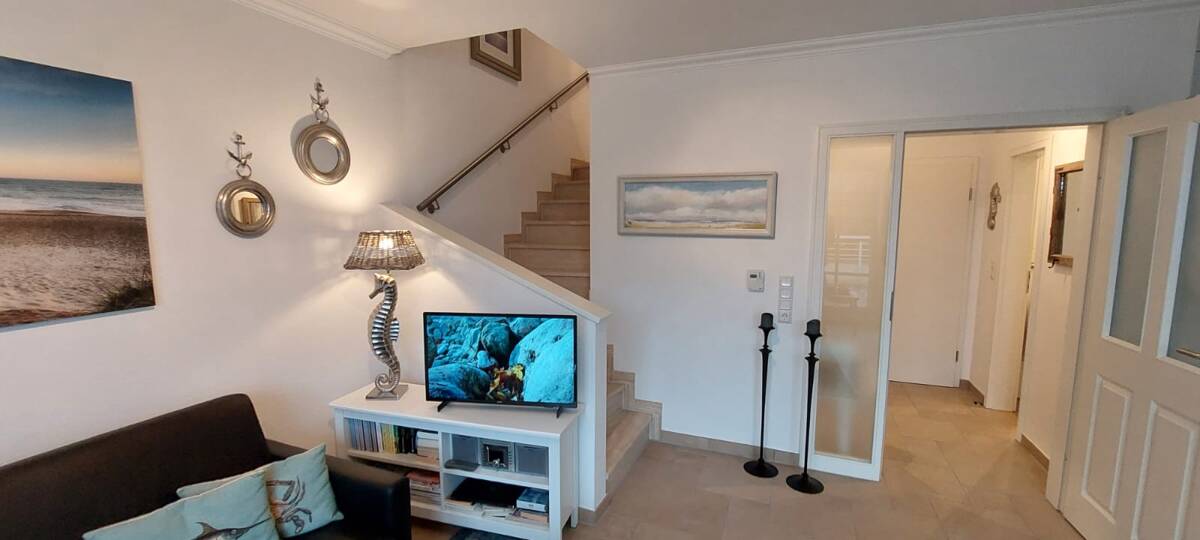Die schöne Wohnung liegt in der Elisabeth-Anna-Straße und man erreicht in einer Minute die Einkaufstraße, Supermärkte und den Strand.